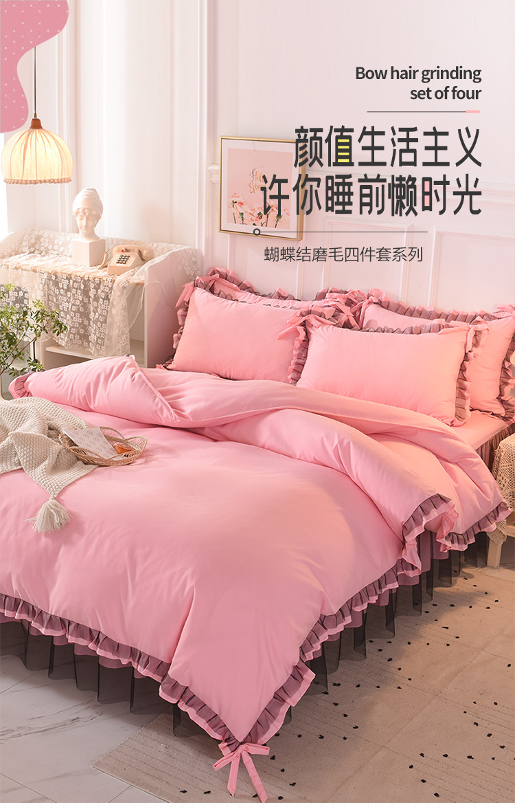 商品名称:芭比蔓 2024新款韩版蕾丝磨毛床裙四件套 梦境-香妃玉