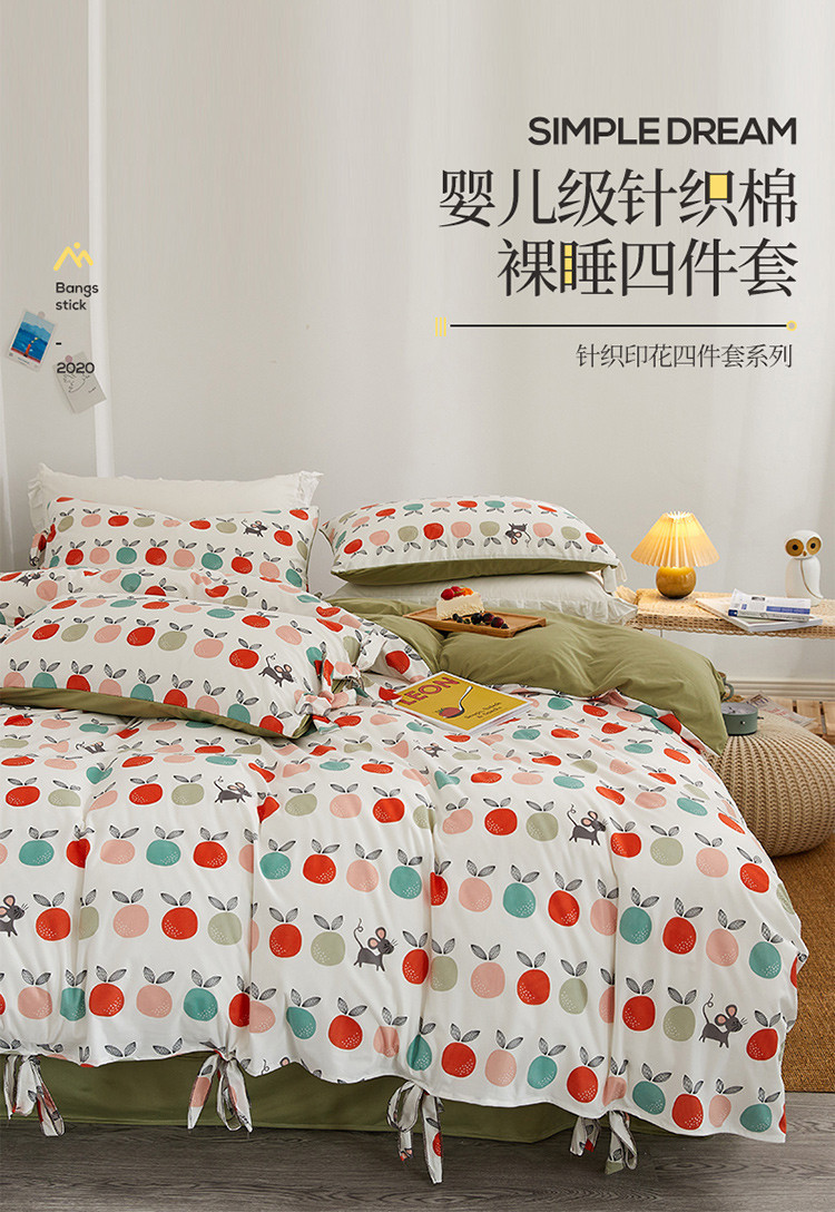 眠屿 2020新款针织棉四件套 萌趣-橘粉