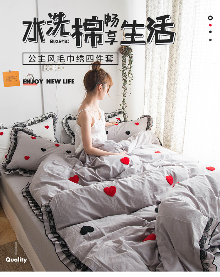 淑女公社 2020新款公主风毛巾绣四件套 爱心-灰色