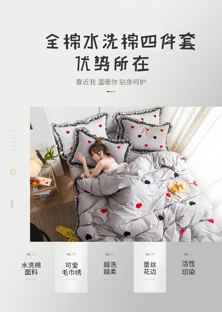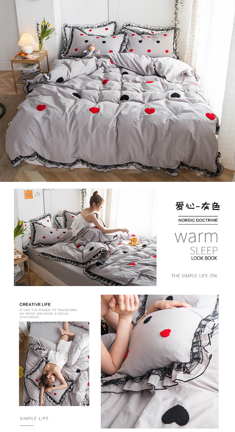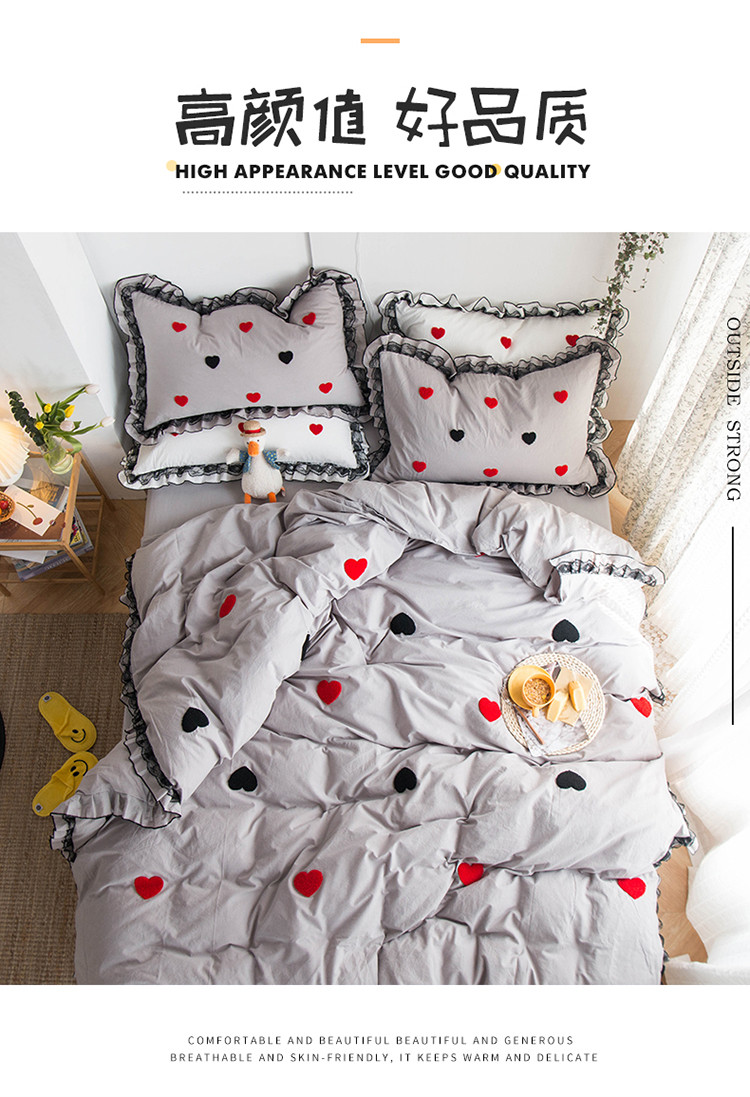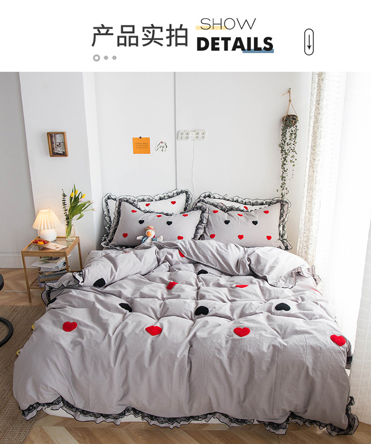 商品名称:淑女公社 2020新款公主风毛巾绣四件套 爱心-灰色