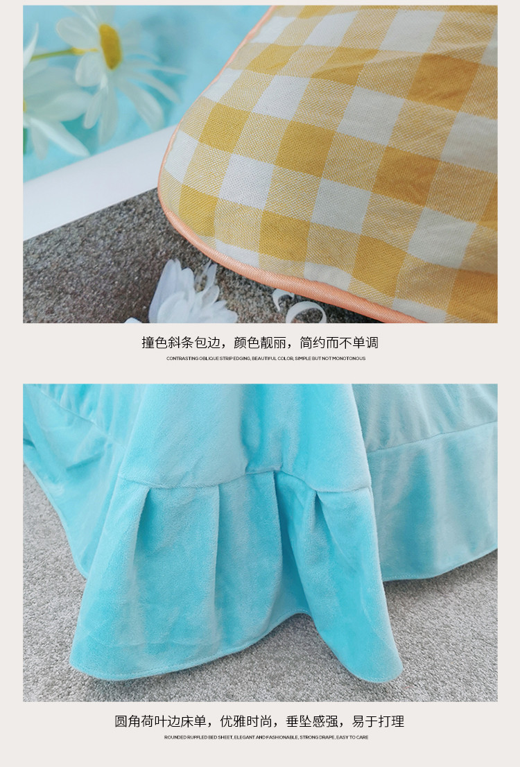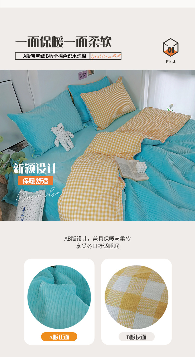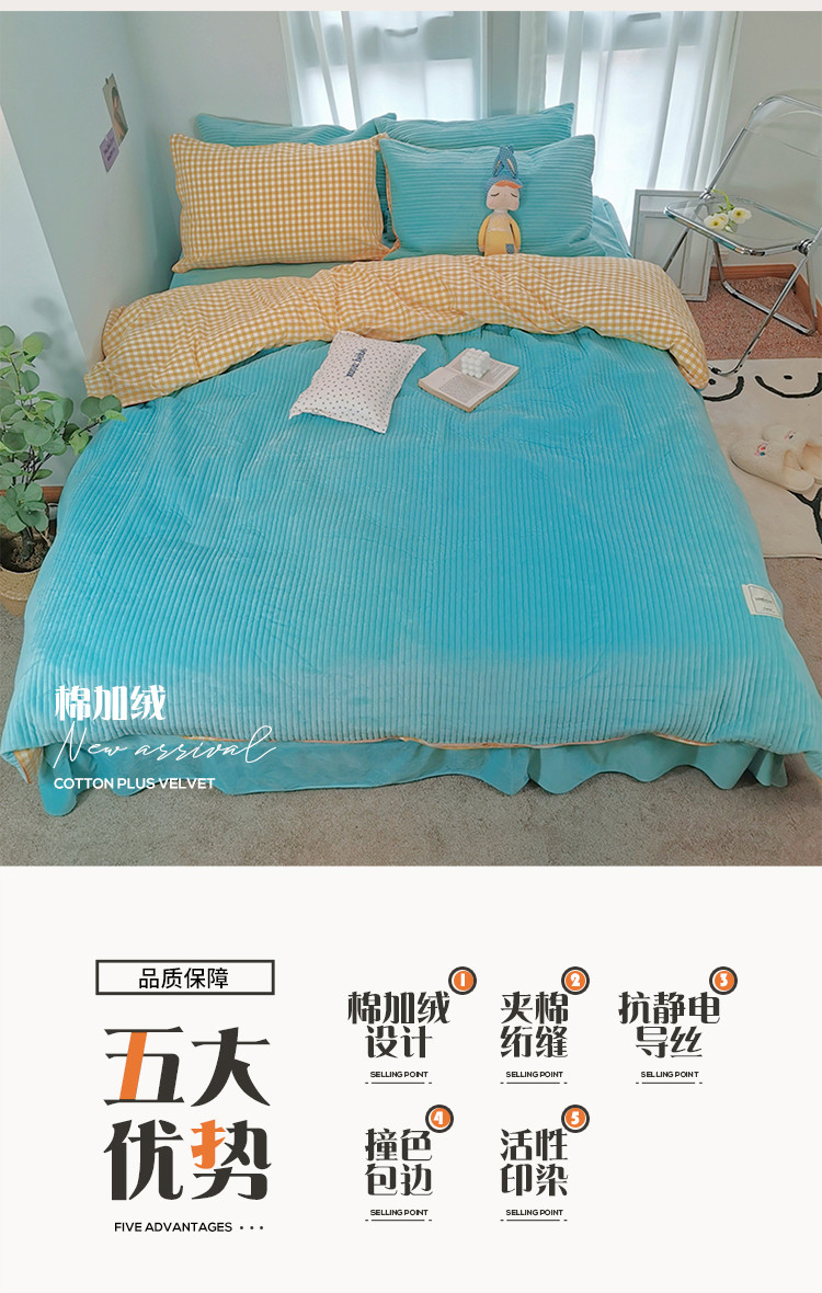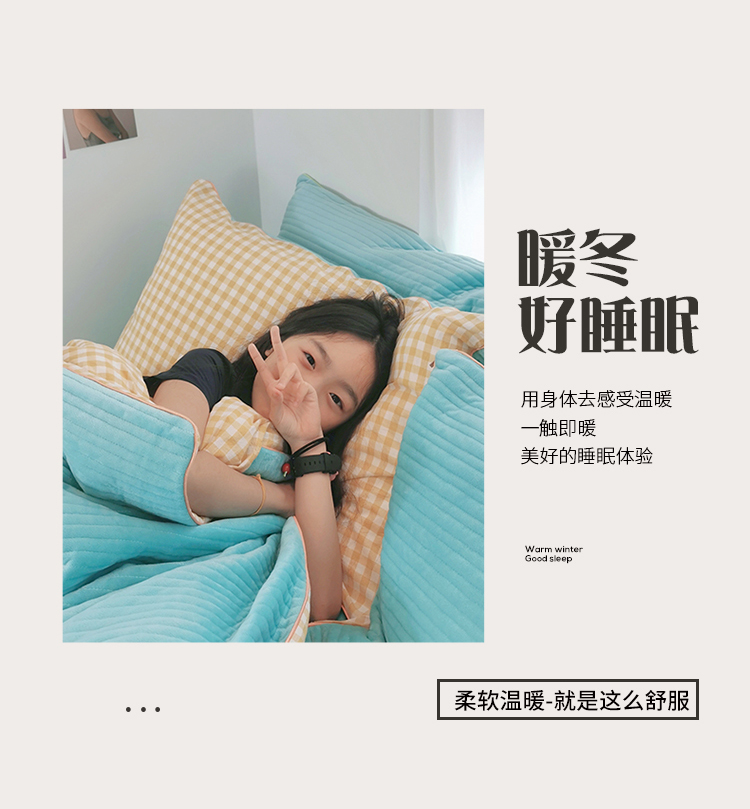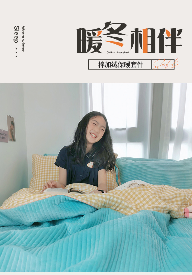 淑女公社 2020新款棉加绒晚安宝贝四件套 黄白格加蓝色绒
