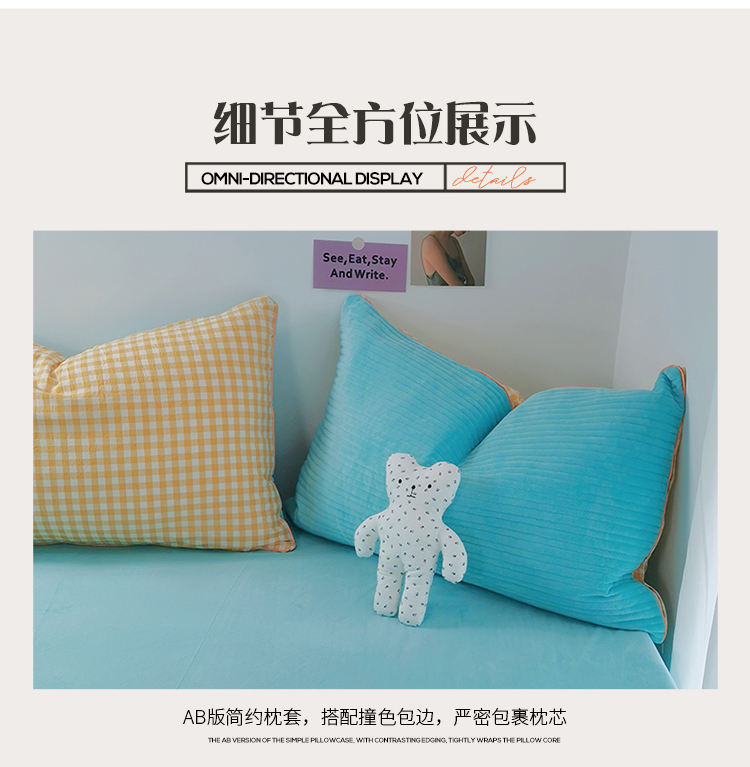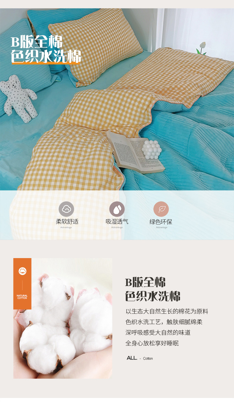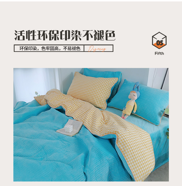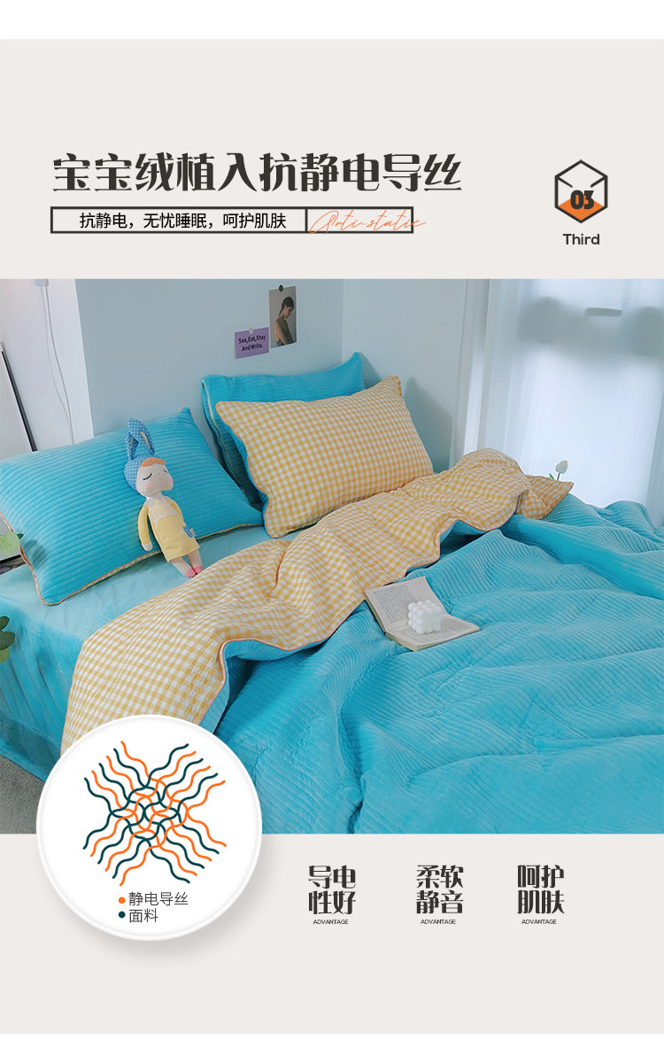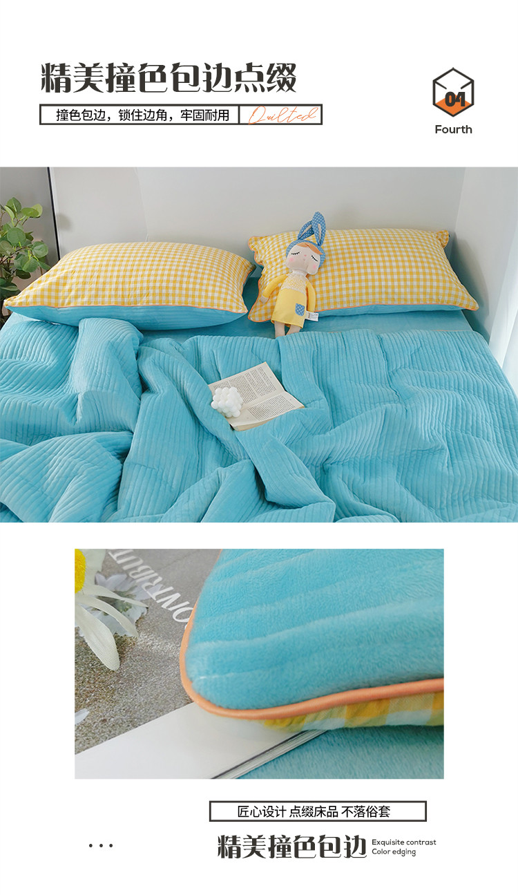 商品名称:淑女公社 2020新款棉加绒晚安宝贝四件套 黄白格加蓝色绒