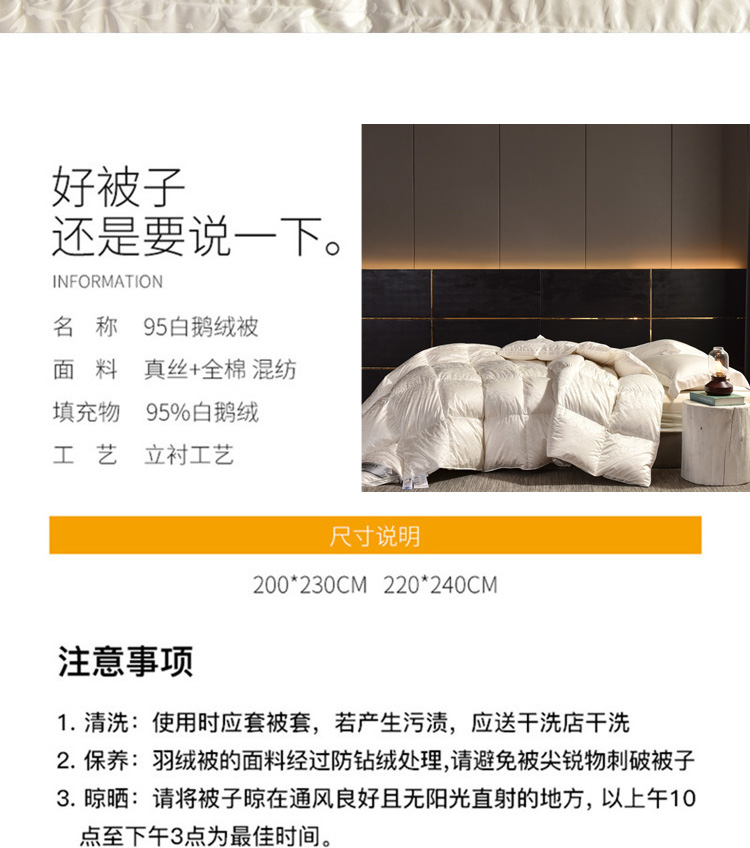 220X240cm/填充重量95白鹅绒1450克/5.5斤