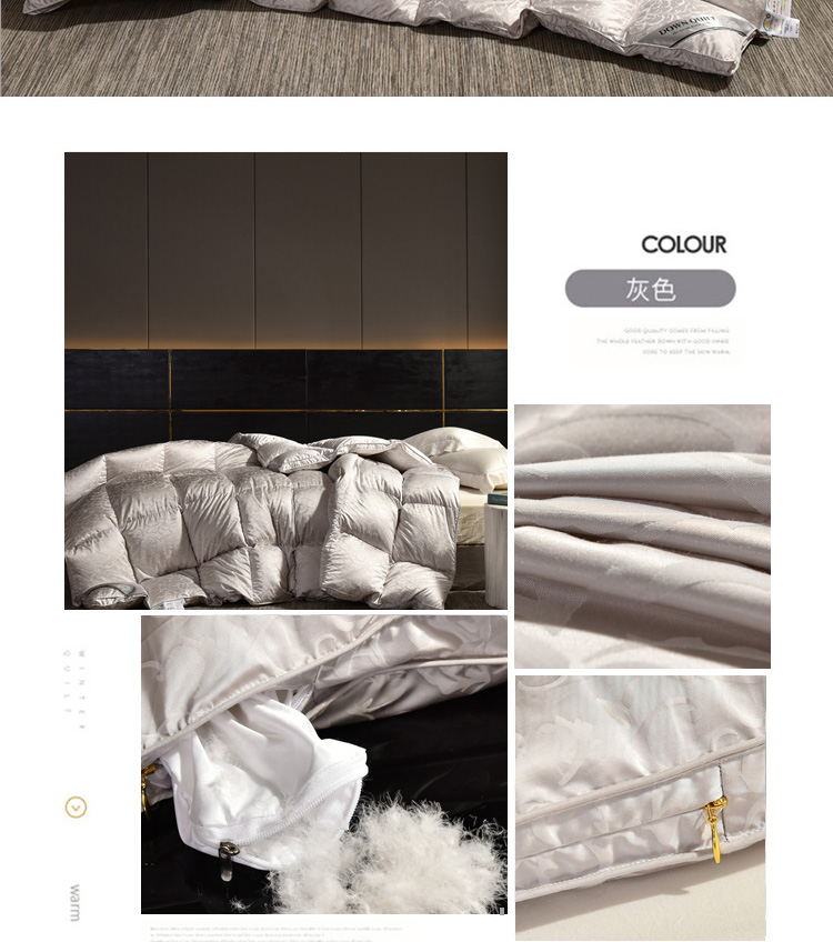 总绒研羽绒 2025魅力人生真丝大提花鹅绒被羽绒被冬被被子,灰色,藕粉,香槟色