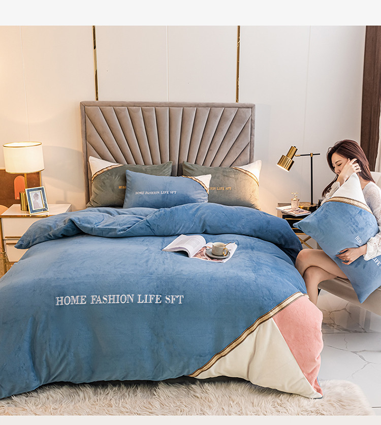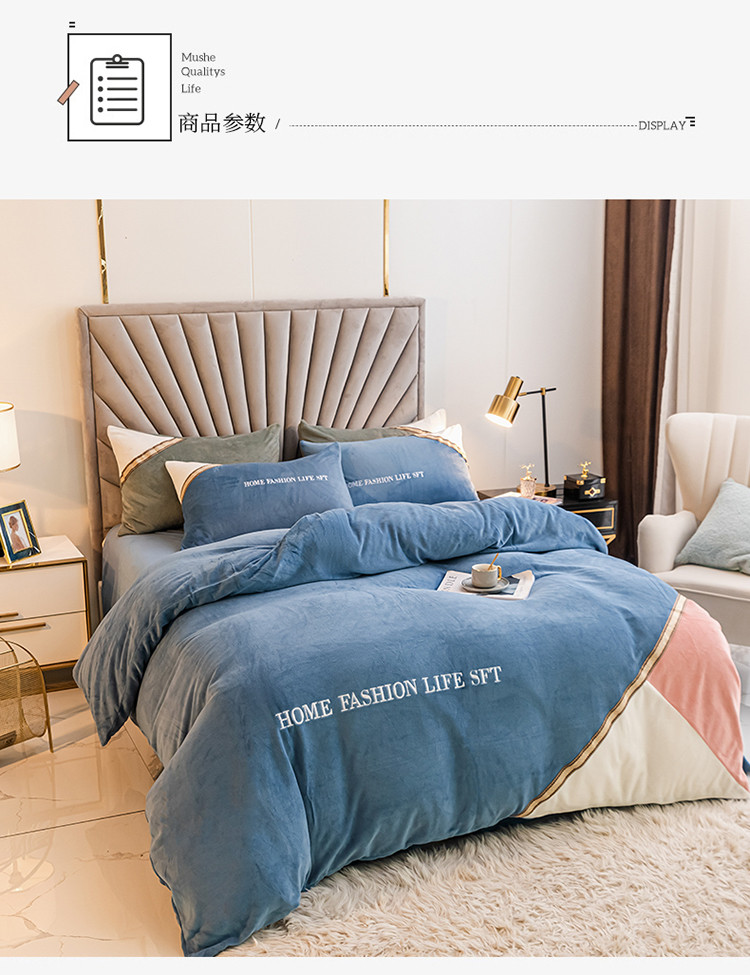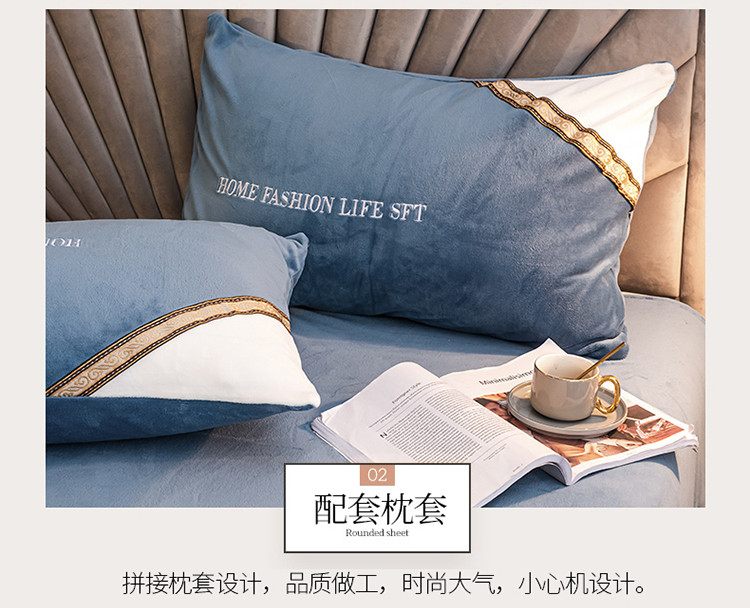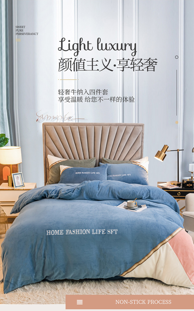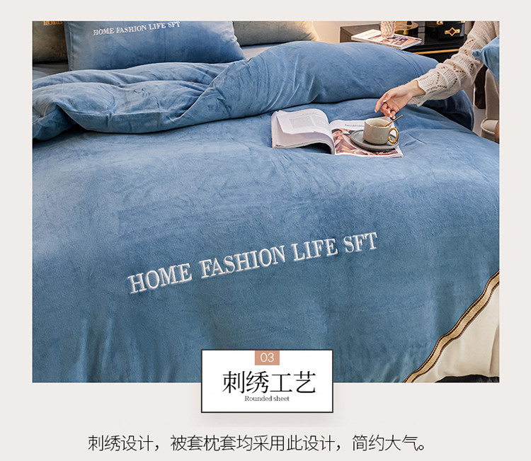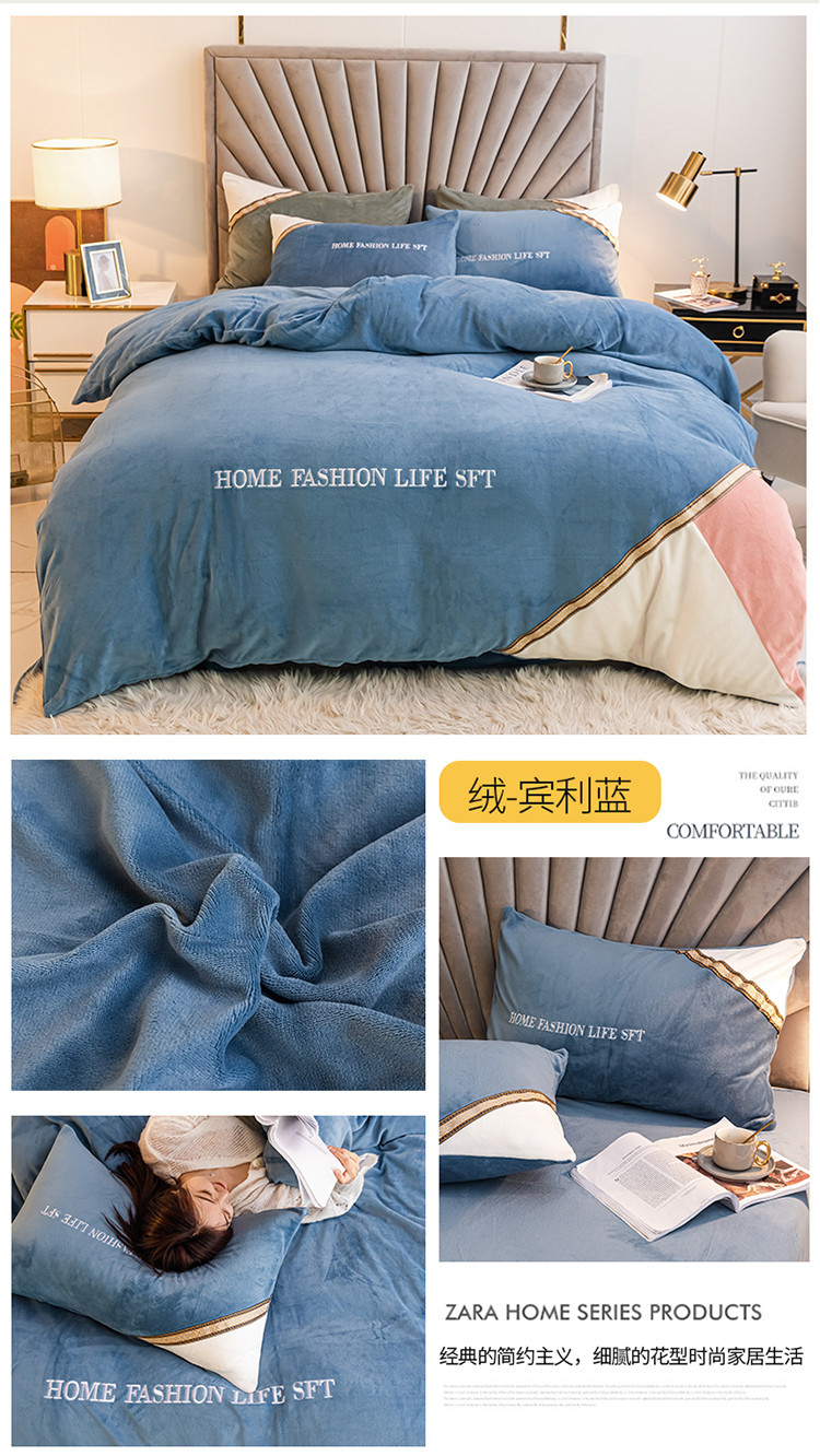 索飞特 2022新款牛奶绒拼角工艺款四件套 绒-宾利蓝