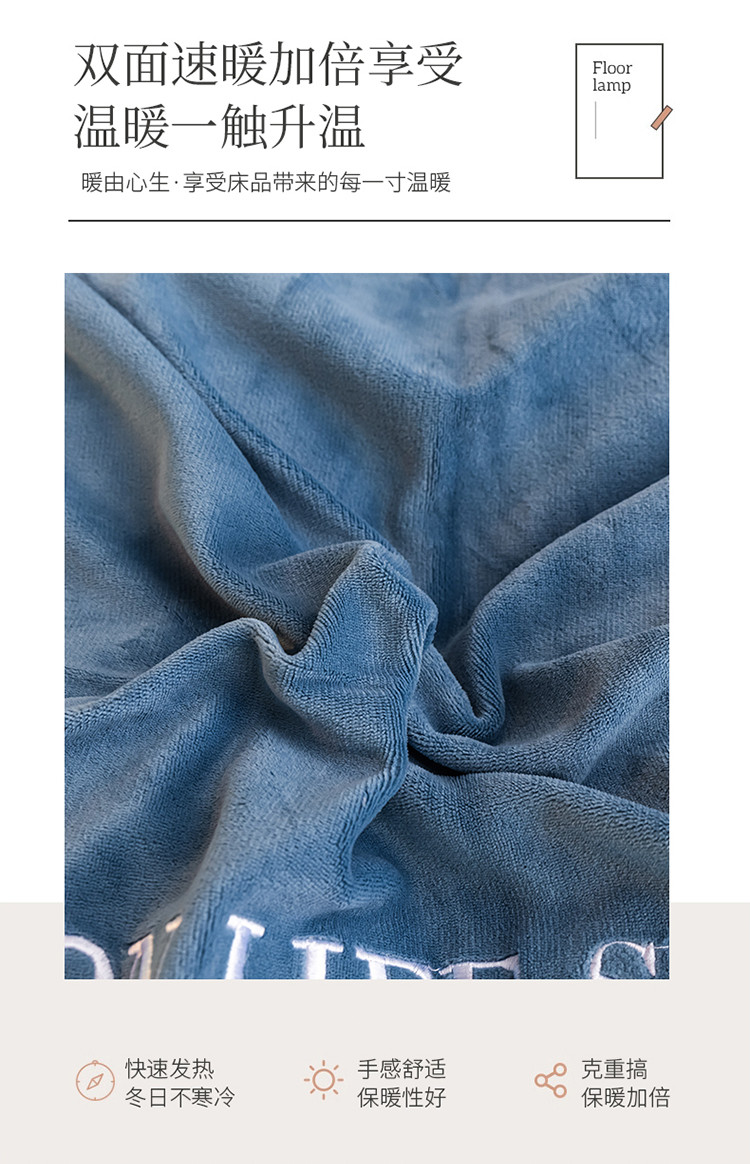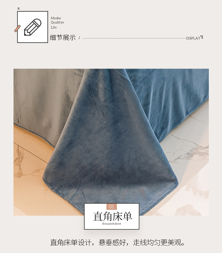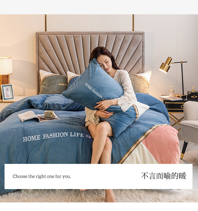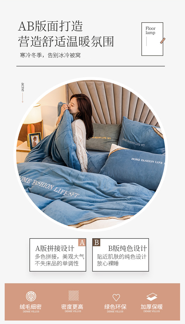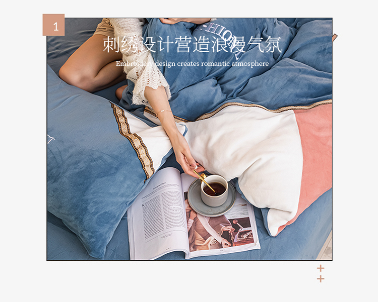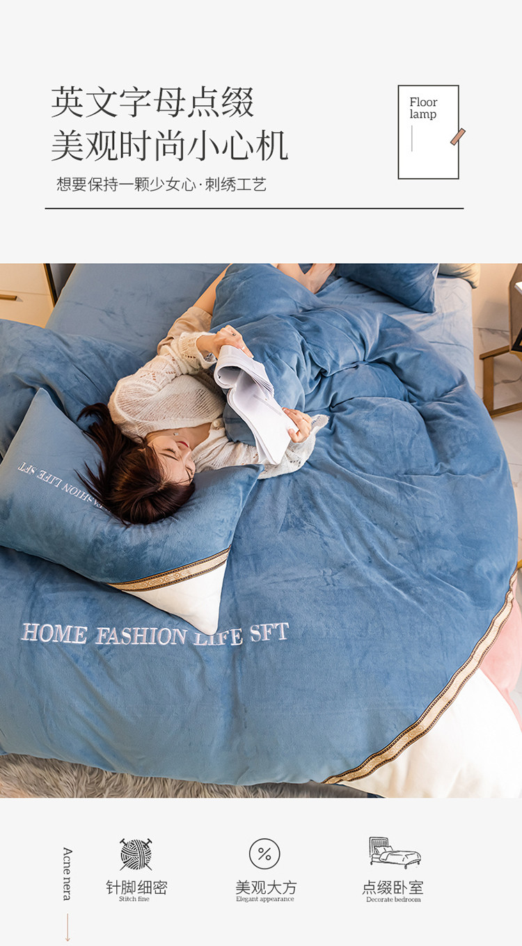 索飞特 2022新款牛奶绒拼角工艺款四件套 绒-宾利蓝