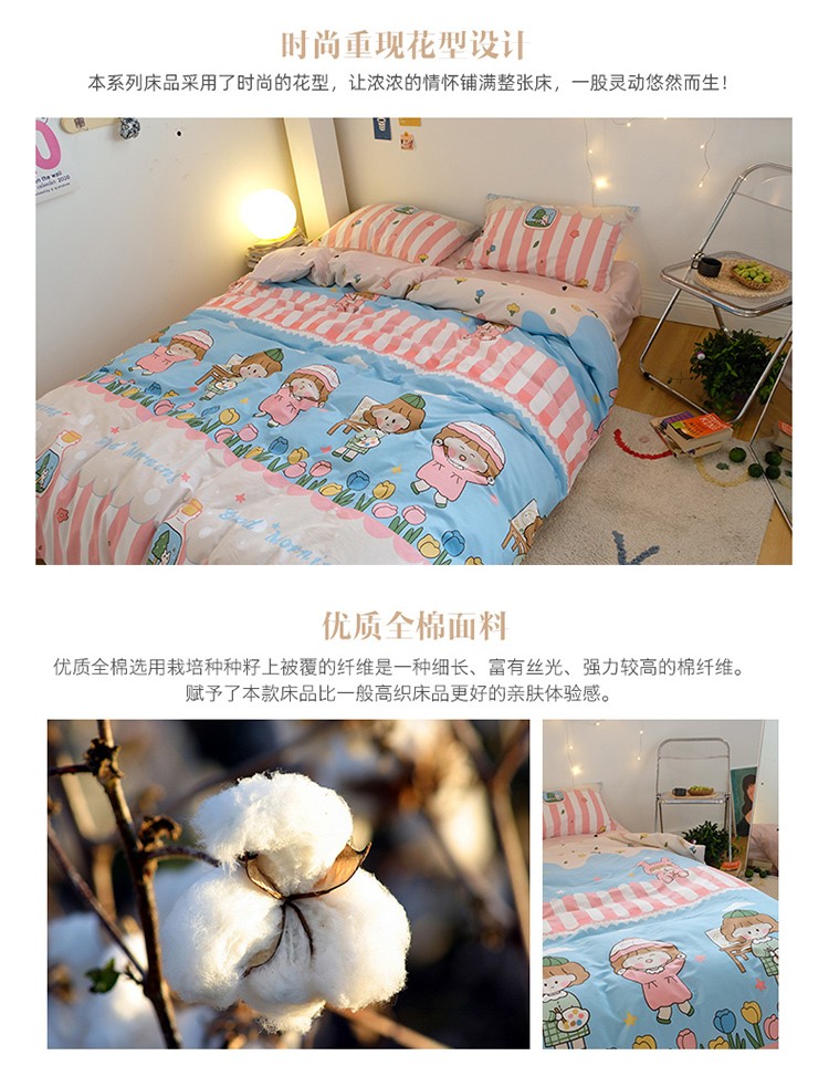 (总)窝米 2020春夏新品全棉13372四件套小波西风系列,草莓酱,木槿,小花花,小尤里