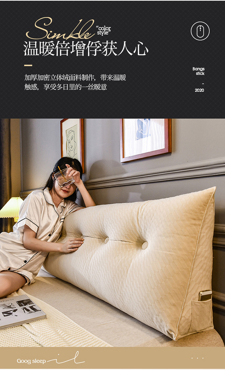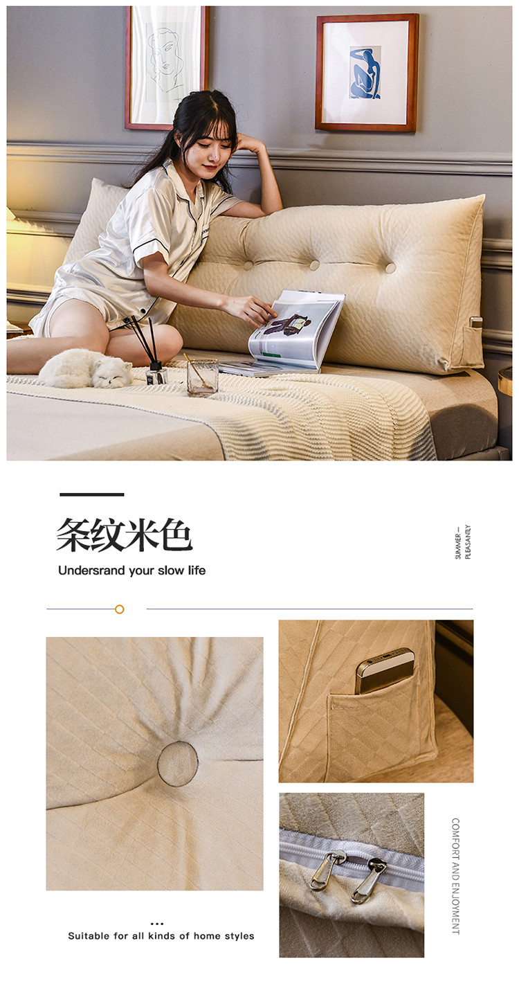 当前位置: 91家纺网 > 商品网购 > 居家日用 > 靠垫/抱枕 > 一兰2020新款韩国绒立体三角靠垫床头大靠垫床上靠背条纹米色
