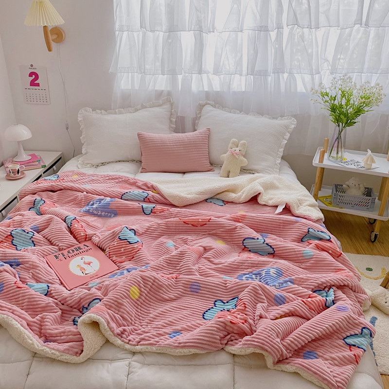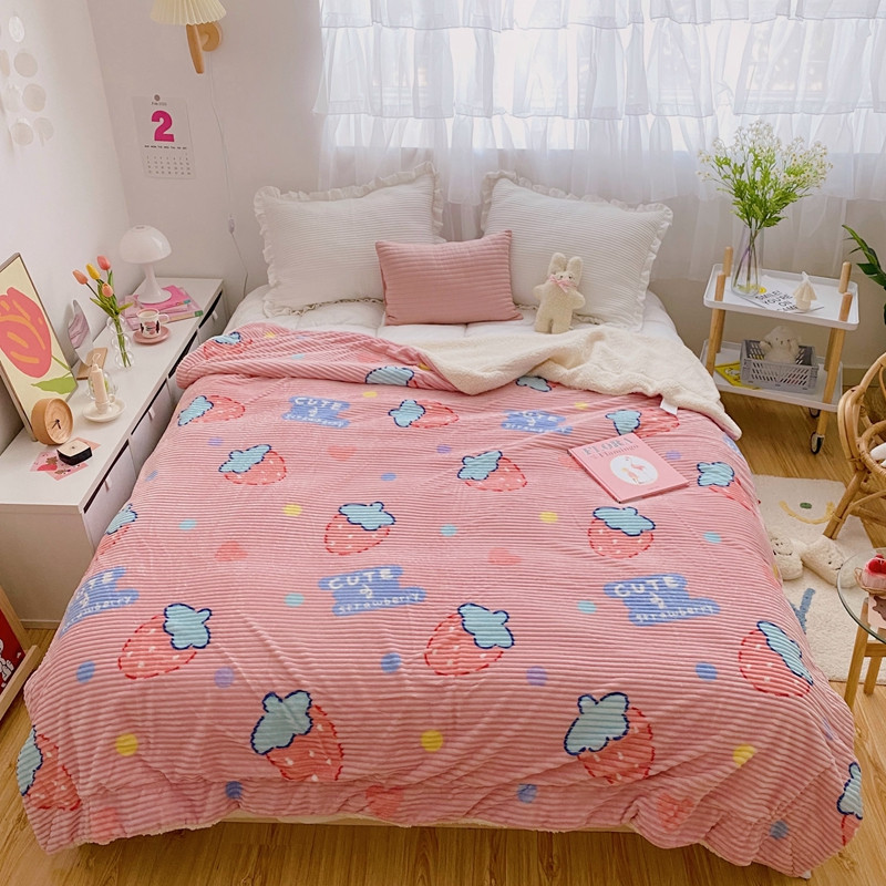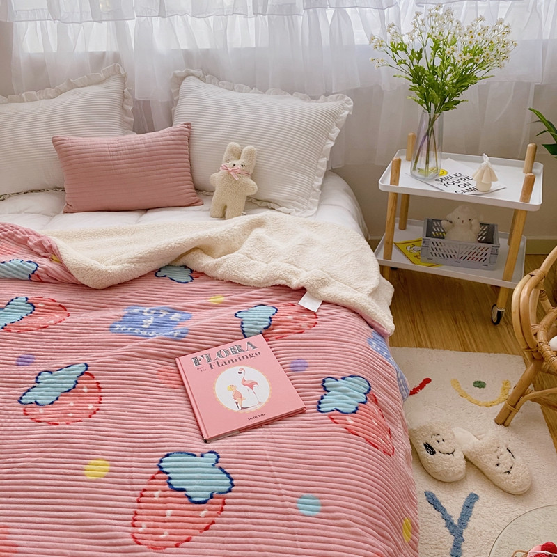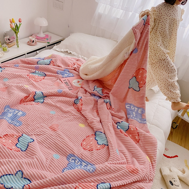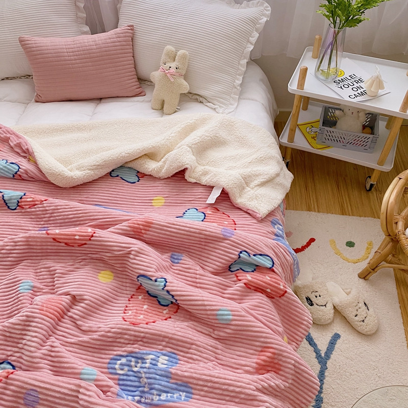 商品名称:顾里 新款ins网红少女心温暖牌魔法牛奶绒毛毯 甜心草莓