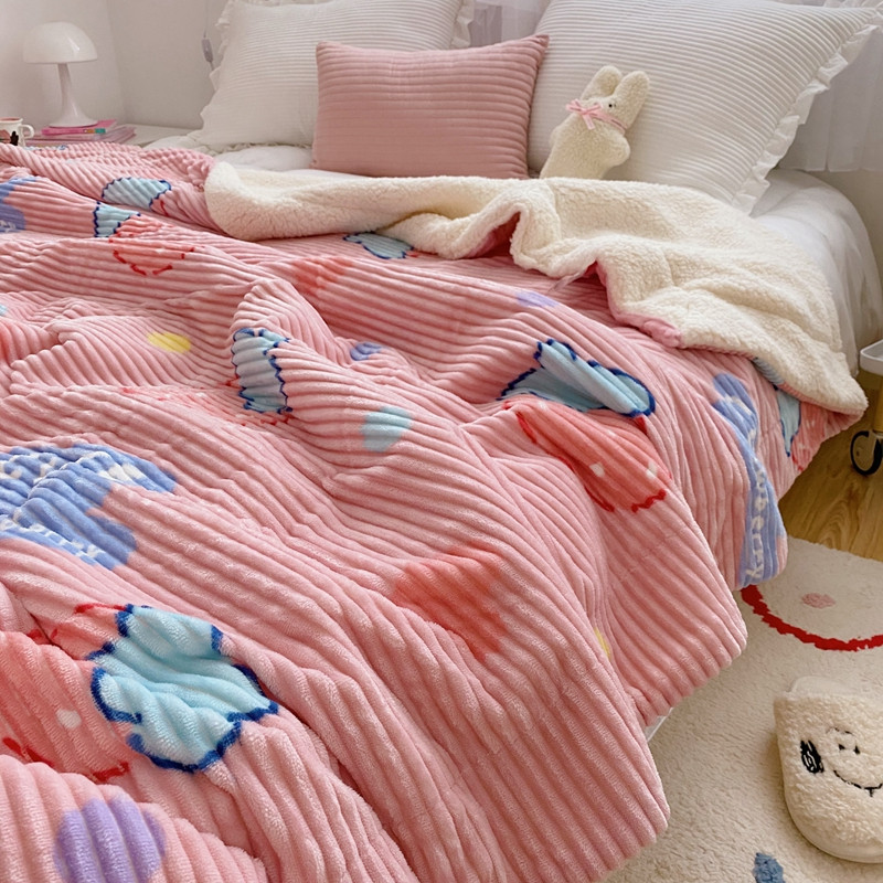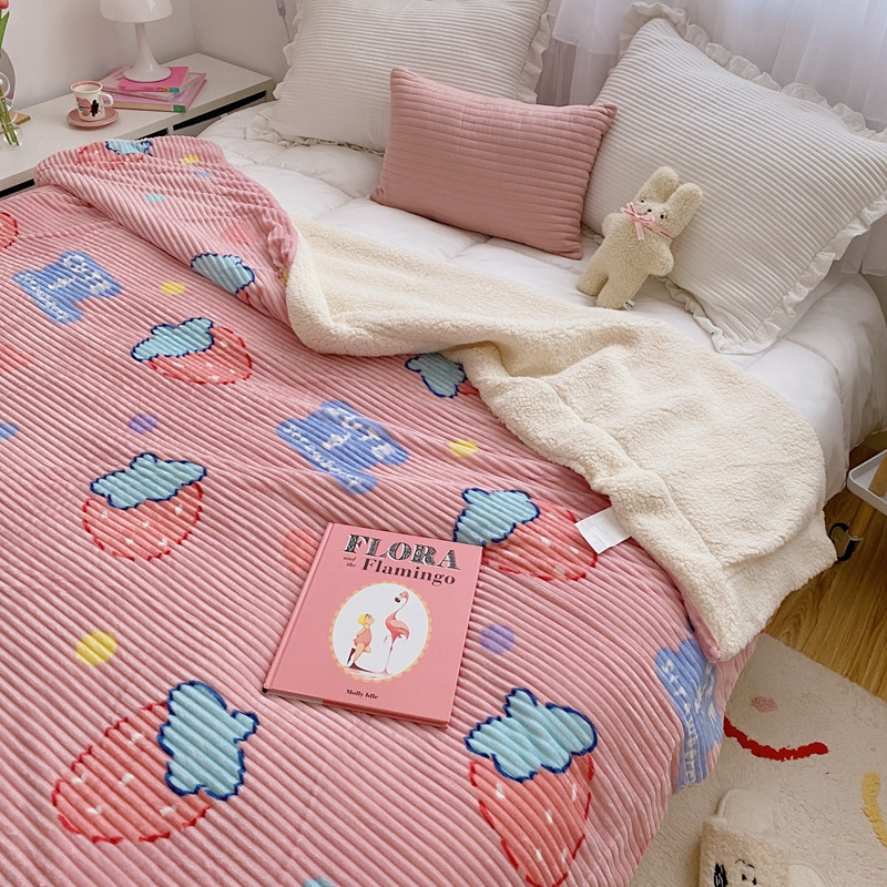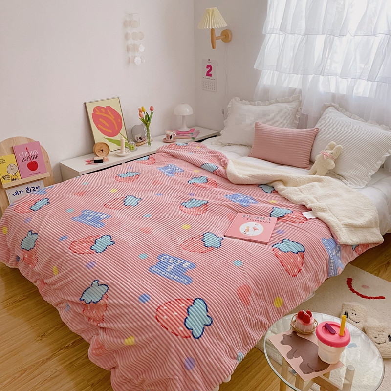 顾里 新款ins网红少女心温暖牌魔法牛奶绒毛毯 甜心草莓