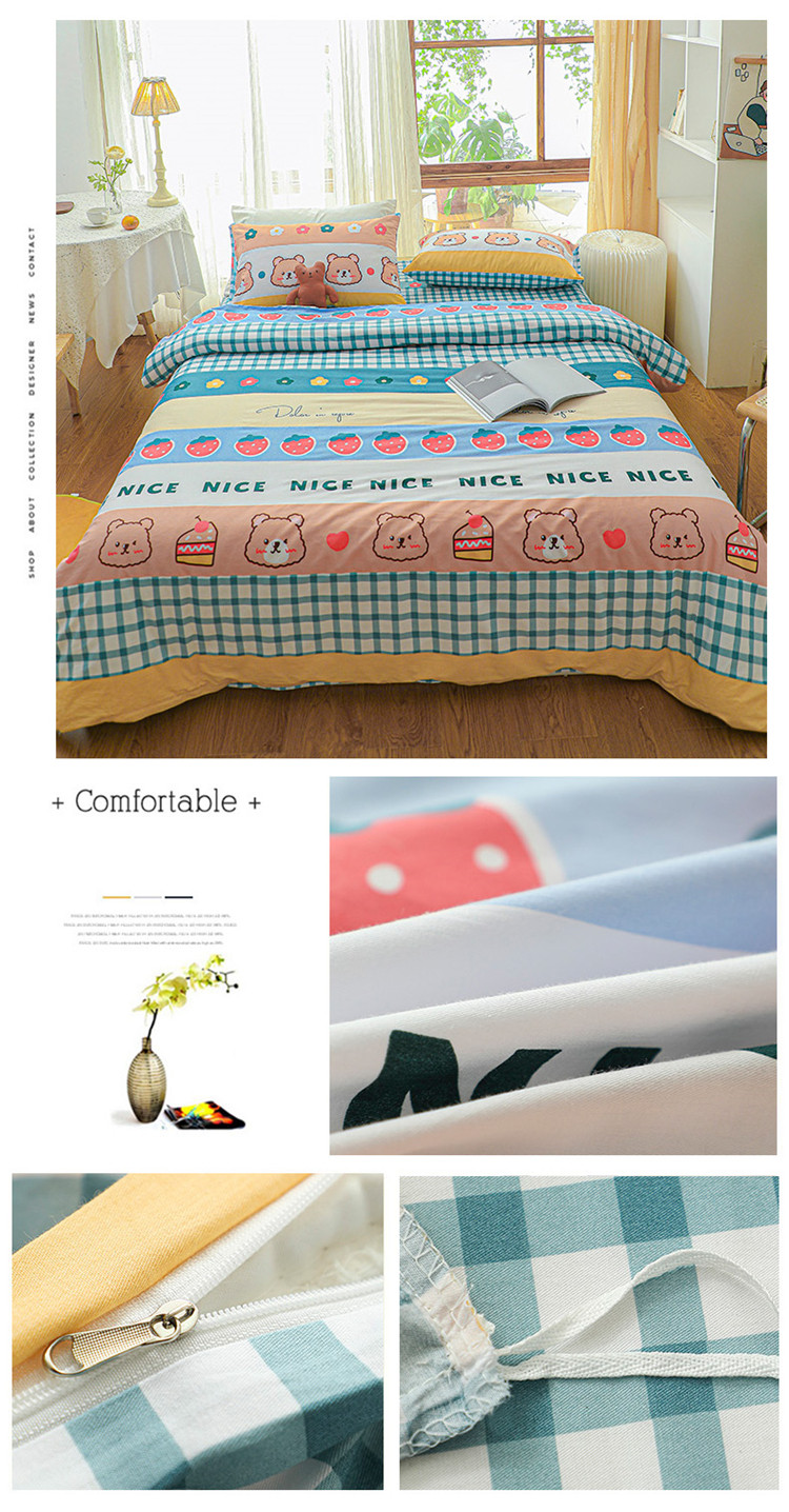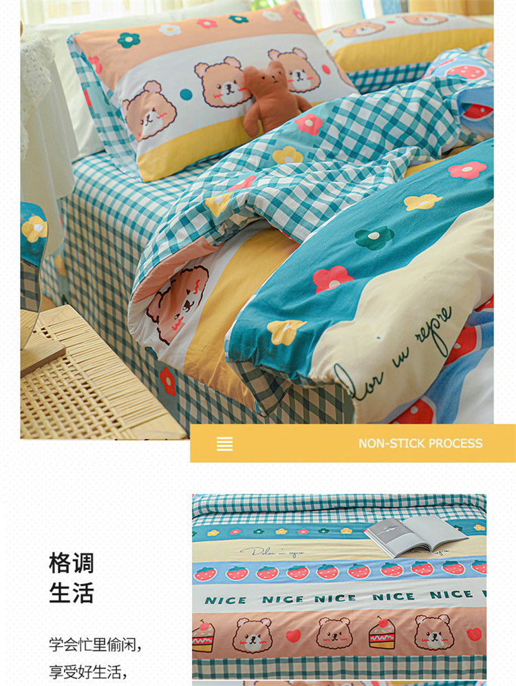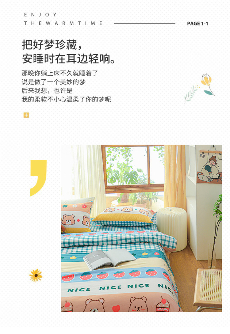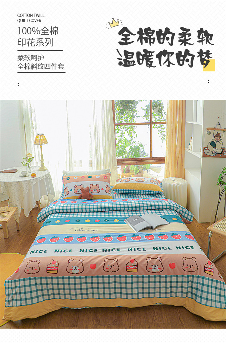 (总)感遇家纺 2022新款全棉印花四件套,格子草莓,花晓,滑板小熊,萌宠,时光,兔宝宝,熊先生