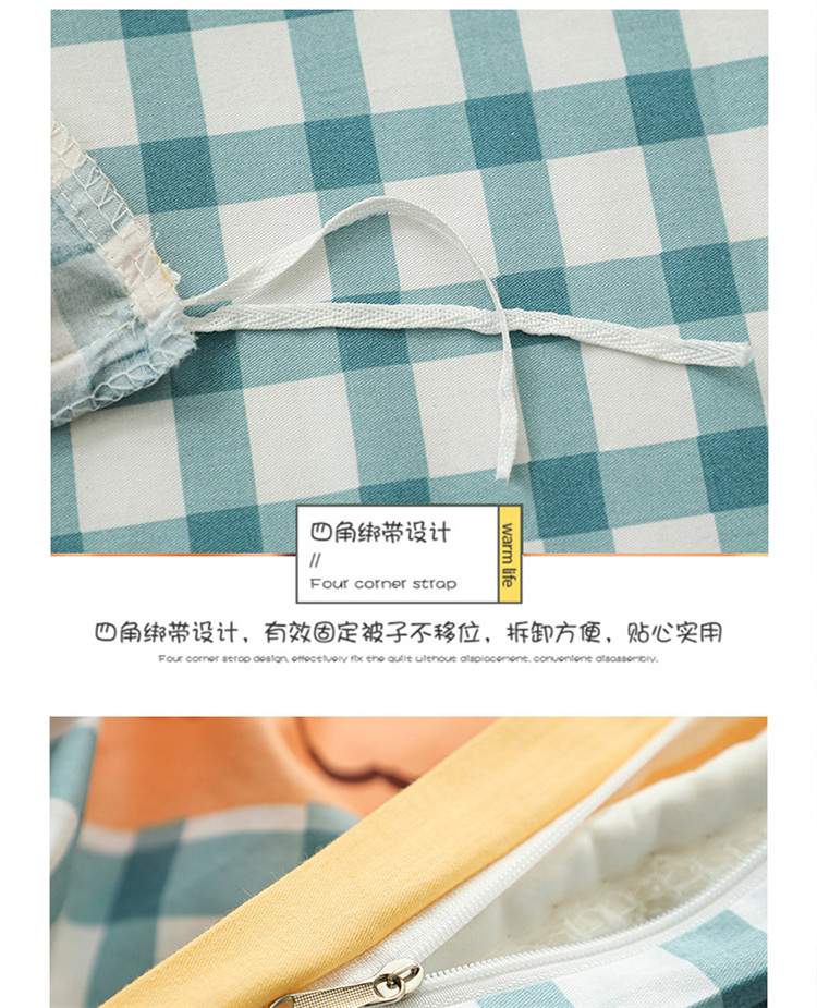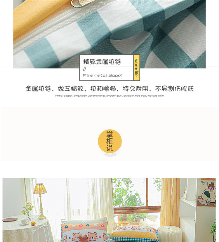 (总)感遇家纺 2022新款全棉印花四件套,格子小花,黑格恐龙,蓝色心情,浅暖