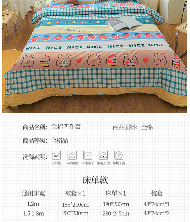 (总)感遇家纺 2025新款小清新甜系全棉四件套,百丽兔,波点小女孩,点点小狗,复古樱桃,格子草莓,格子樱桃,花间牧歌,灰条猫咪,奶绿,宁夏,森林小熊猫,甜心波点
