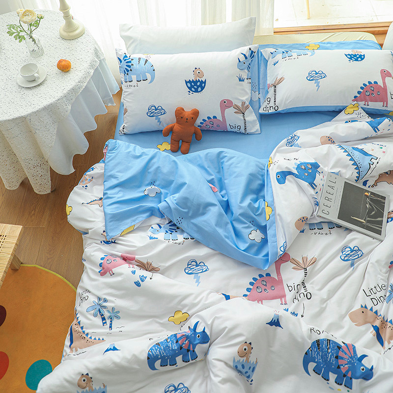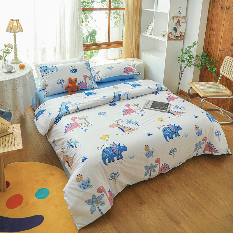 (总)感遇家纺 2022新款全棉印花四件套,格子小花,黑格恐龙,蓝色心情,浅暖