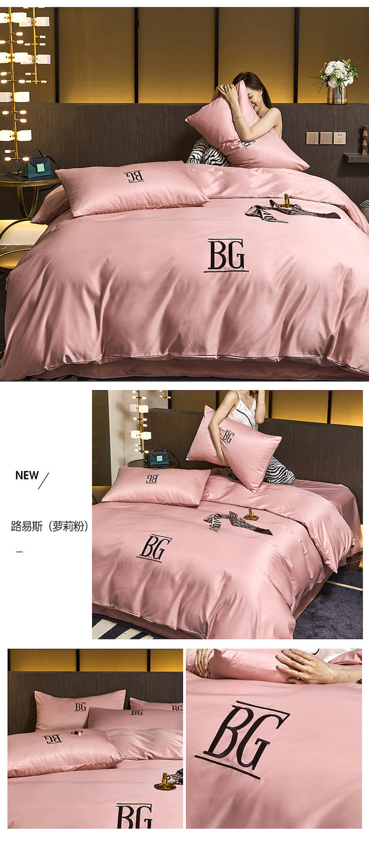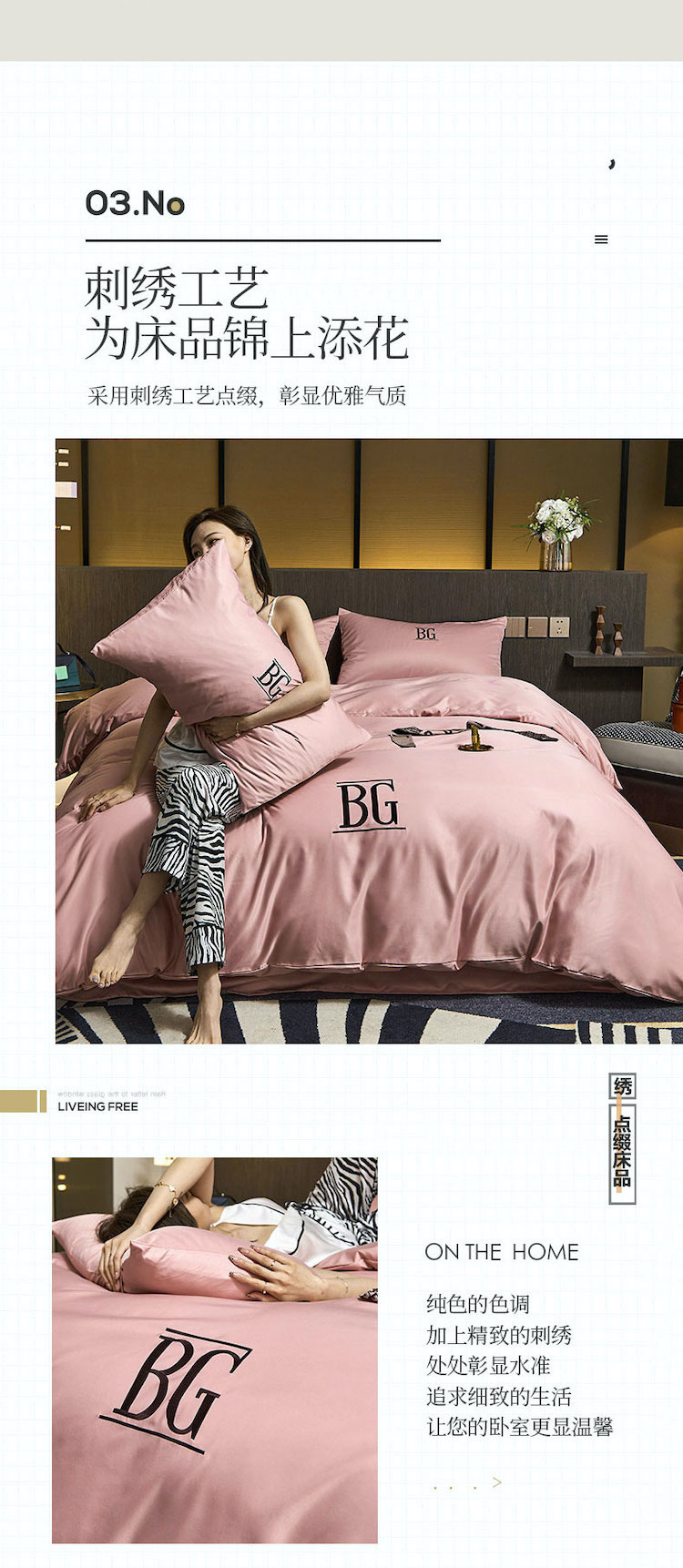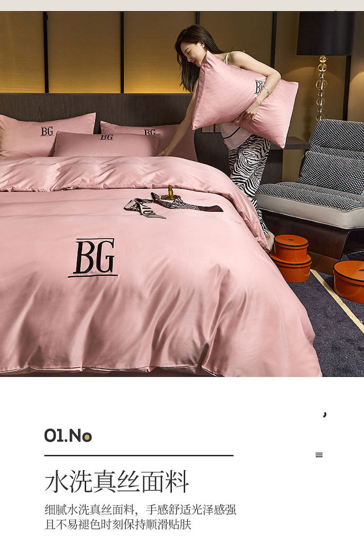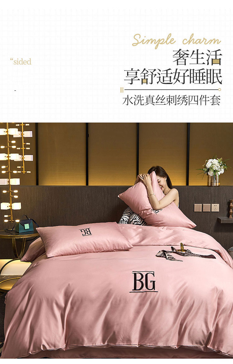 商品名称:凡客 2021春夏新款60支水洗真丝绣花四件套 路易斯-萝莉粉