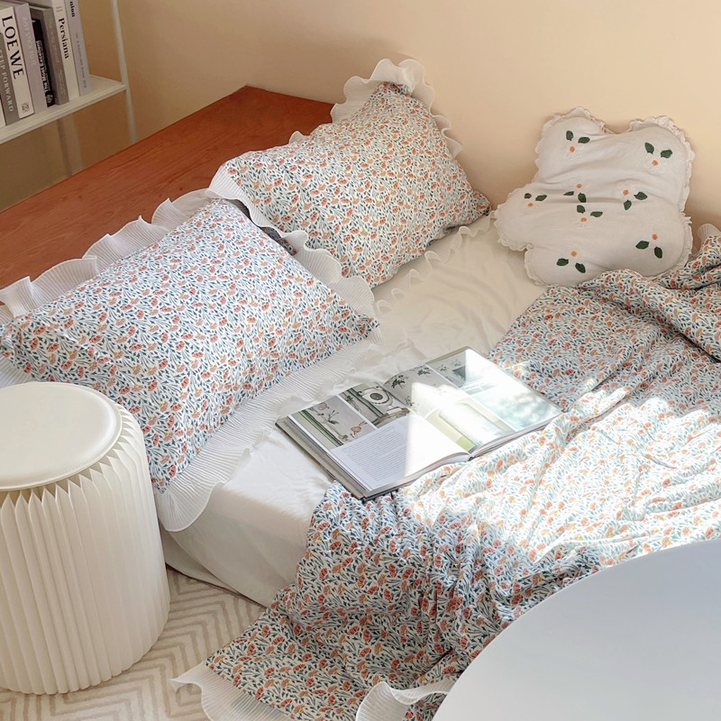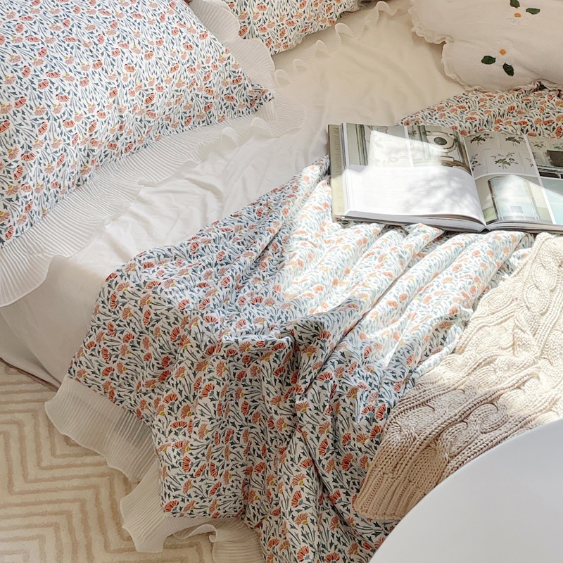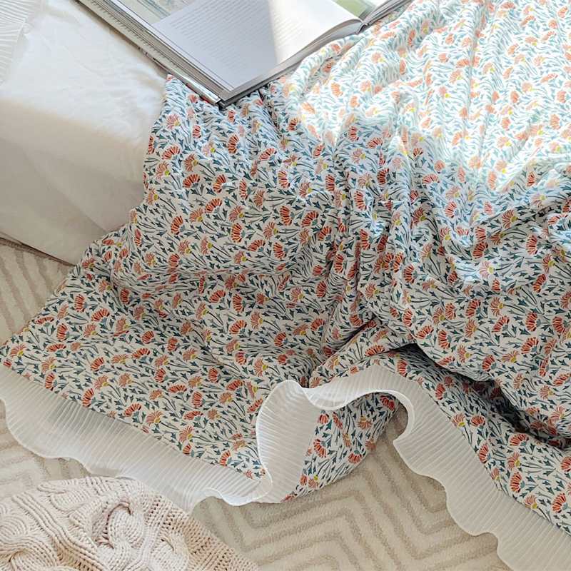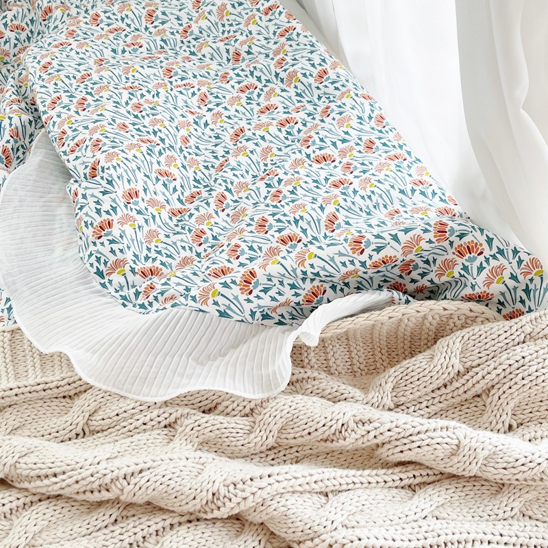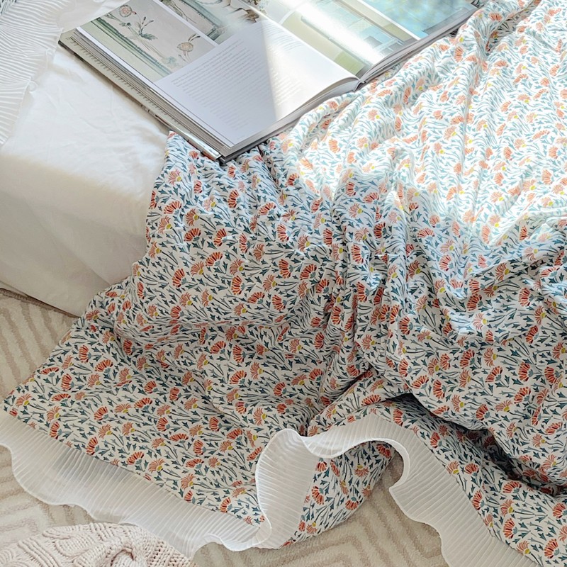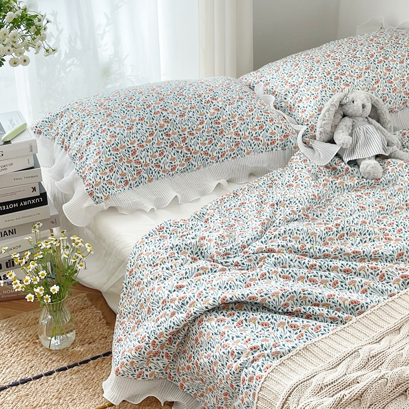 源启 2021韩版荷叶边全棉夏被三件套纯棉空调被木槿-扇子花