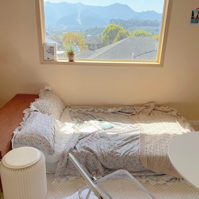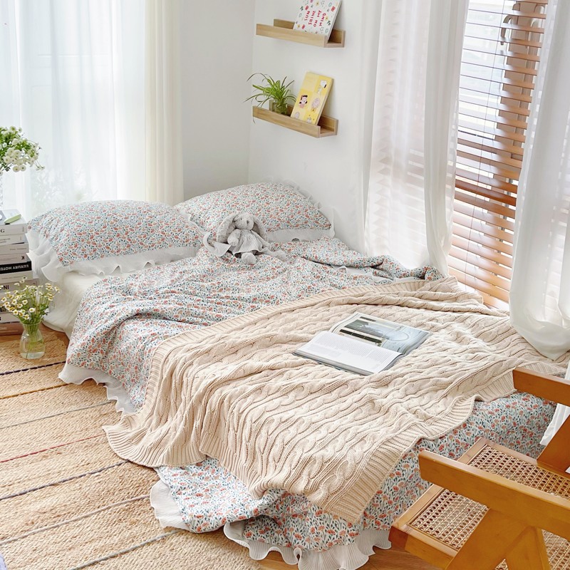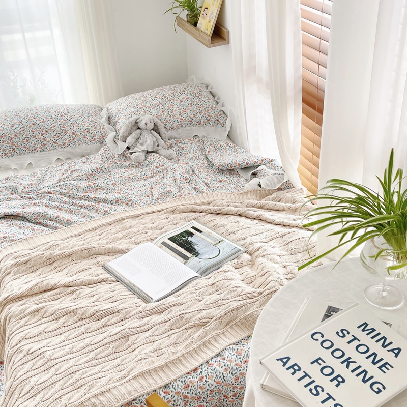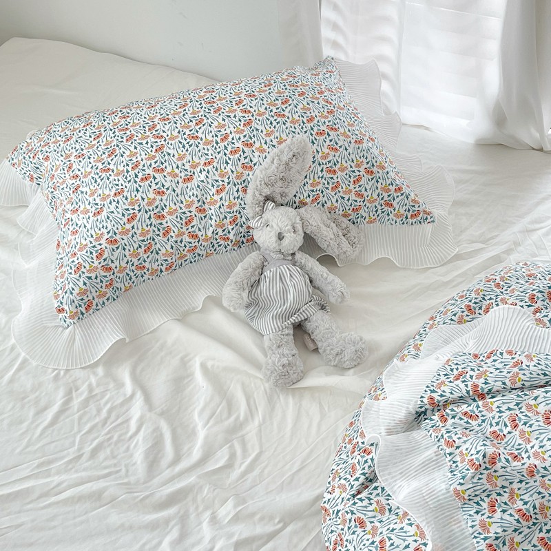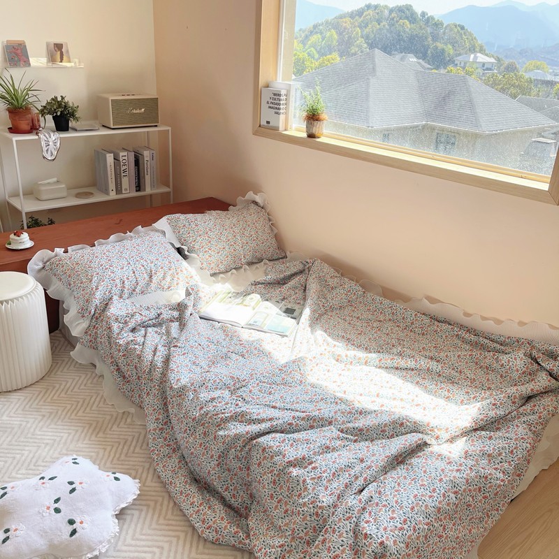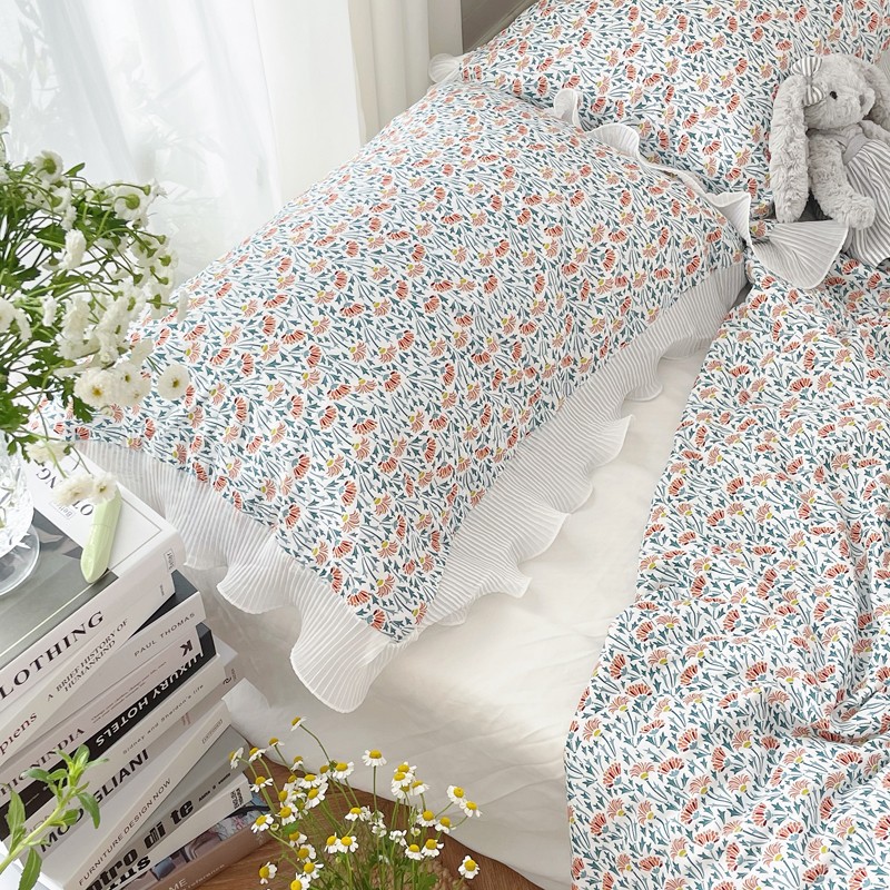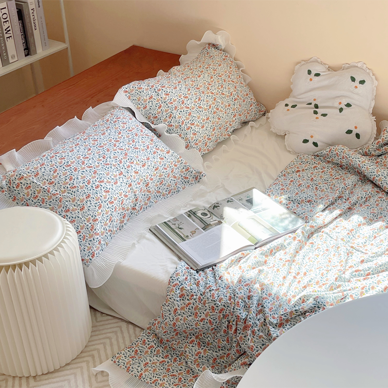 源启 2021韩版荷叶边全棉夏被三件套纯棉空调被木槿-扇子花