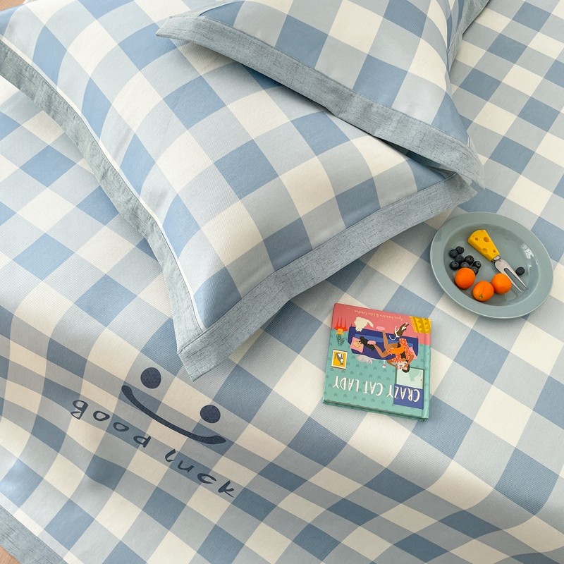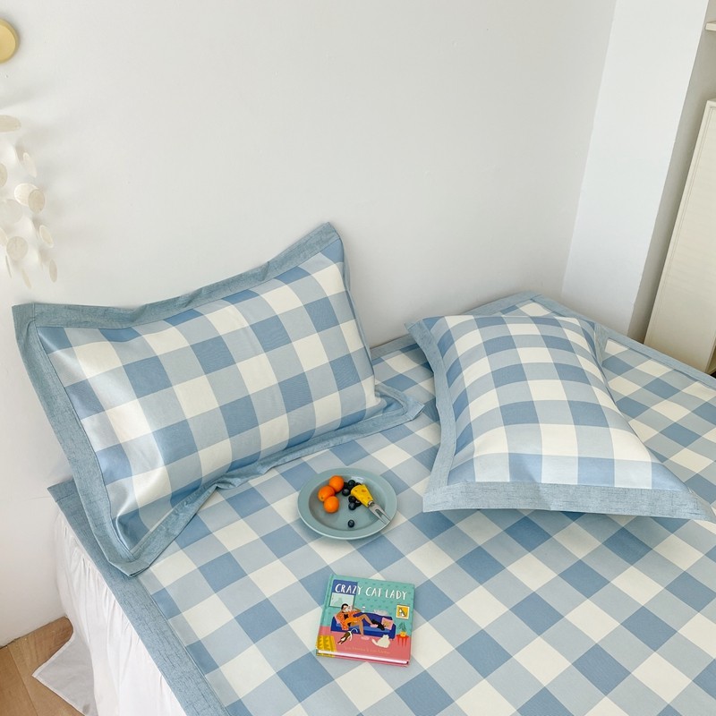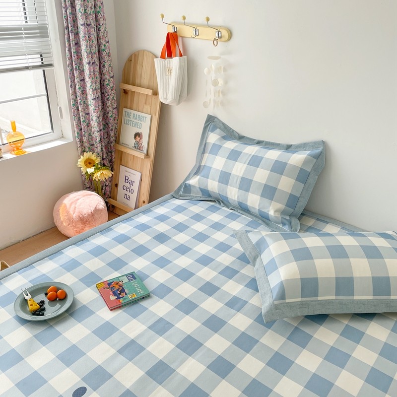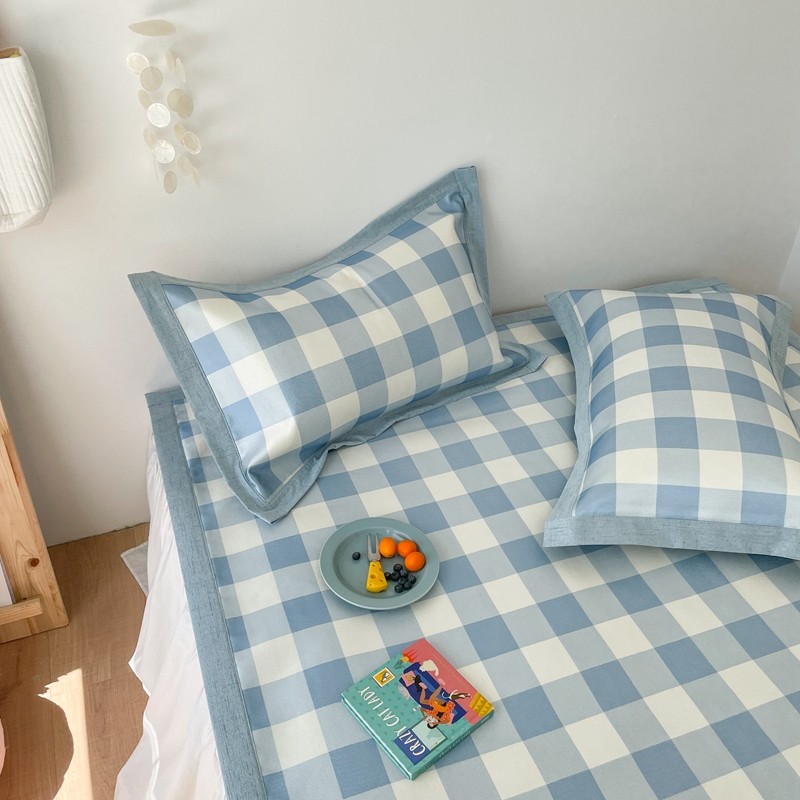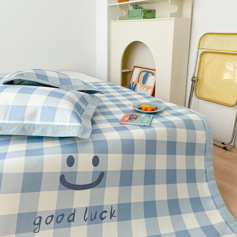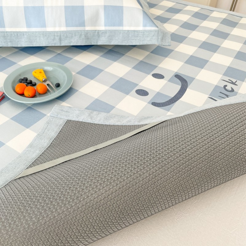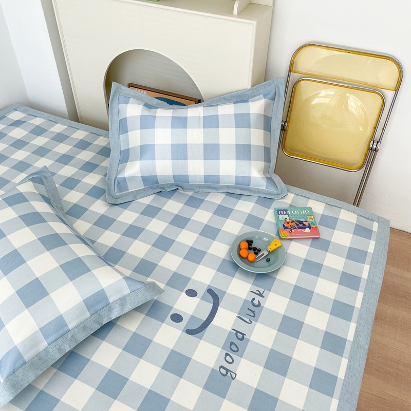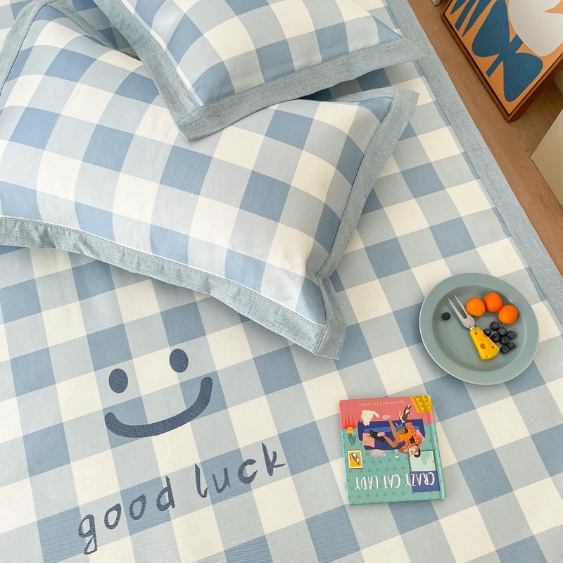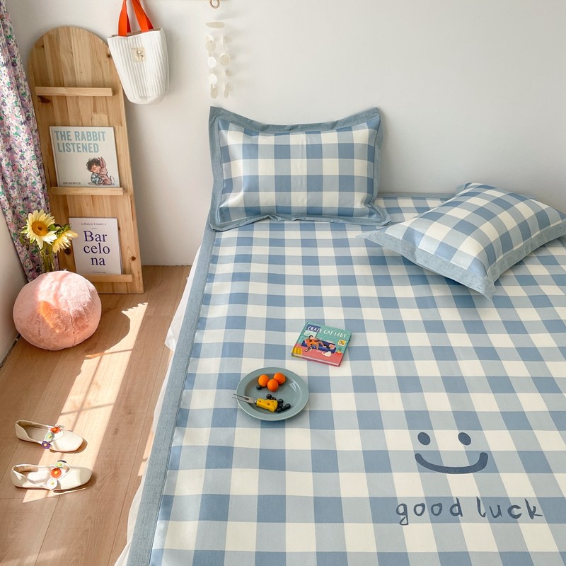 商品名称:时年 2021新款水洗养生冰丝凉席 蓝格笑脸
