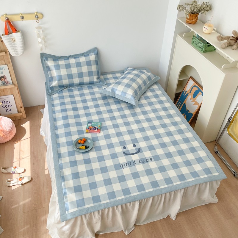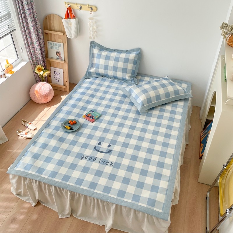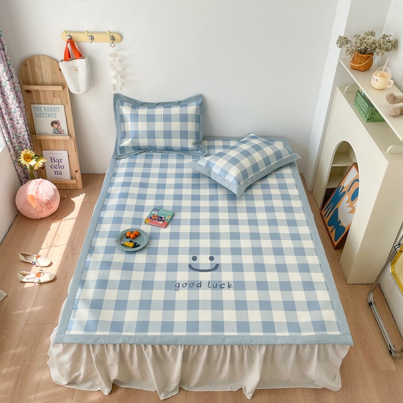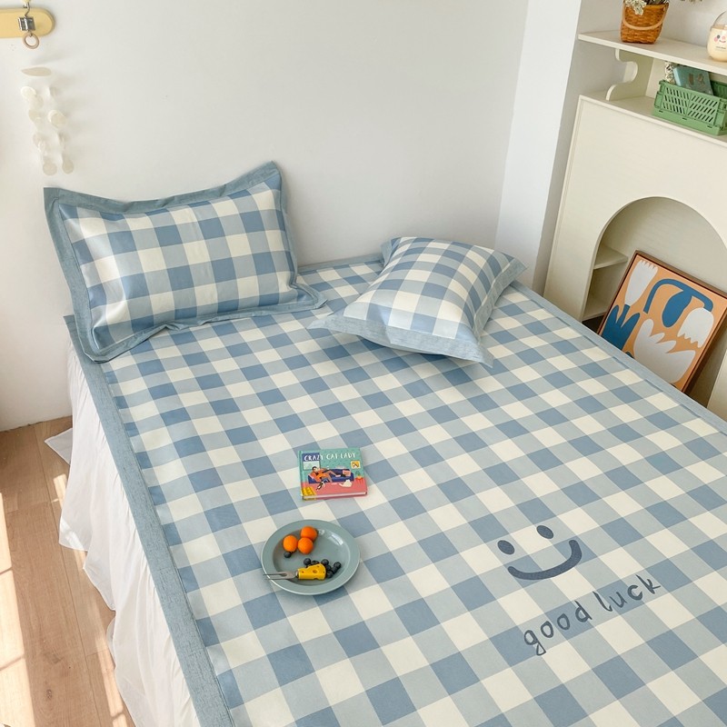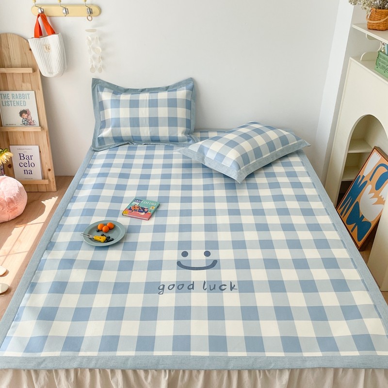 时年 2021新款水洗养生冰丝凉席 蓝格笑脸