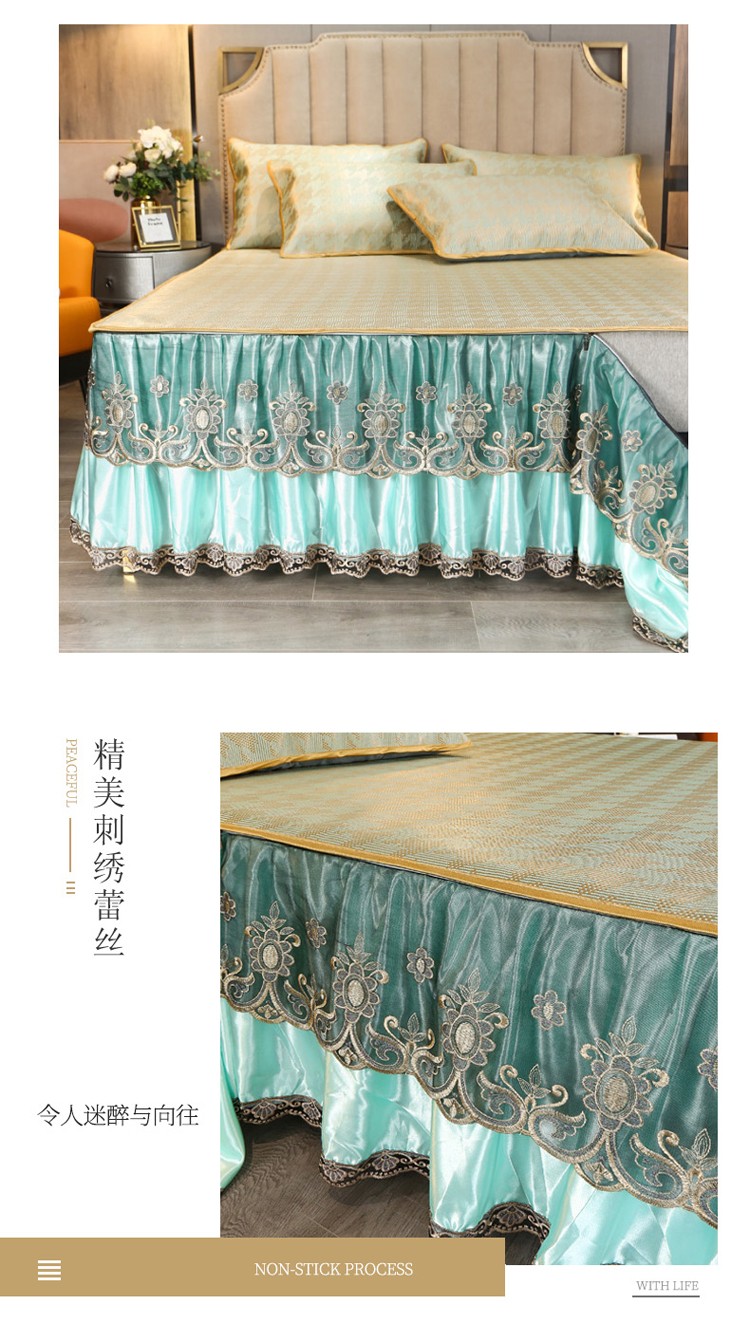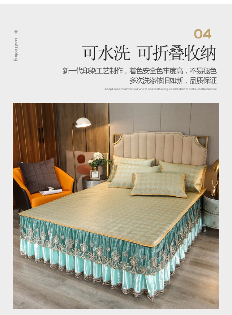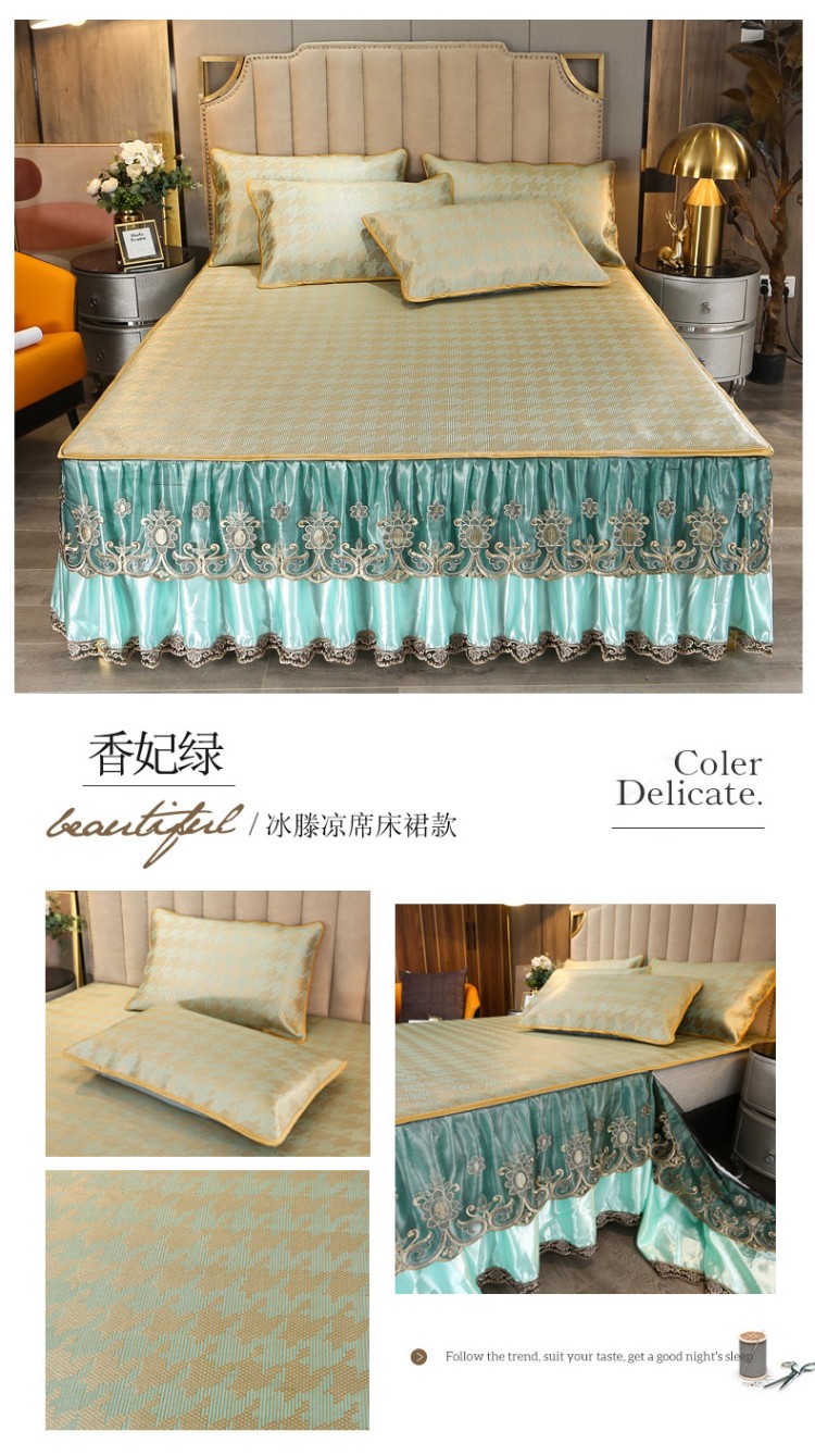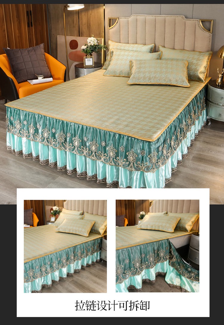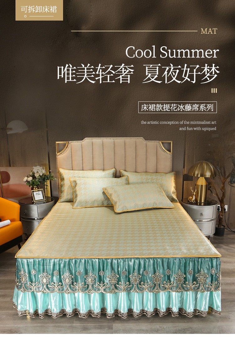 商品名称:菊上家纺 2021新款冰藤席床裙款三件套 香妃绿