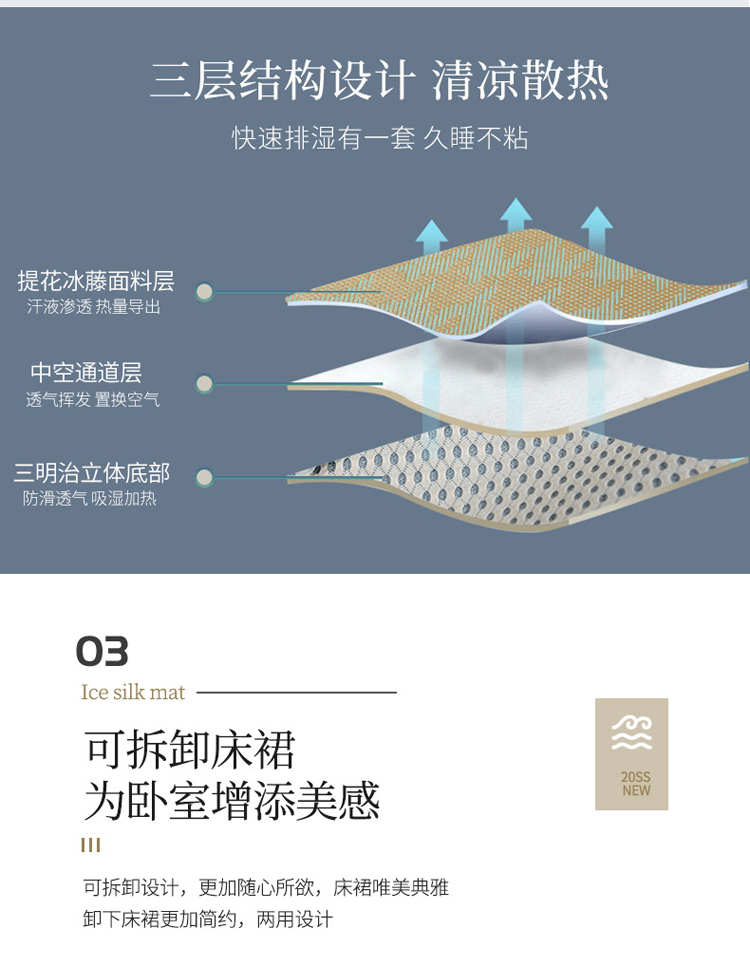 菊上家纺 2021新款冰藤席床裙款三件套 香妃绿
