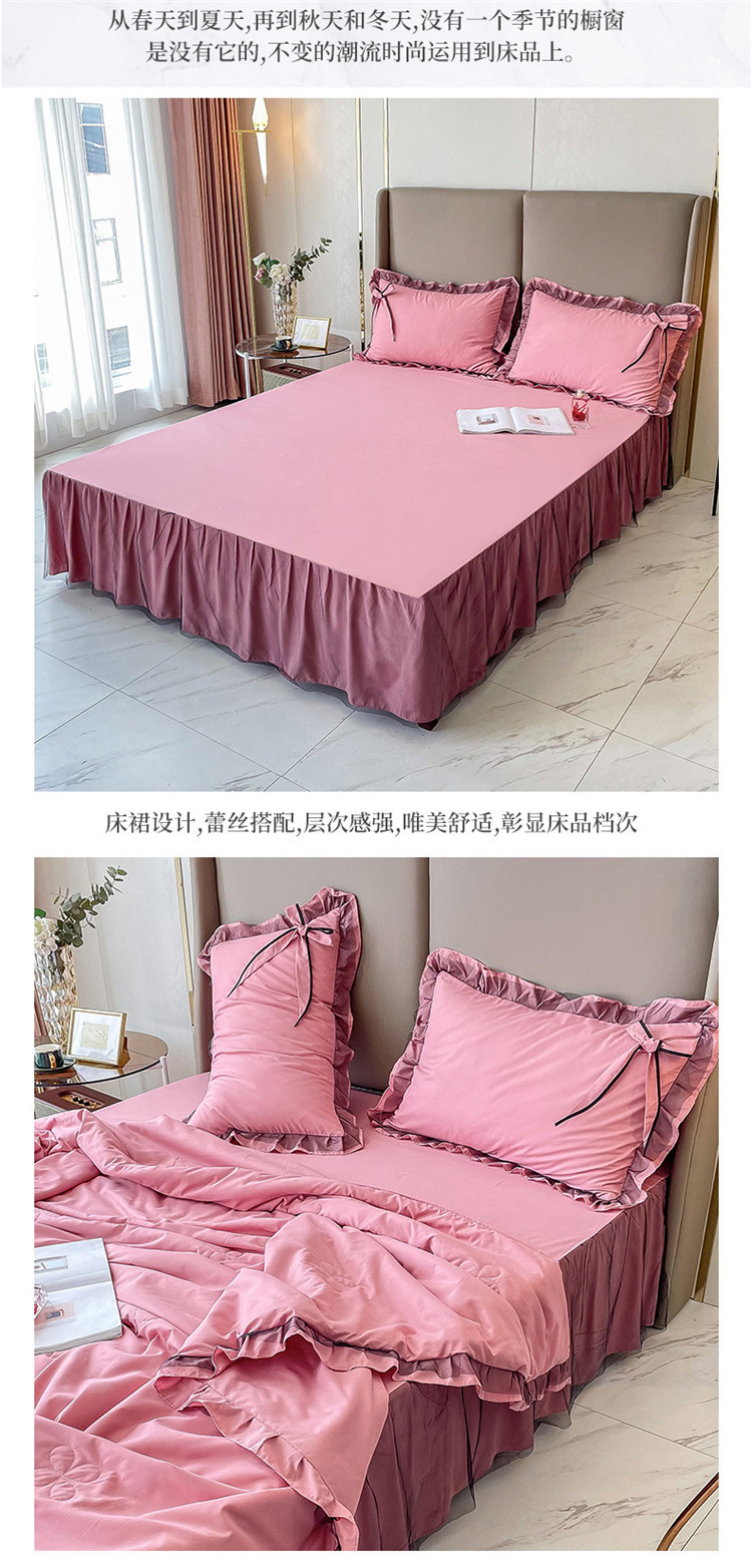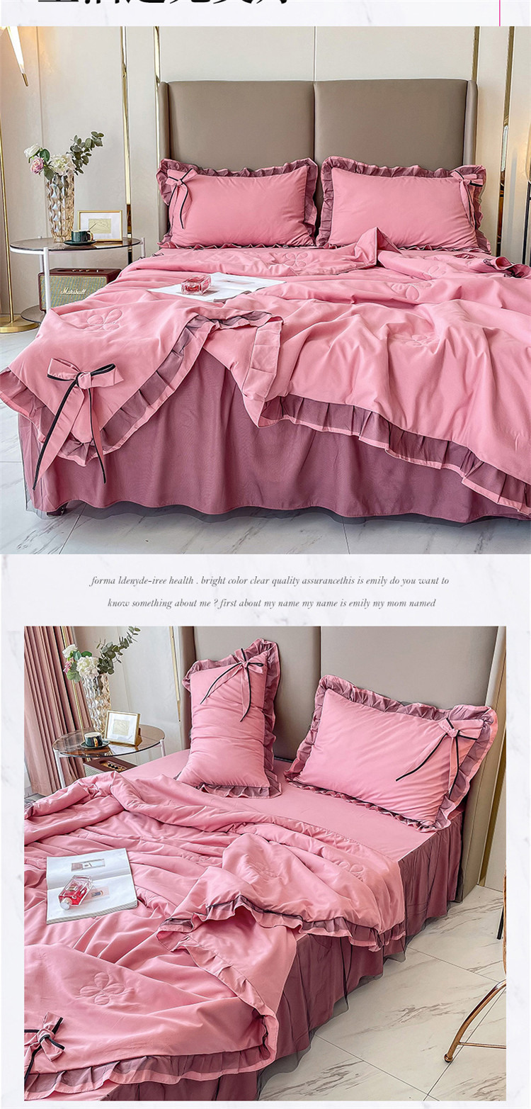 金米诺 新款韩版花边水洗棉泡泡纱四件套公主条四件套 褶皱-浅粉,褶皱-浅粉