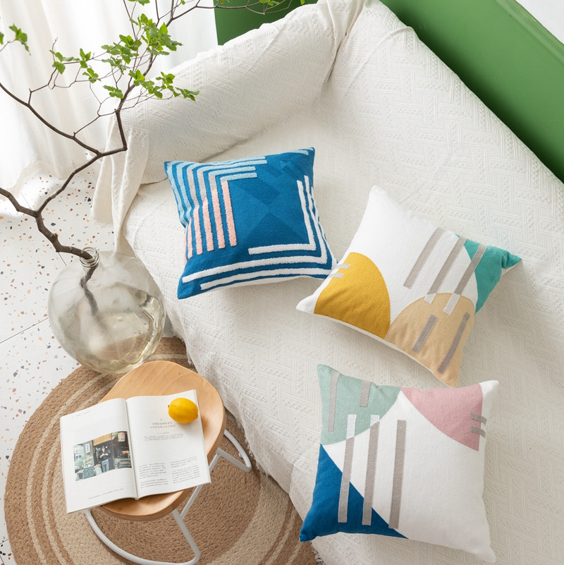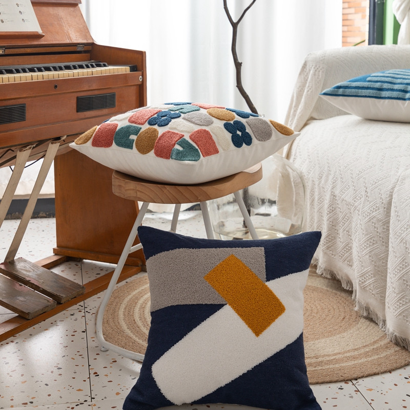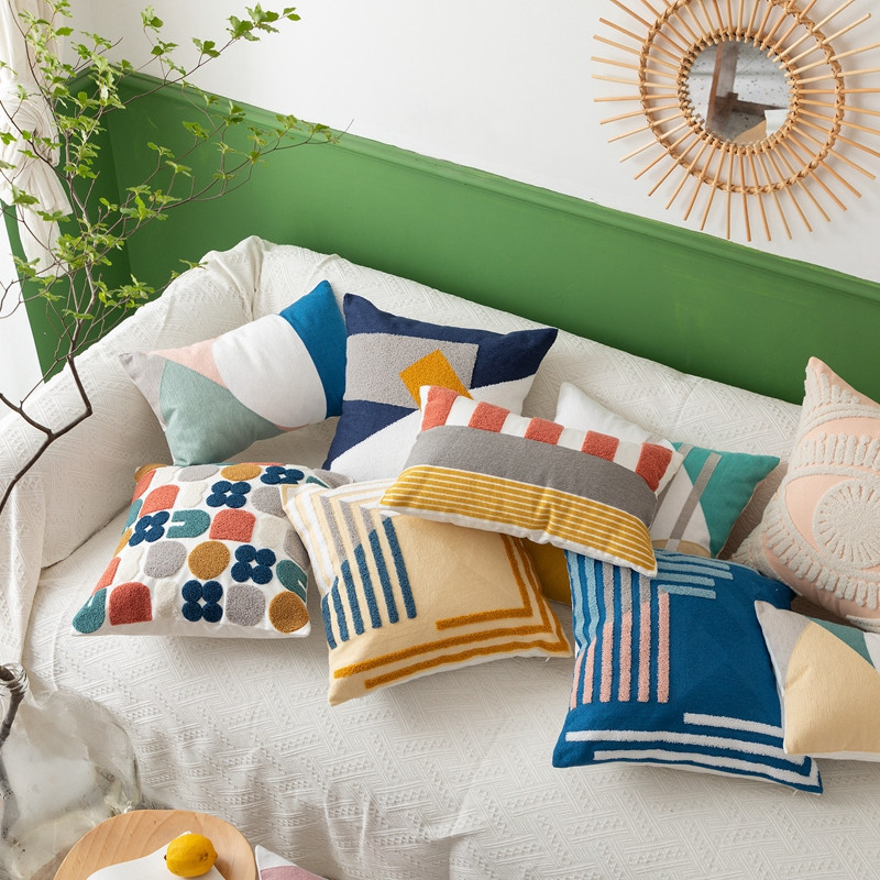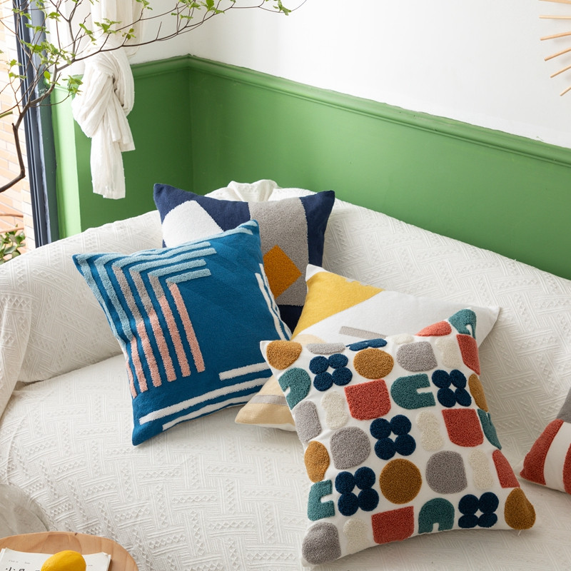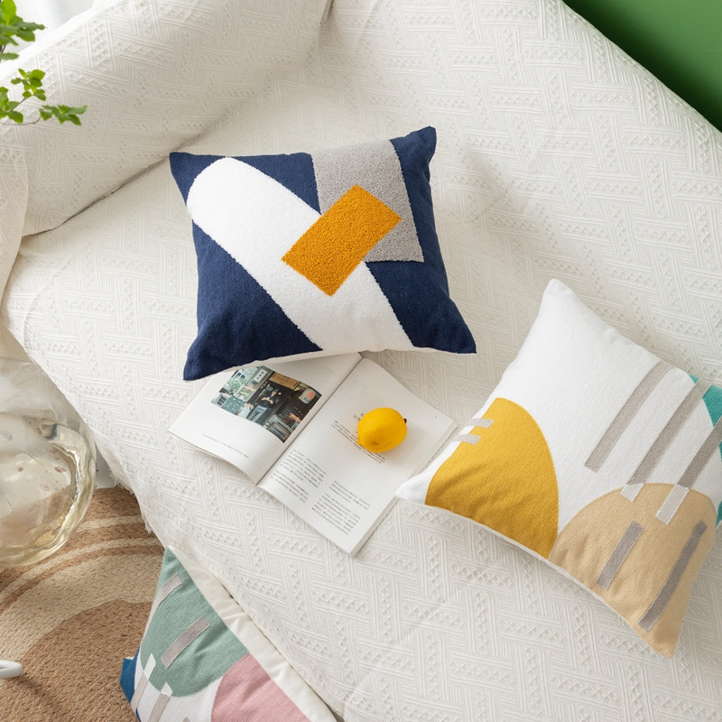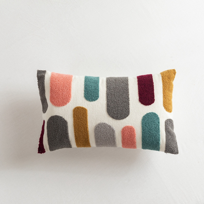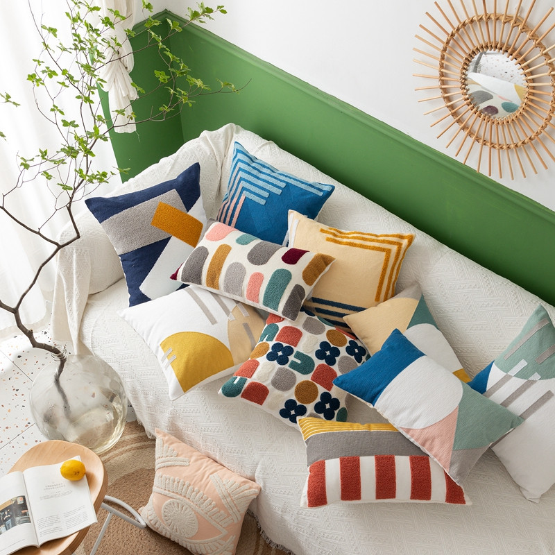 (总)918拾朵家居 2023新款简约风圈绒刺绣抱枕,灰咖(方),灰咖(长),洋橘(方),洋橘(长)