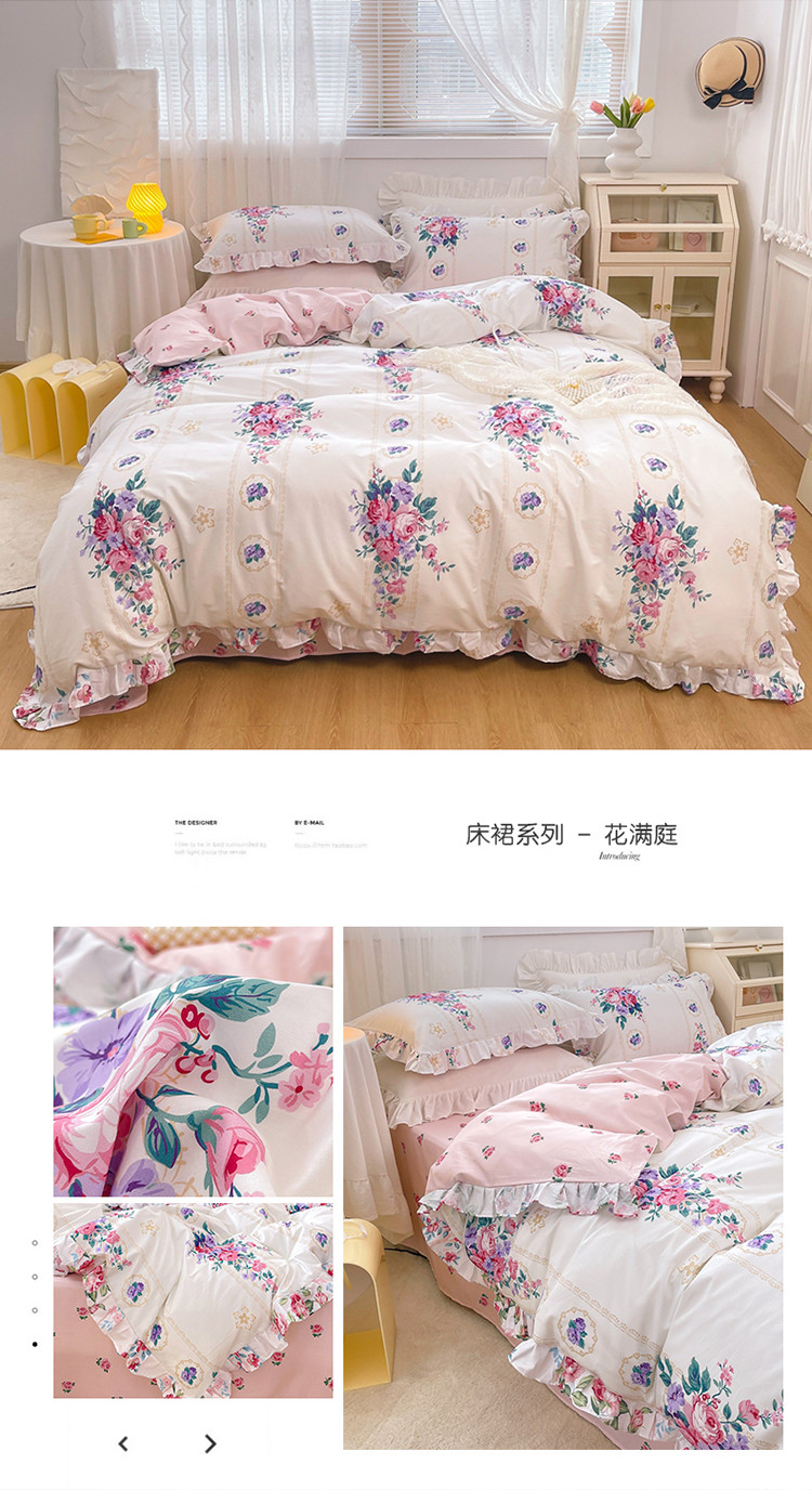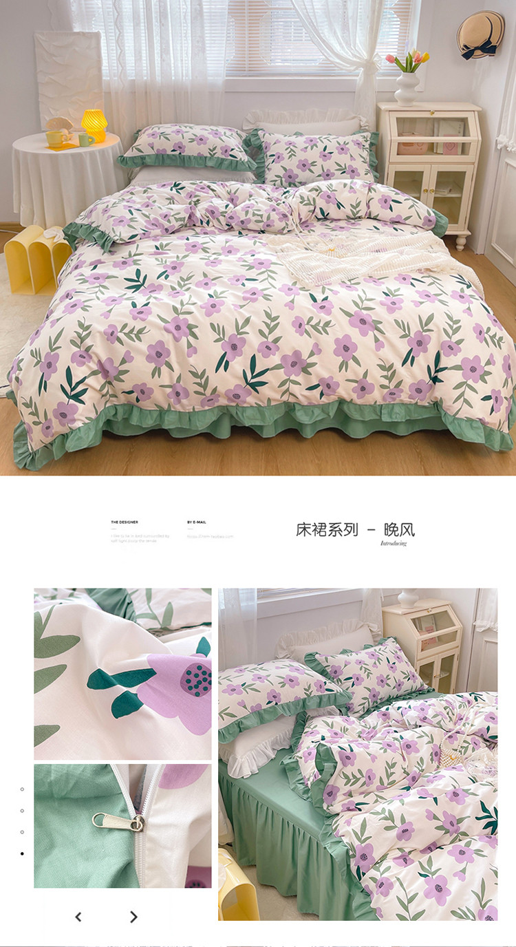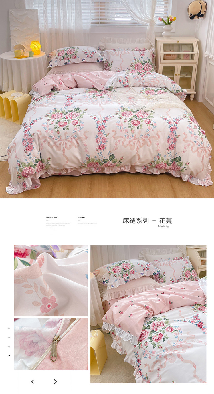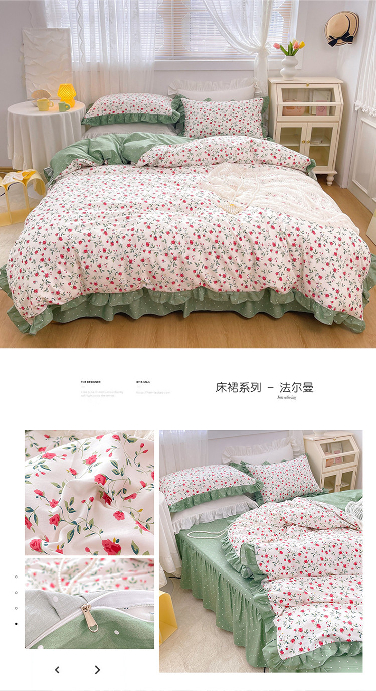 (总)曼之夏 2022新款全棉花边款床裙四件套