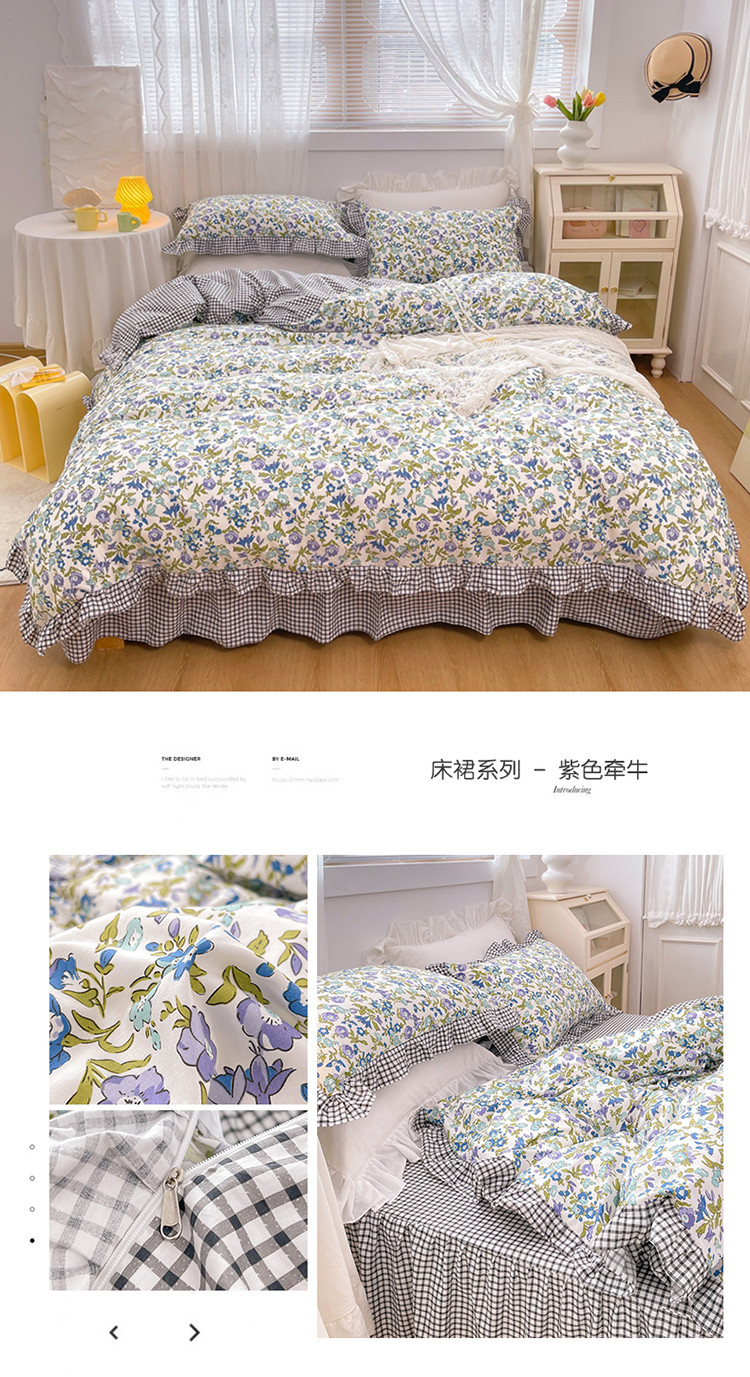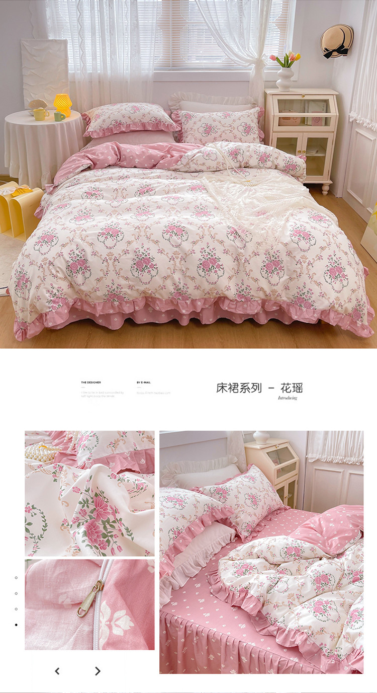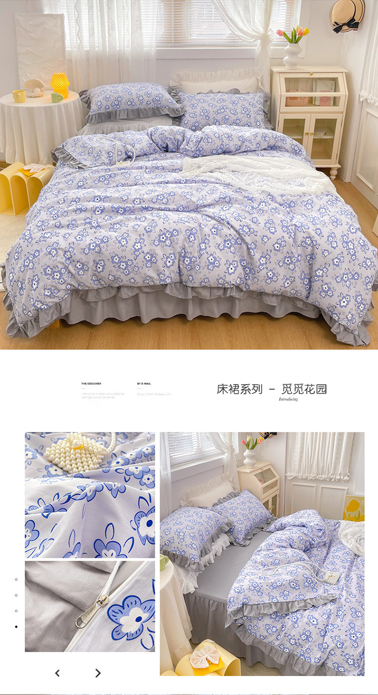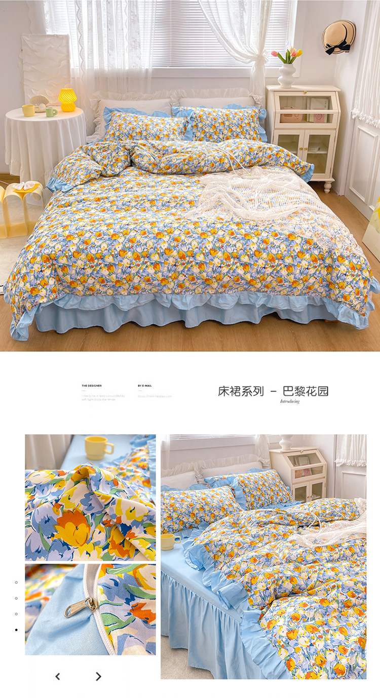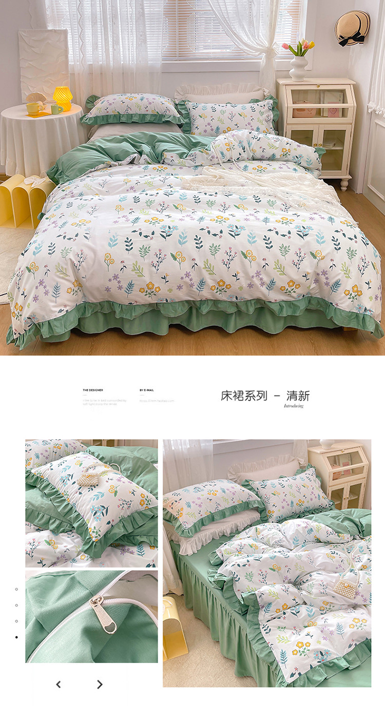 (总)曼之夏 2022新款全棉花边款床裙四件套