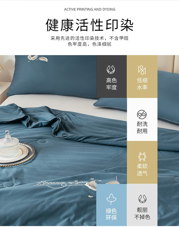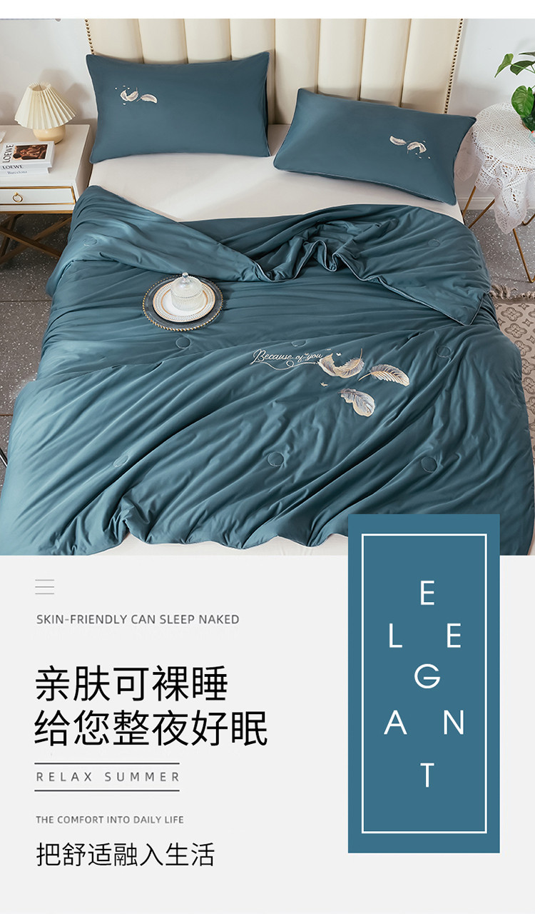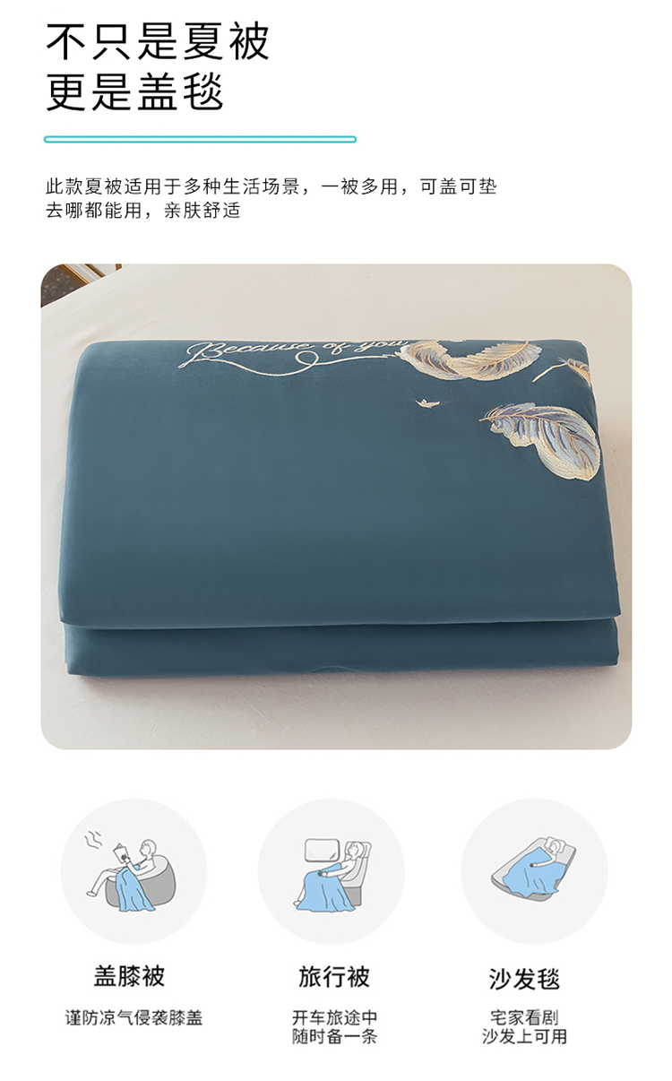 商品名称:芃成家纺 2021新款针织棉绣花夏被 羽毛宾利兰