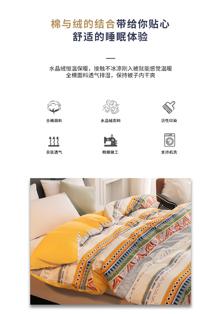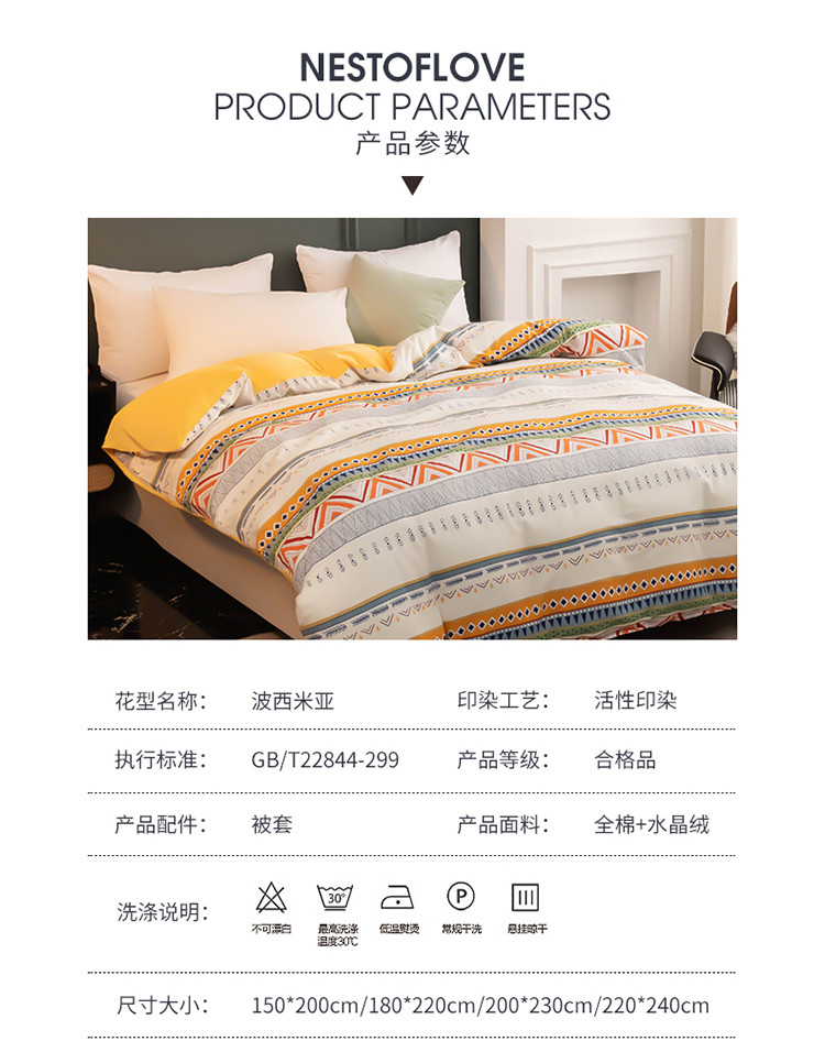 商品名称:芃成家纺 2021新款棉加绒单被套 波西米亚