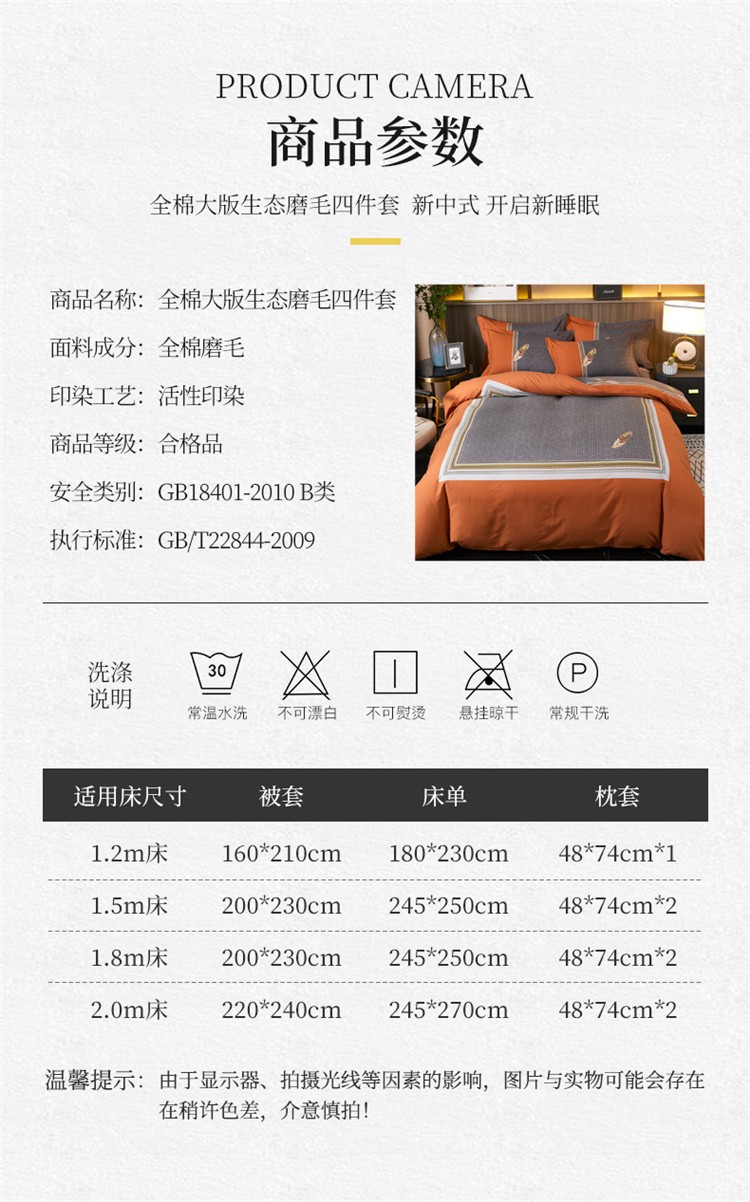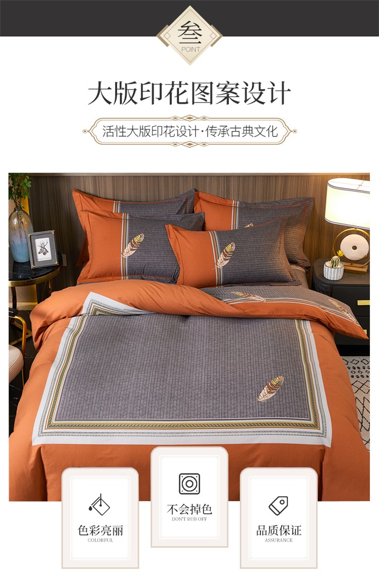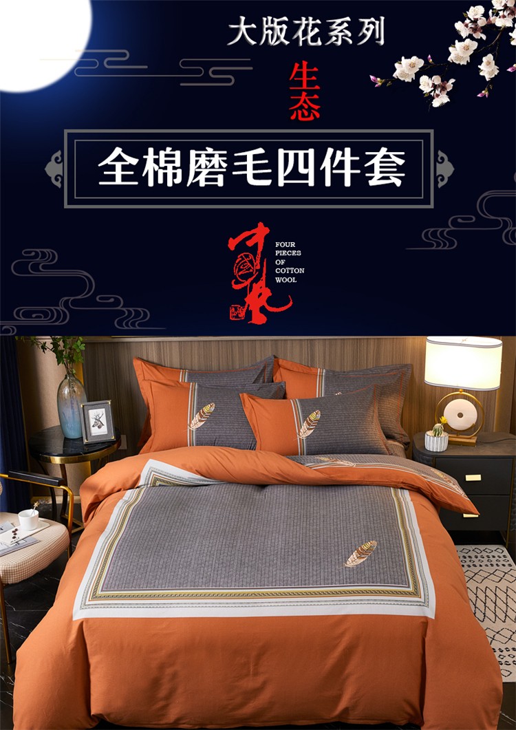 商品名称:芊寻家居 2024新款全棉大版磨毛四件套 云深梦桔