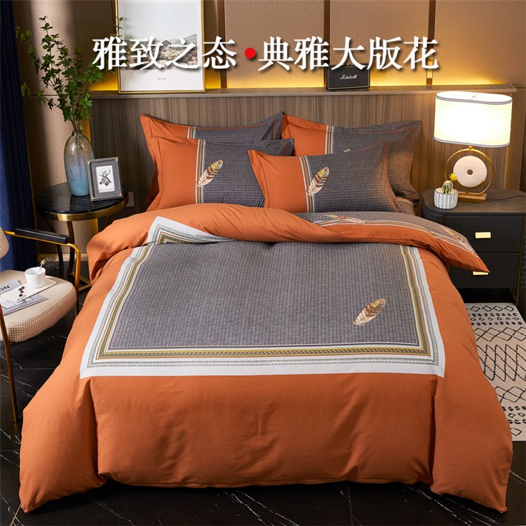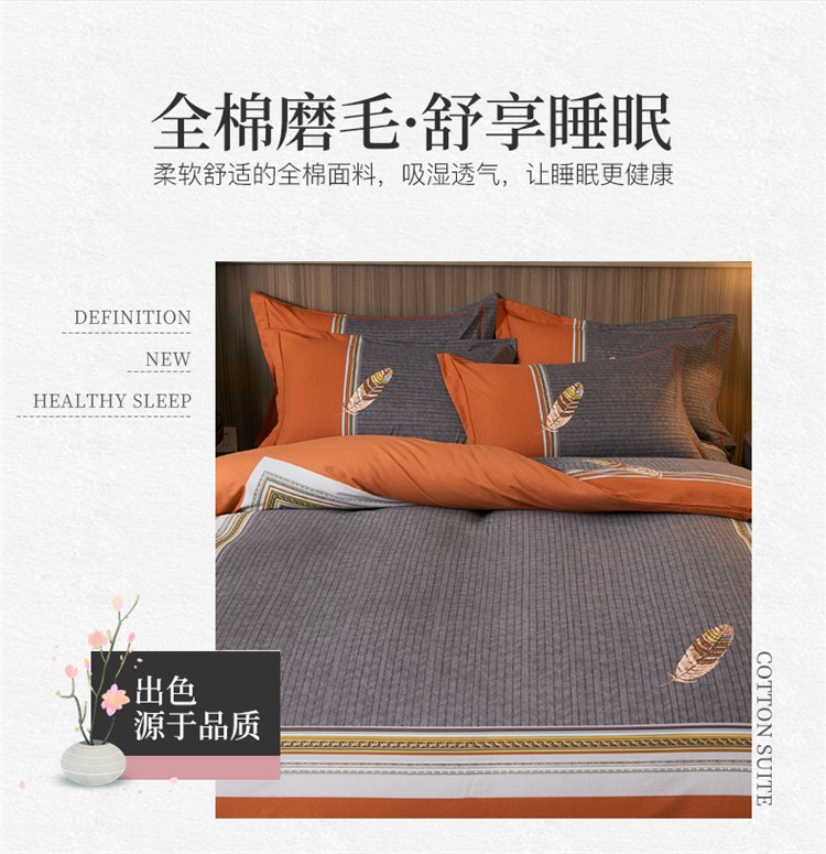芊寻家居 2024新款全棉大版磨毛四件套 云深梦桔