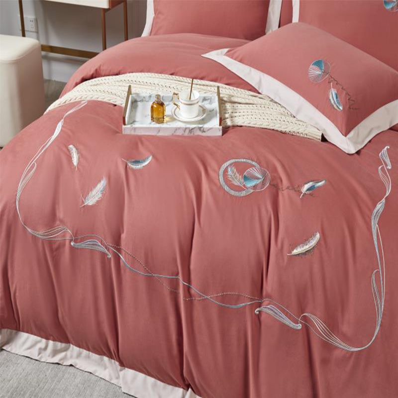 玖玖爱家纺2021新款100支贡缎磨毛四件套 羽魅熔岩红