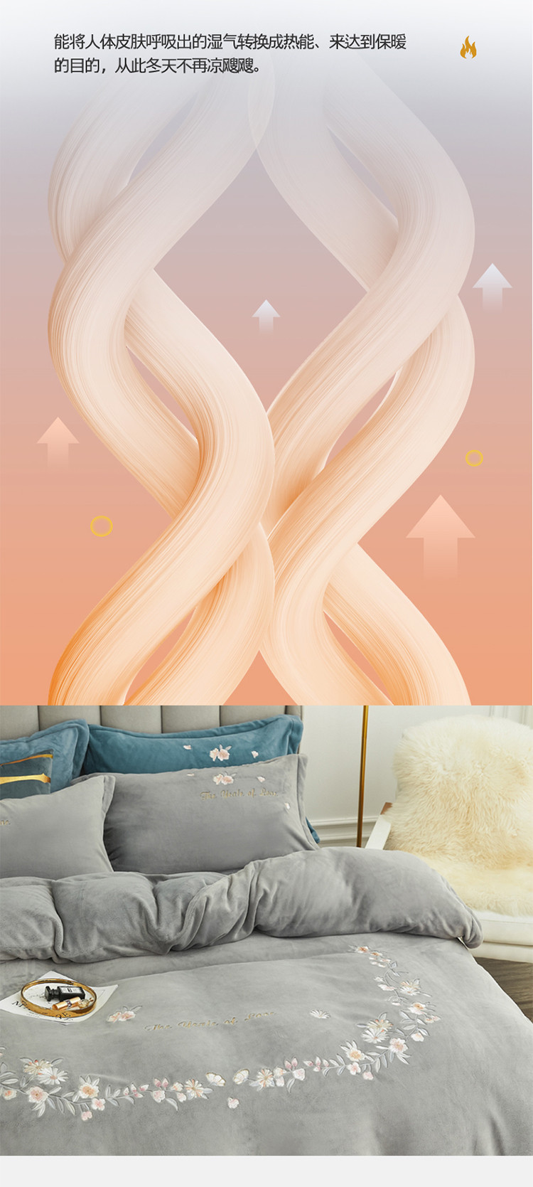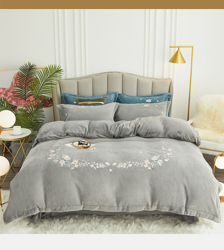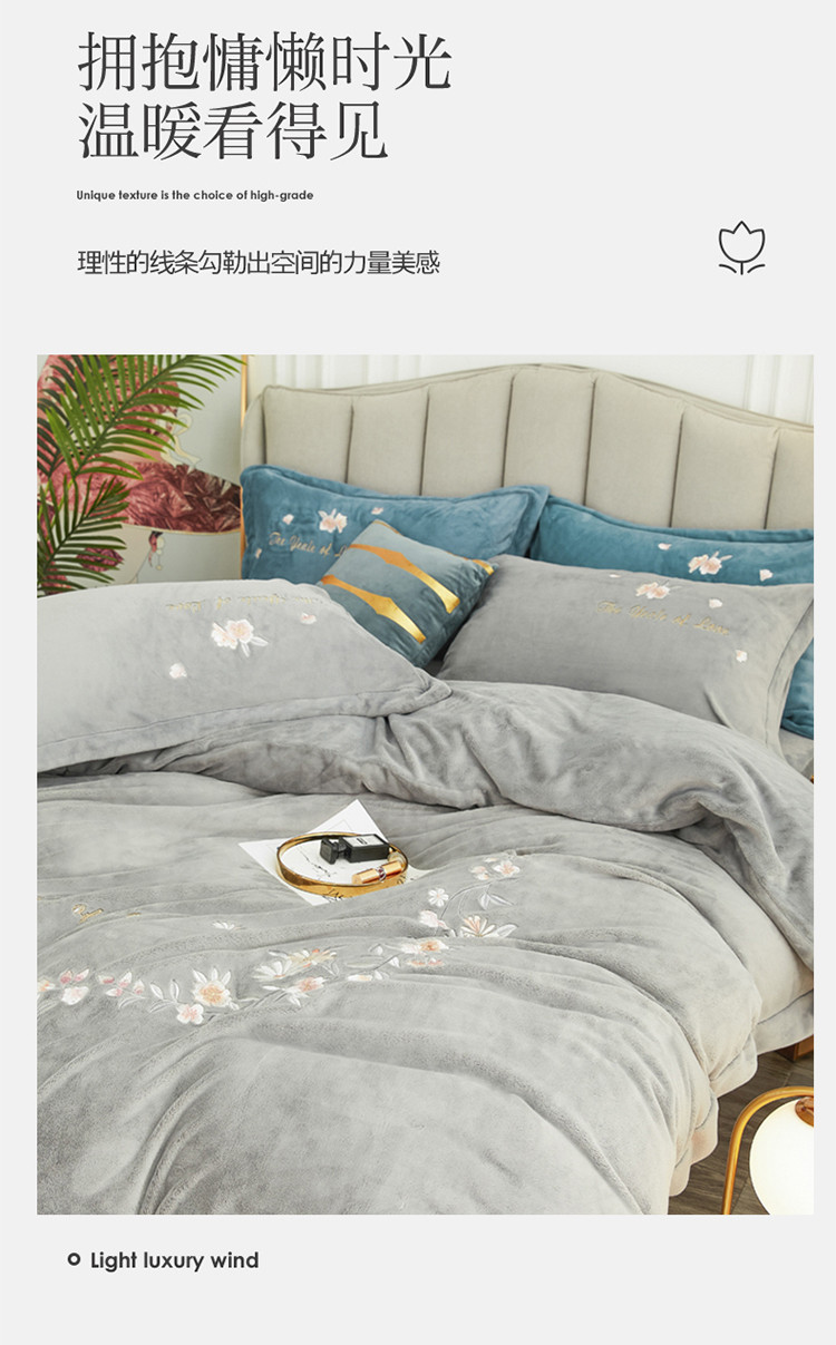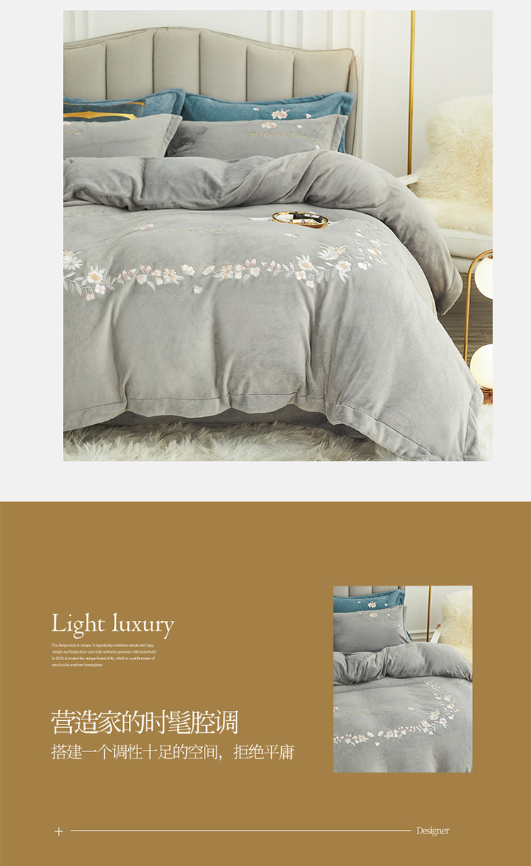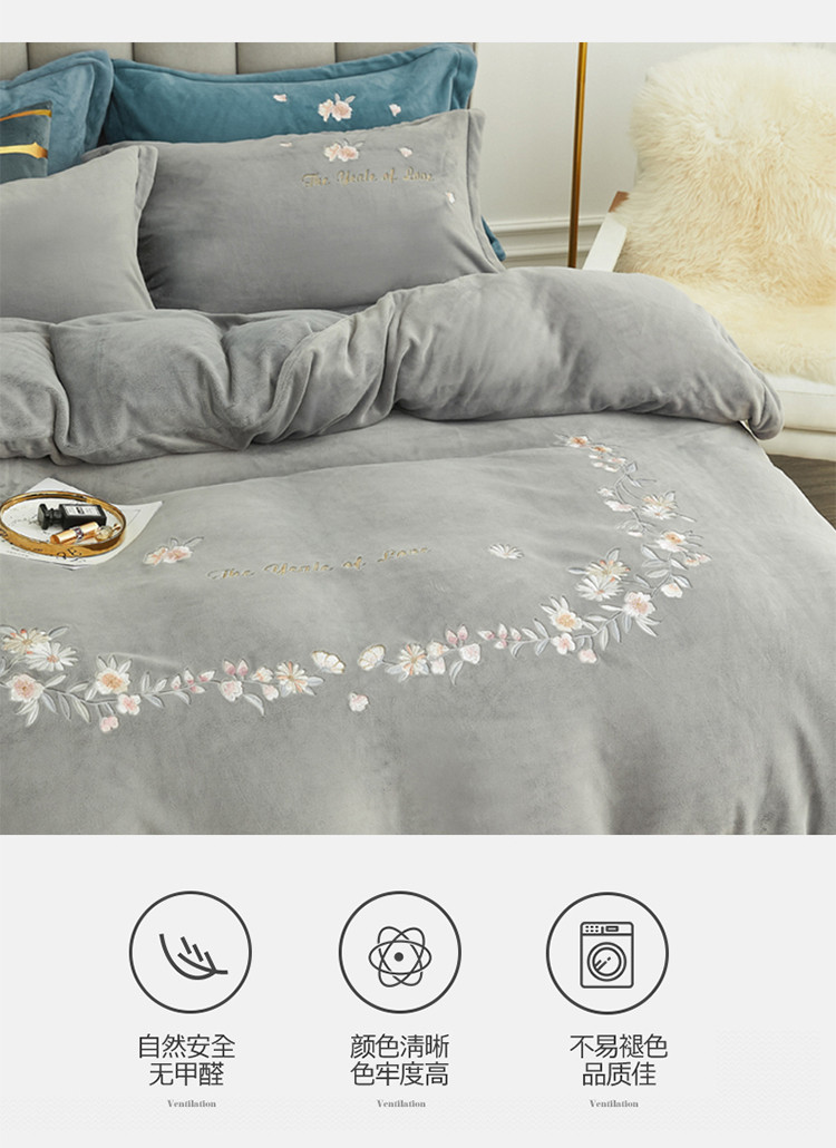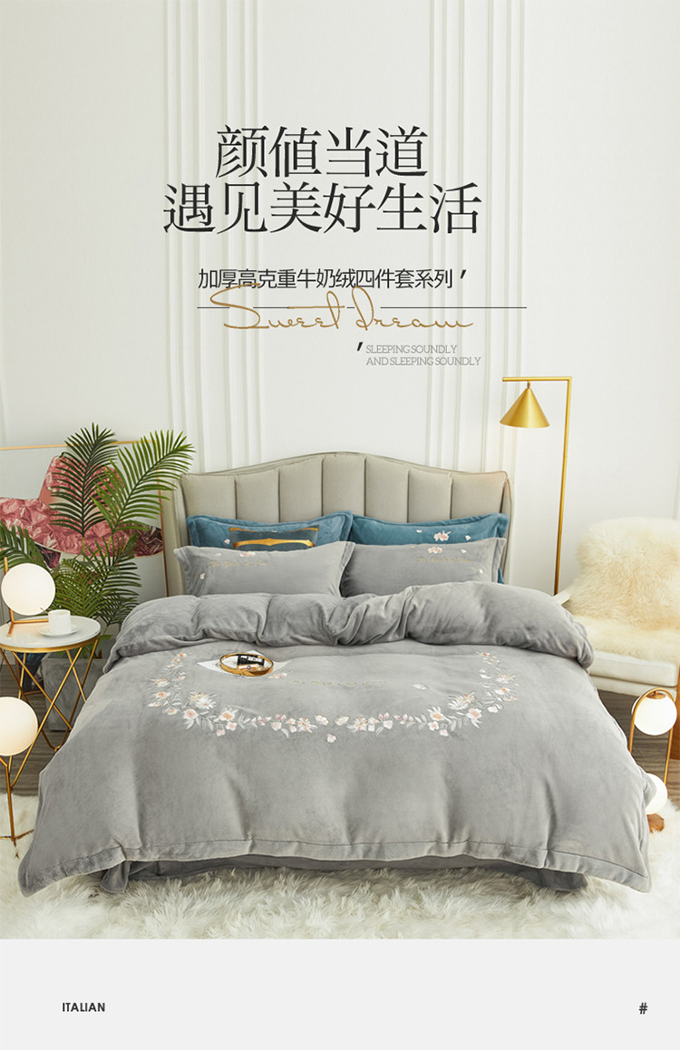商品名称:锦罗绣 2021新款高端牛奶绒刺绣款四件套 花好月圆-灰