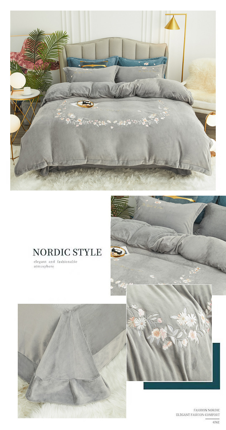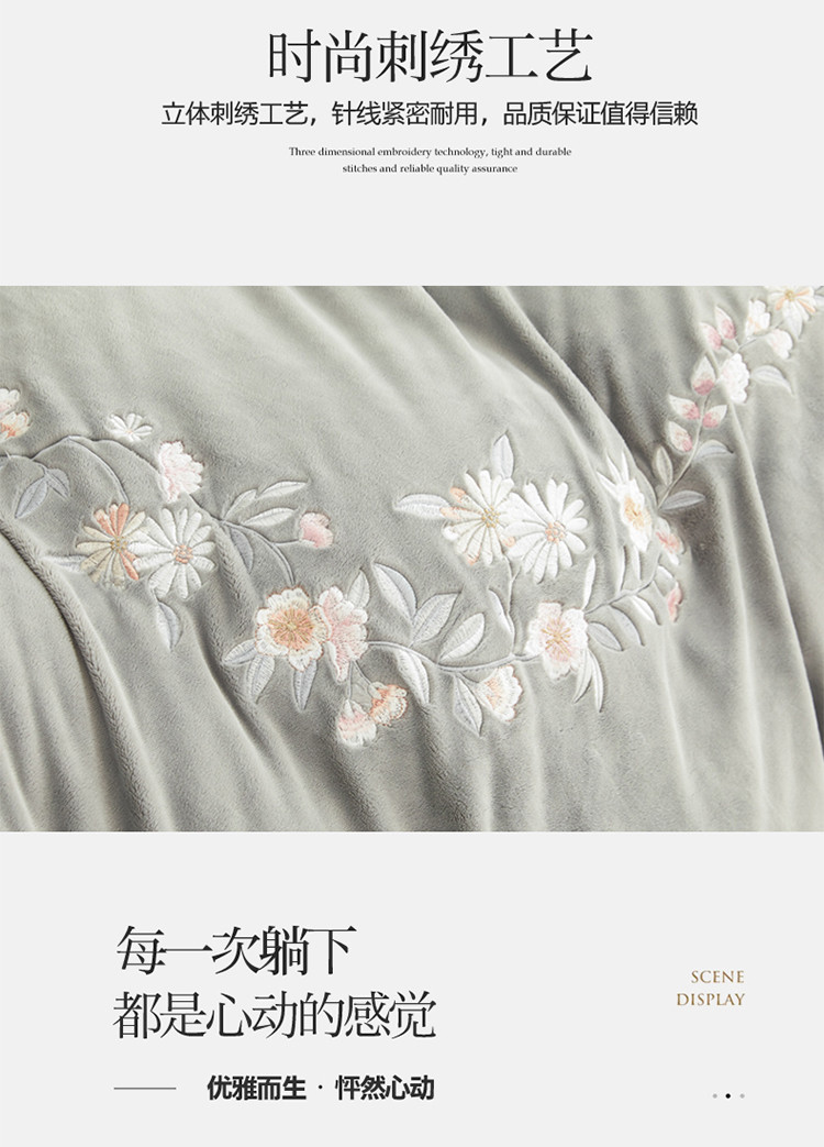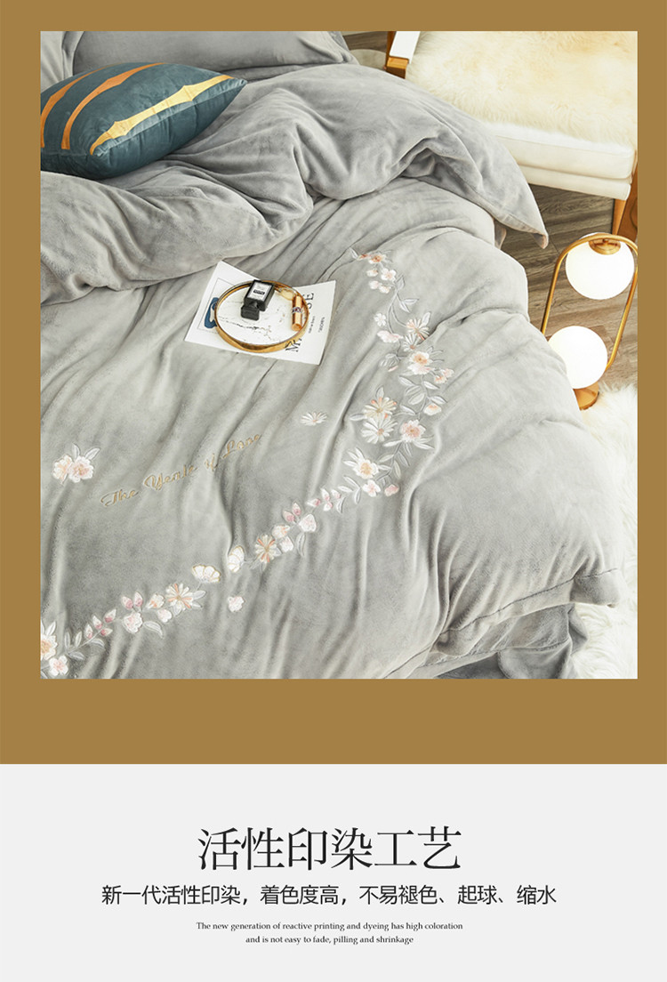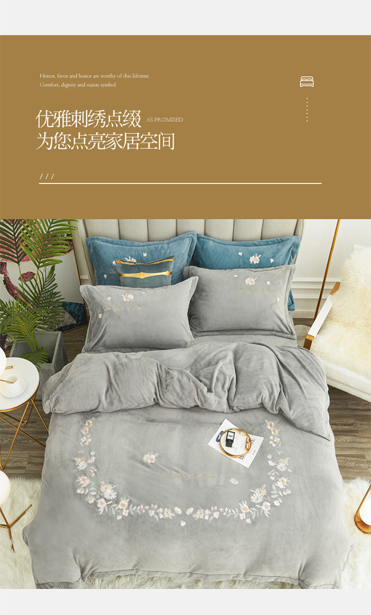 锦罗绣 2021新款高端牛奶绒刺绣款四件套 花好月圆-灰