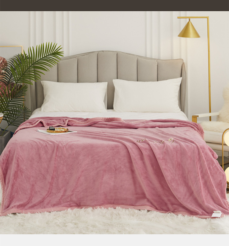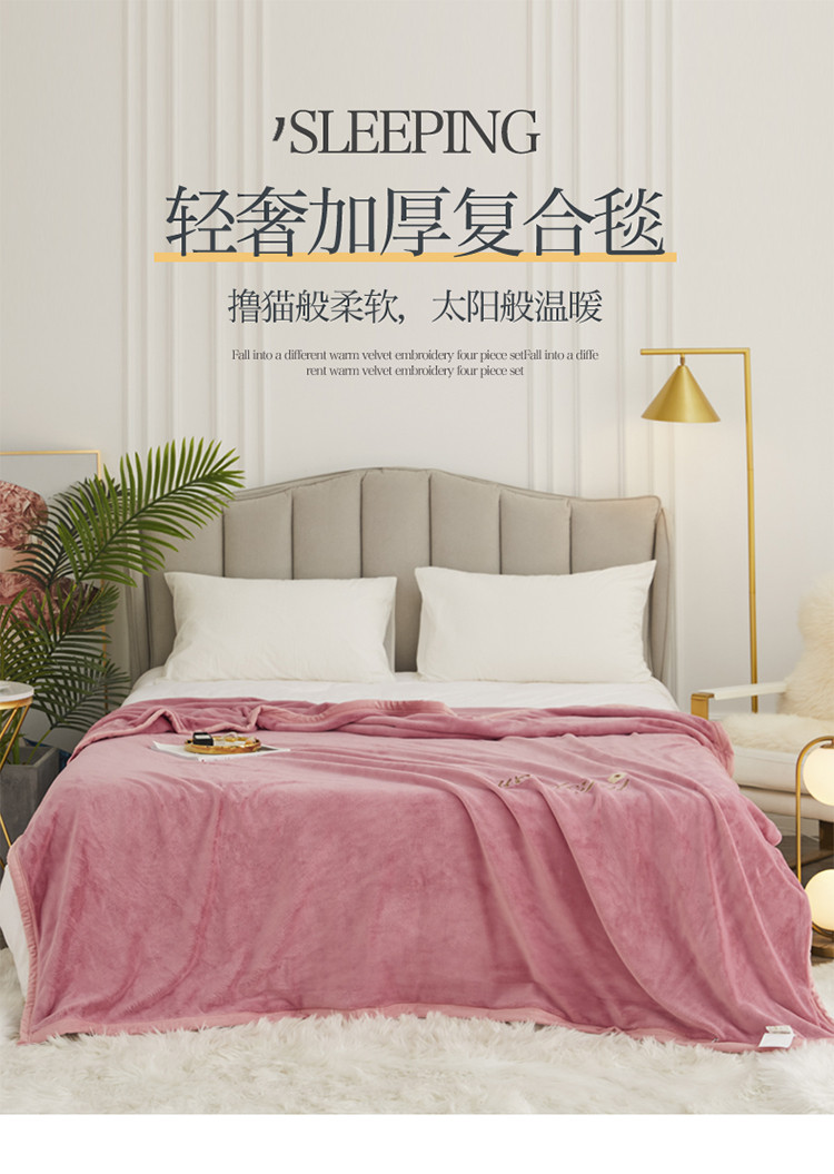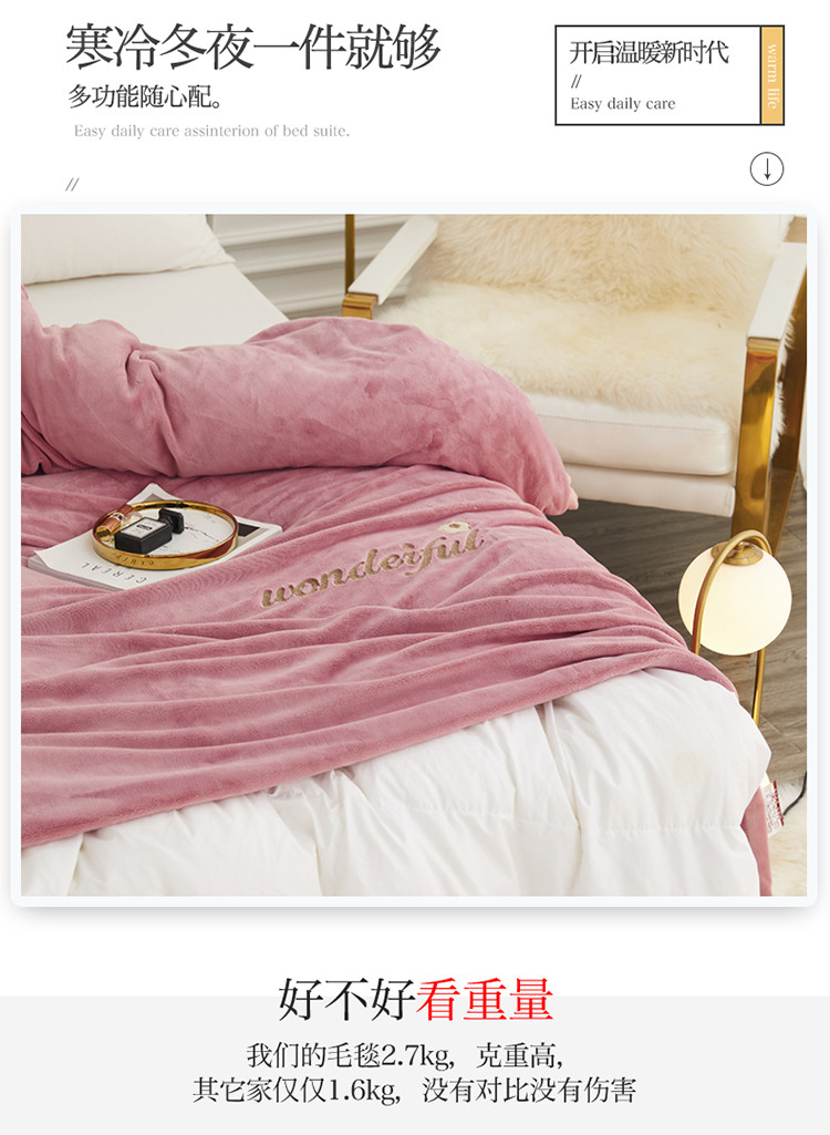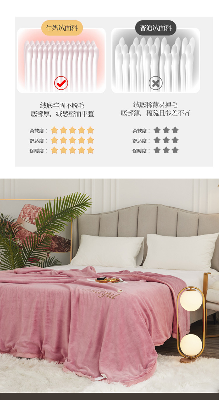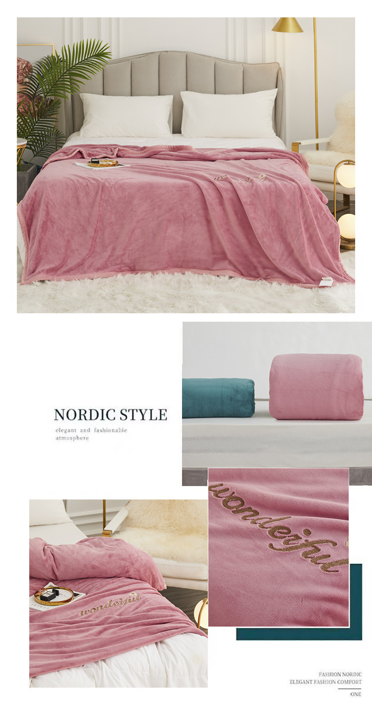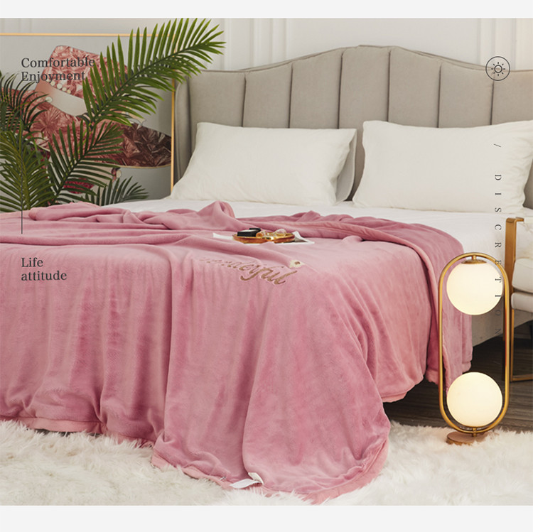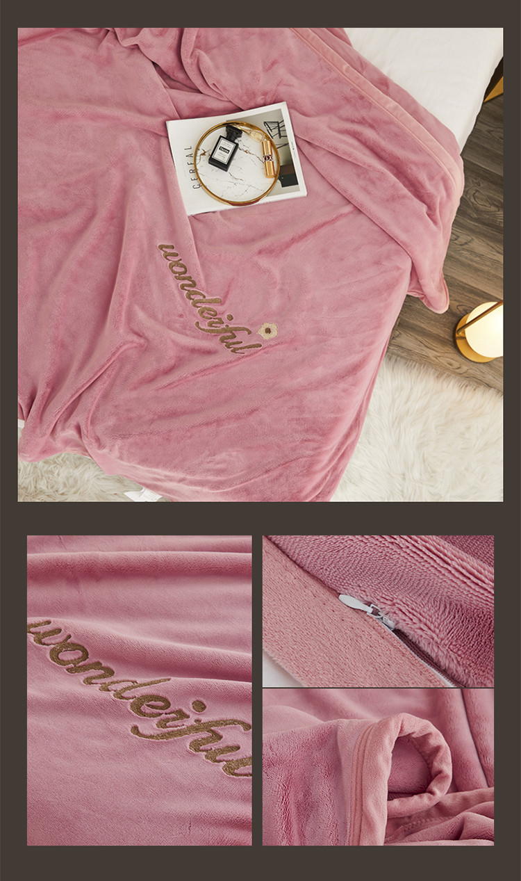 锦罗绣 2021新款高端牛奶绒刺绣款多功能盖毯 字母-豆沙