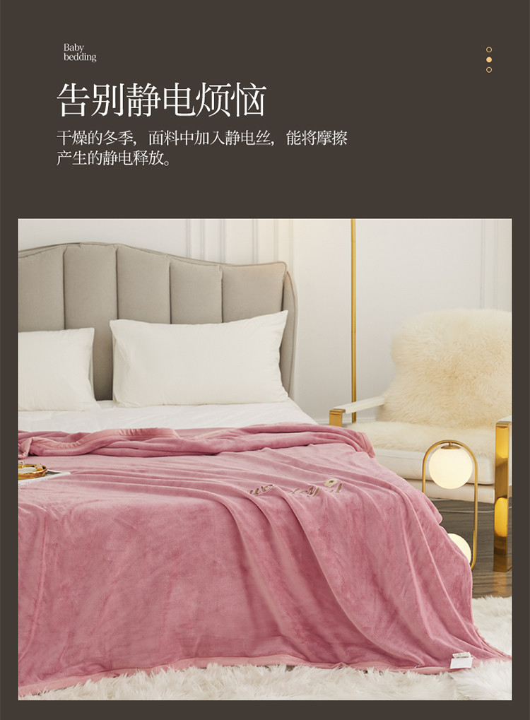 商品名称:锦罗绣 2021新款高端牛奶绒刺绣款多功能盖毯 字母-豆沙