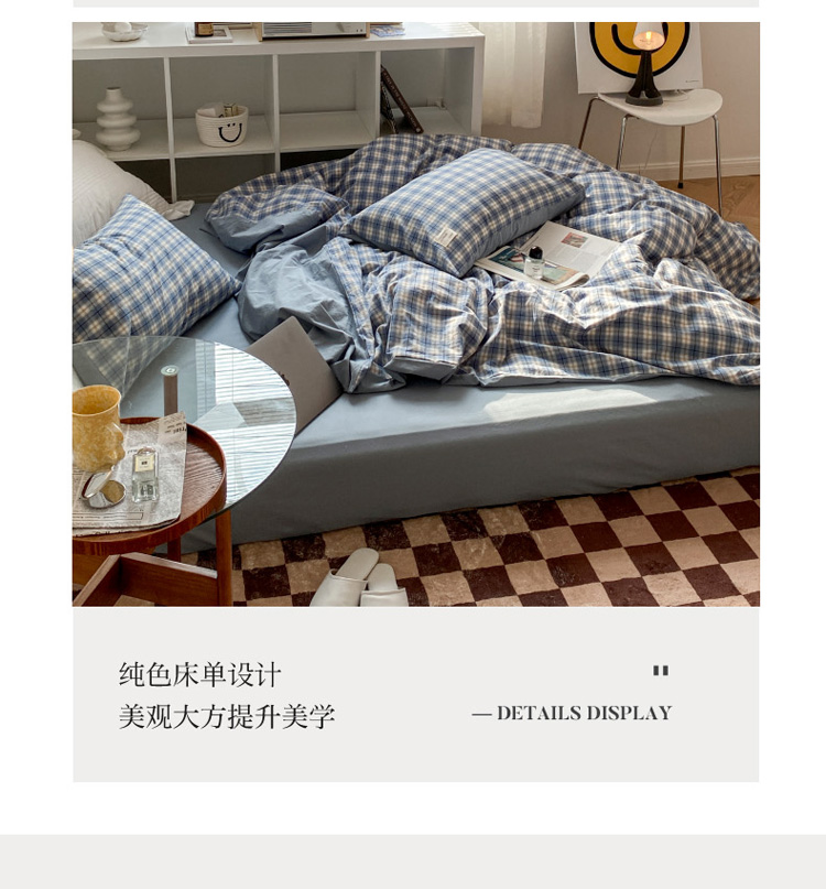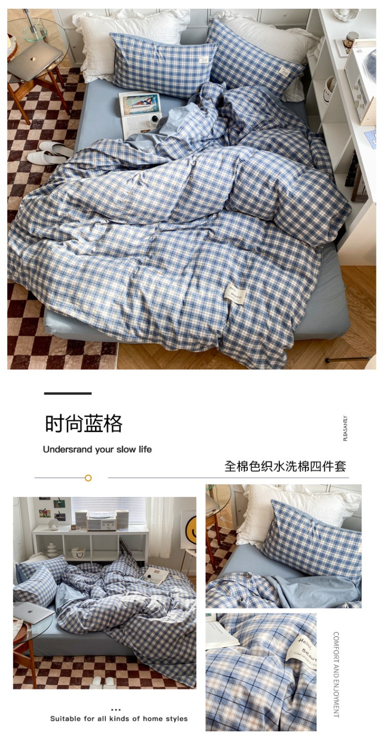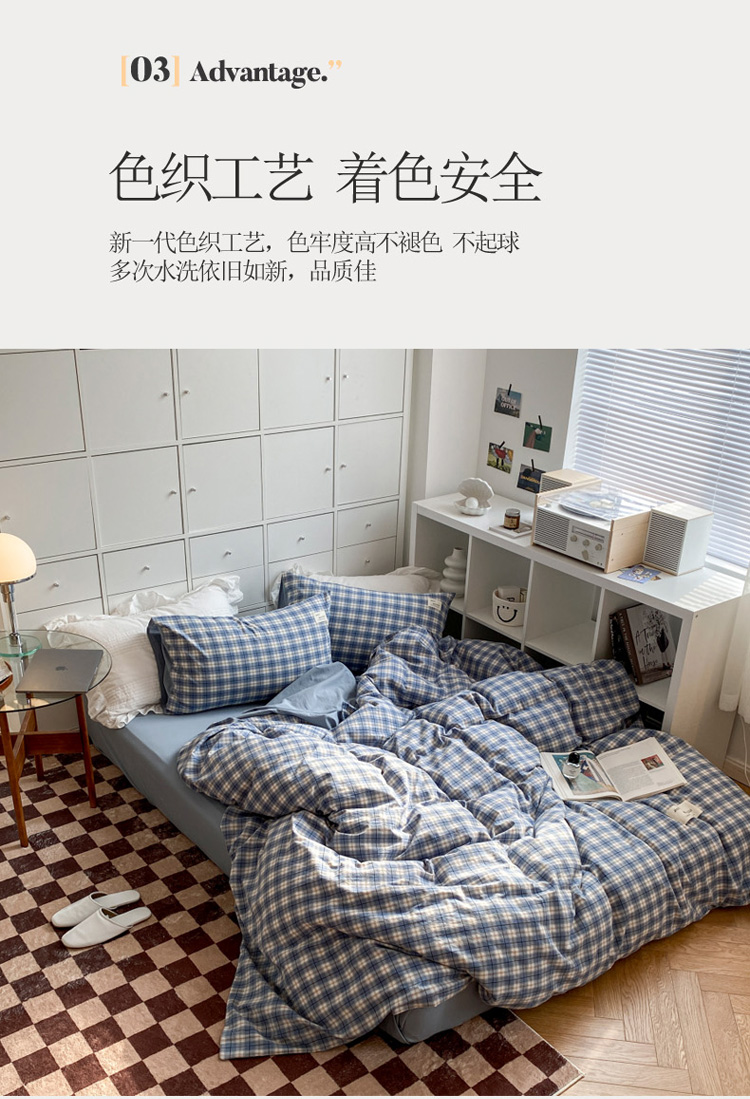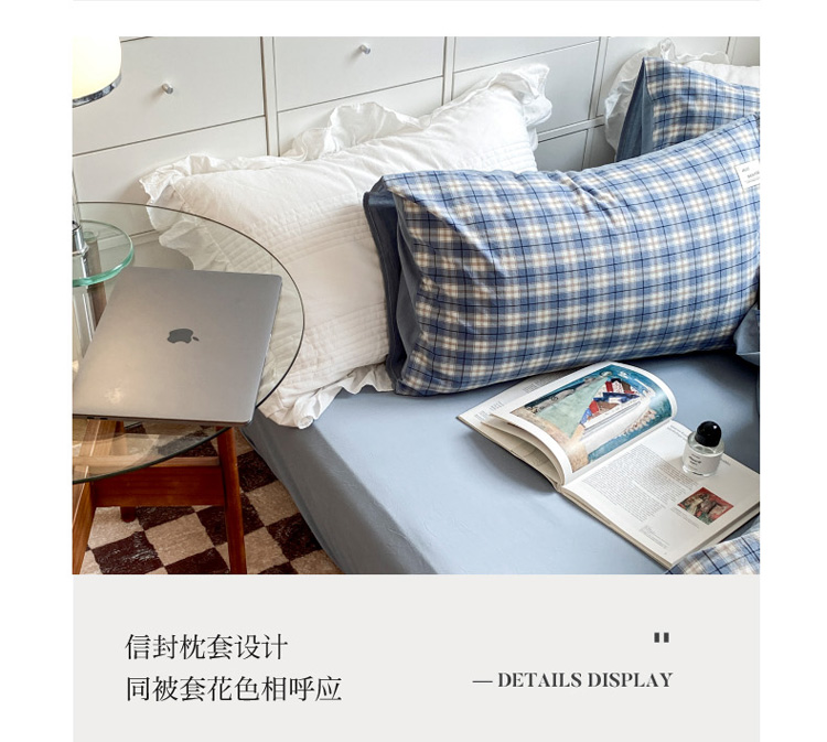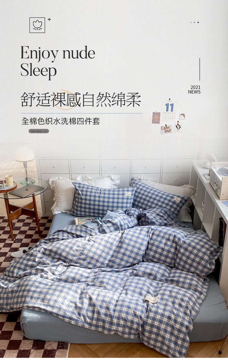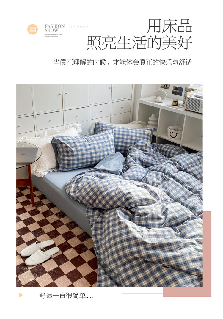 当前位置: 91家纺网 > 商品网购 > 床品套件 > 四件套 > 水洗棉四件套 > 寐居 2021水洗色织全棉四件套 时尚蓝格