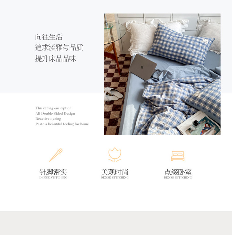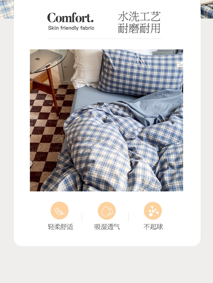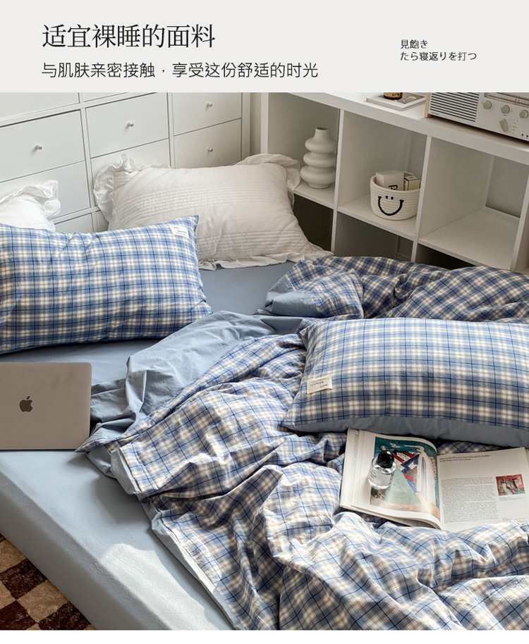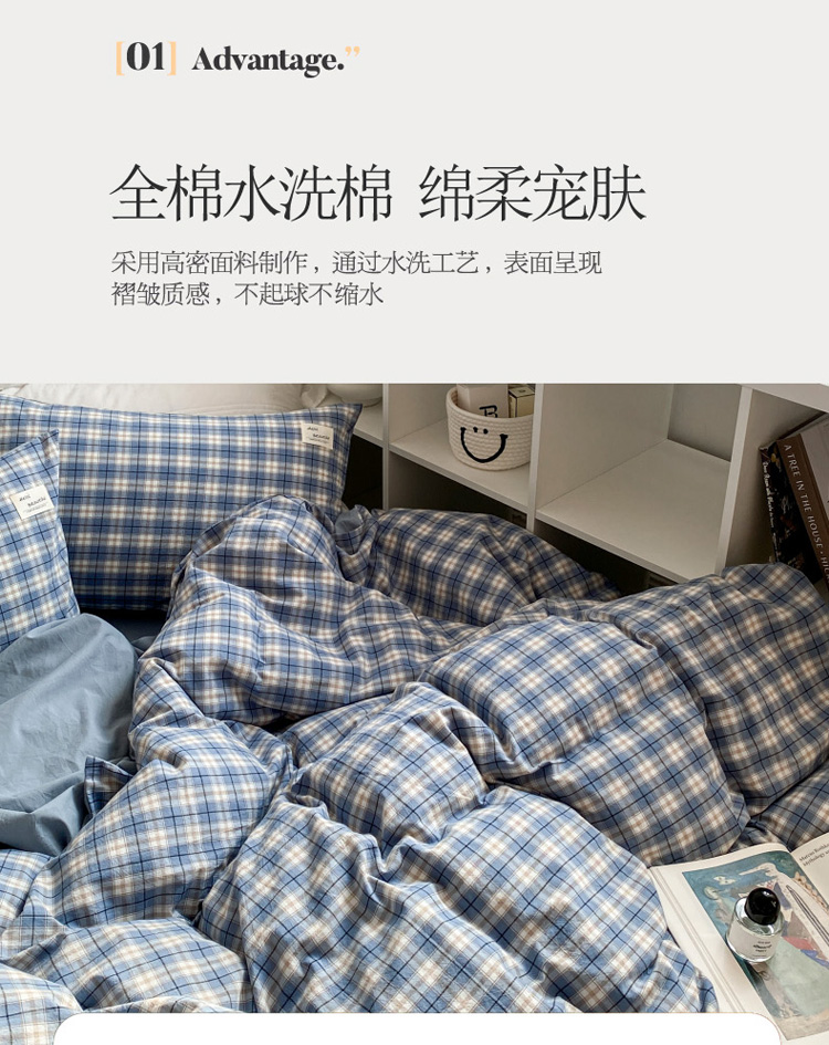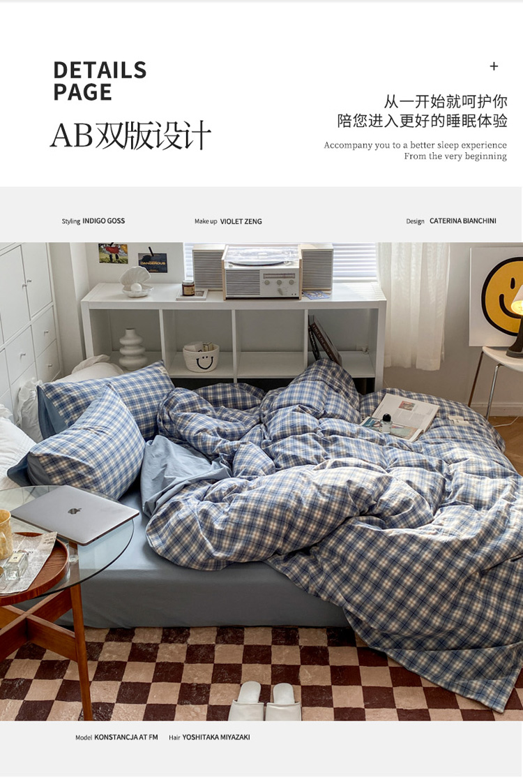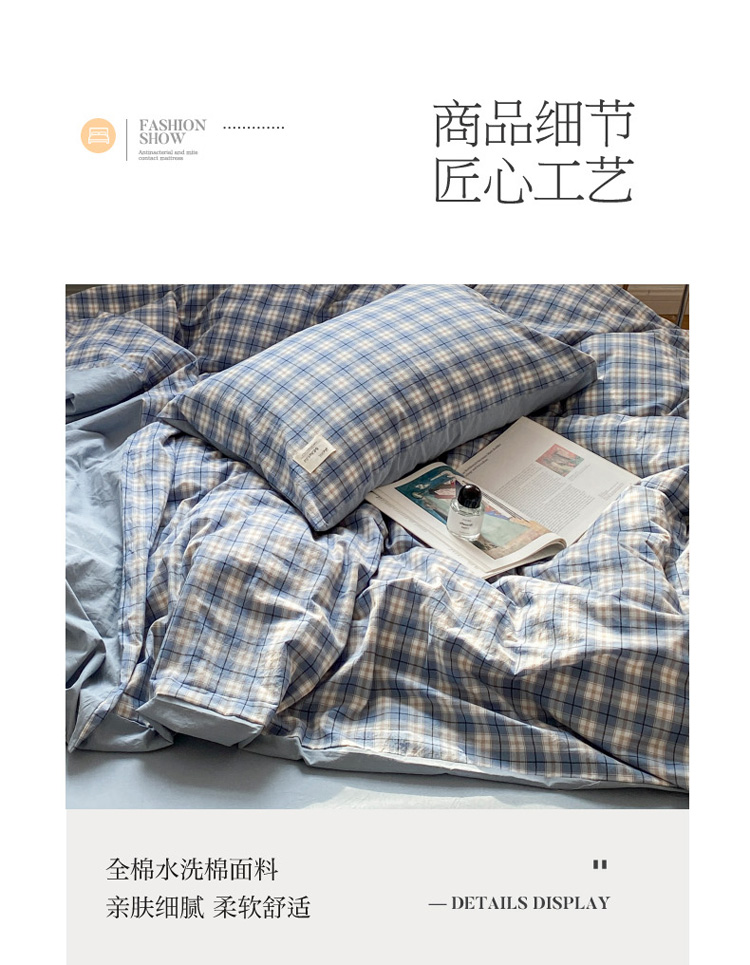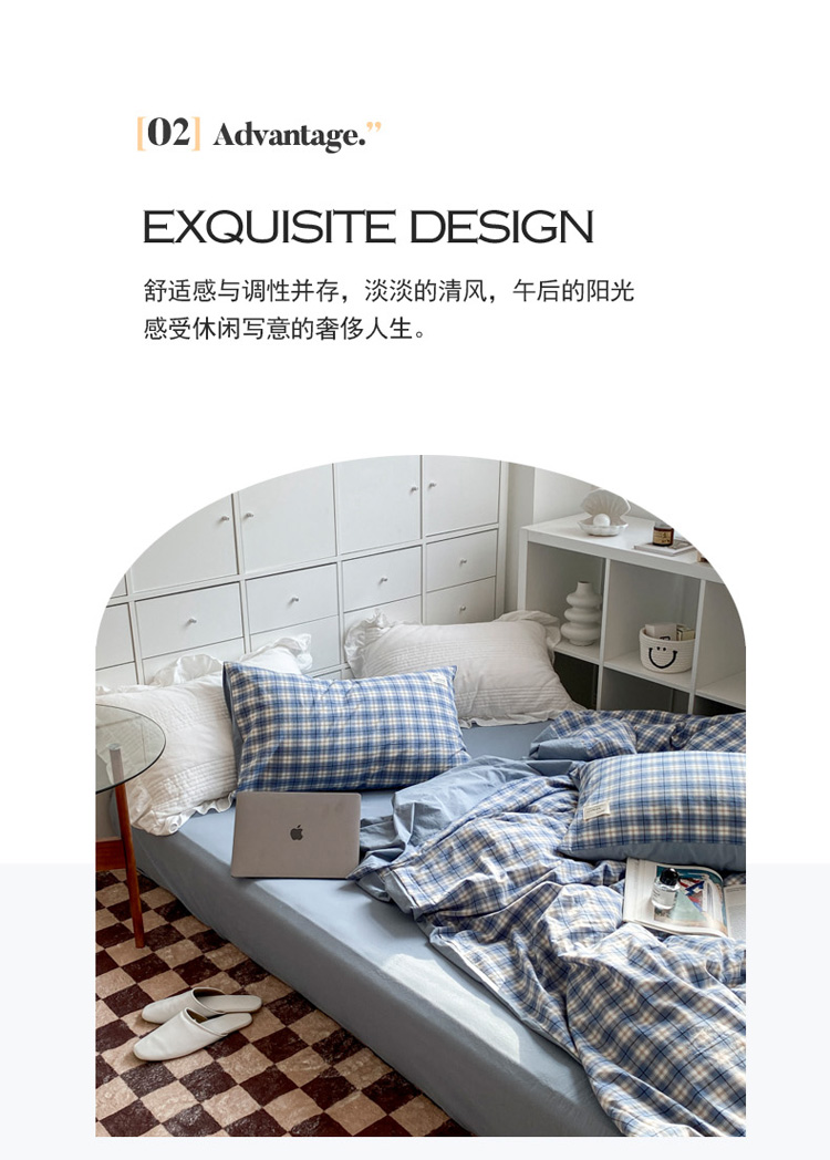当前位置: 91家纺网 > 商品网购 > 床品套件 > 四件套 > 水洗棉四件套 > 寐居 2021水洗色织全棉四件套 时尚蓝格