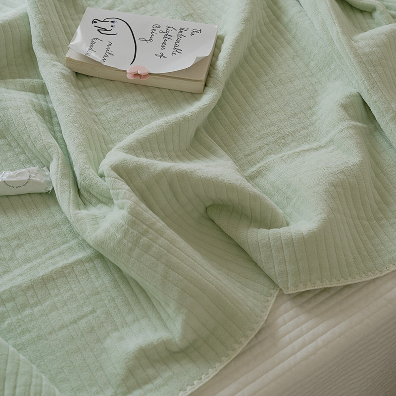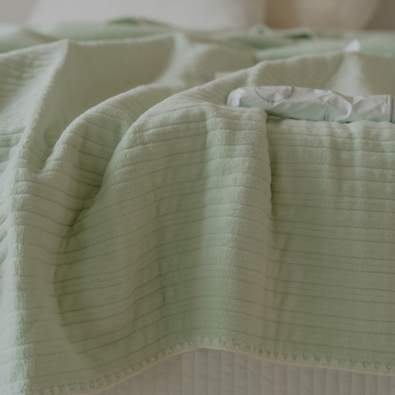 商品名称:洋铭区 2021新款牛奶绒绗缝夹棉毯子系列 桃绿