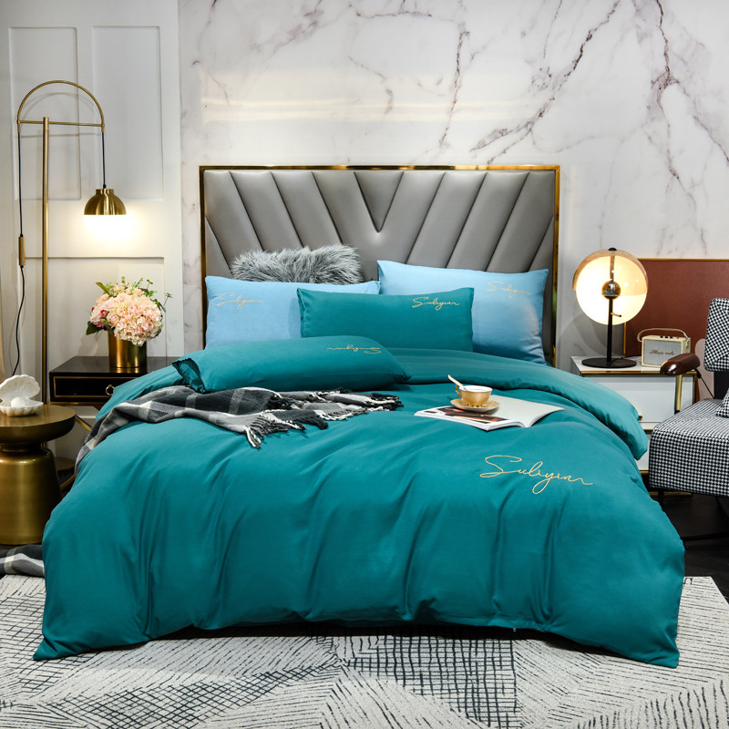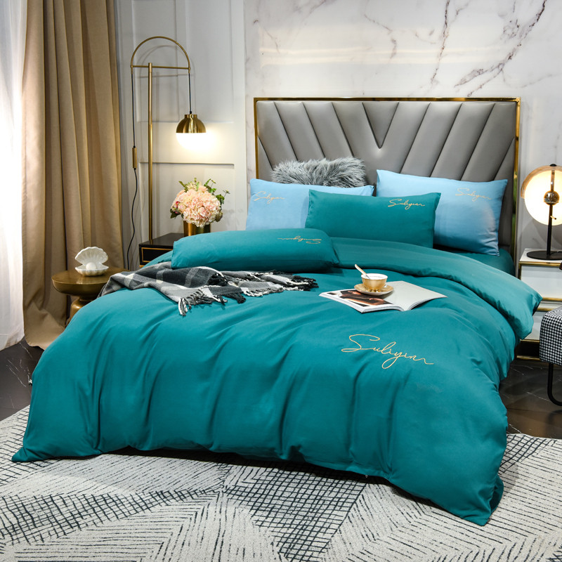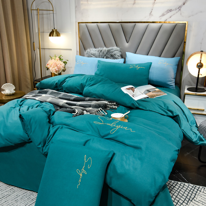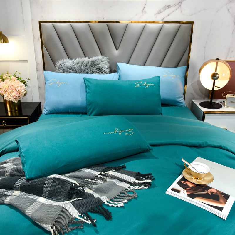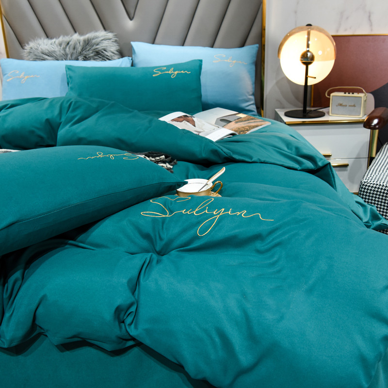 孟鑫家纺 2021新款加厚纯色刺绣磨毛四件套 森林绿