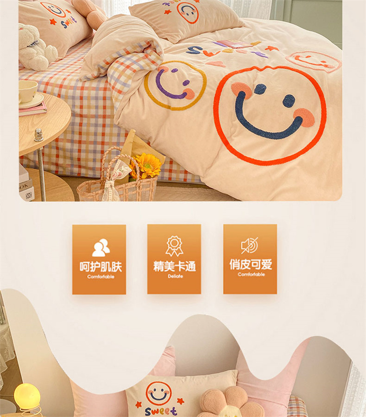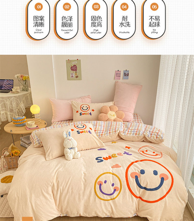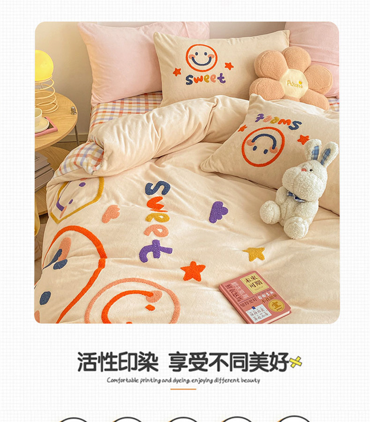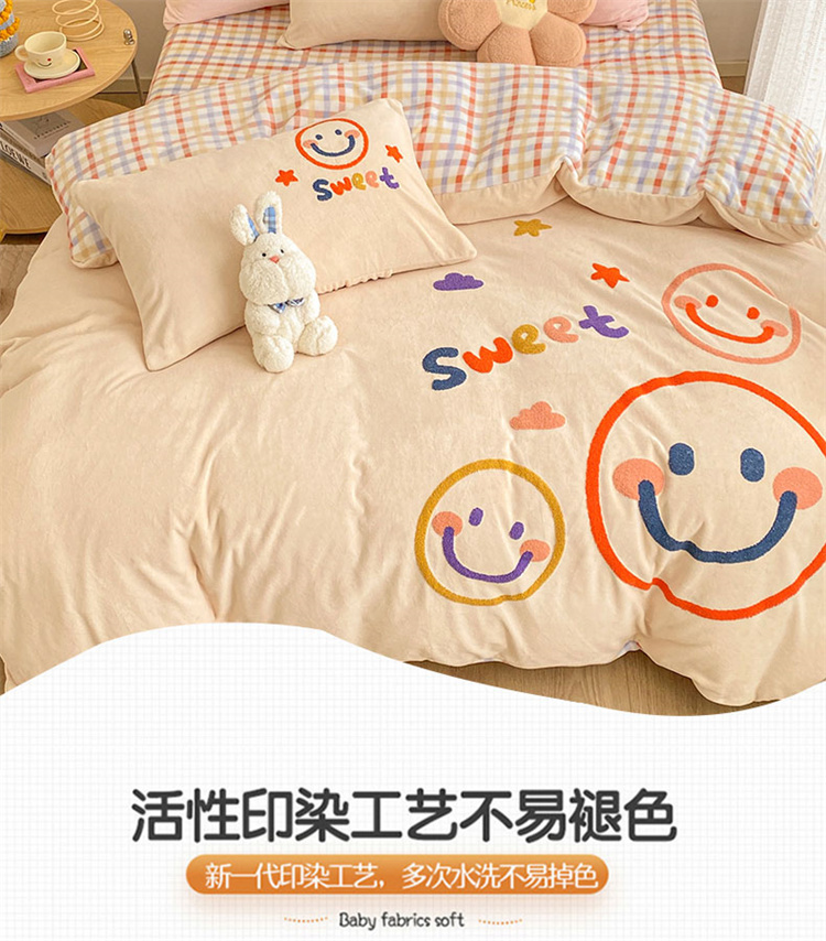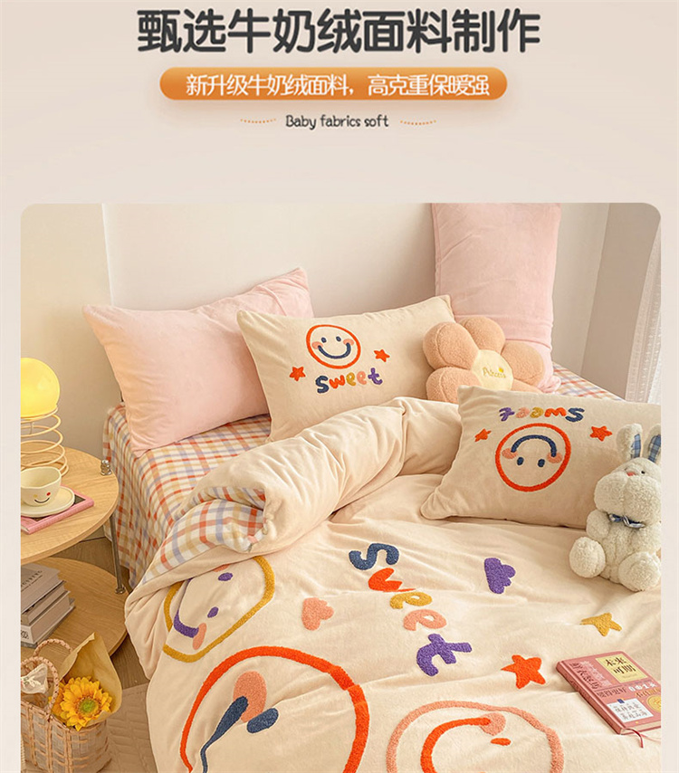 商品名称:川悦生活 2021新款高克重牛奶绒毛巾绣四件套 开心多多