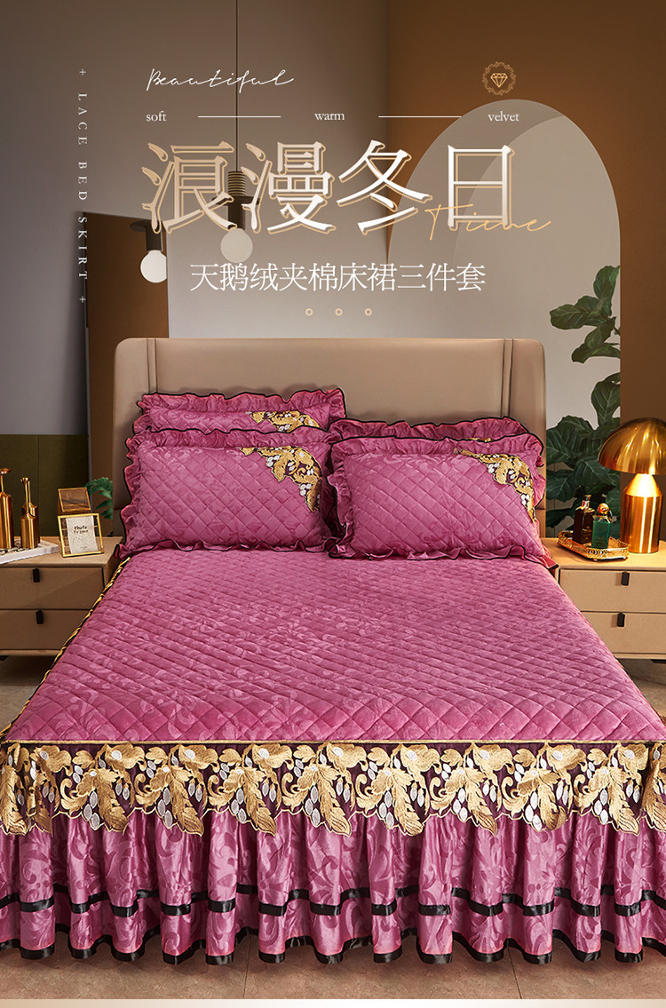 商品名称:网红馆2025新款天鹅绒夹棉单床裙 浅忆拾光-胭脂粉