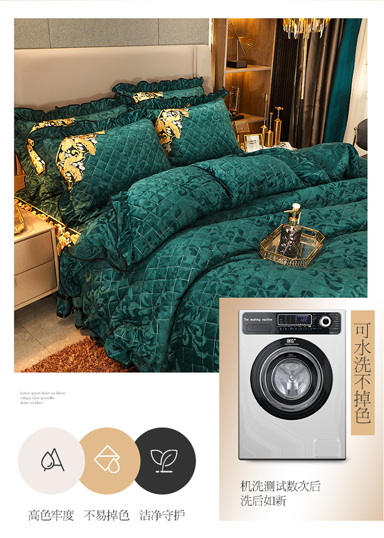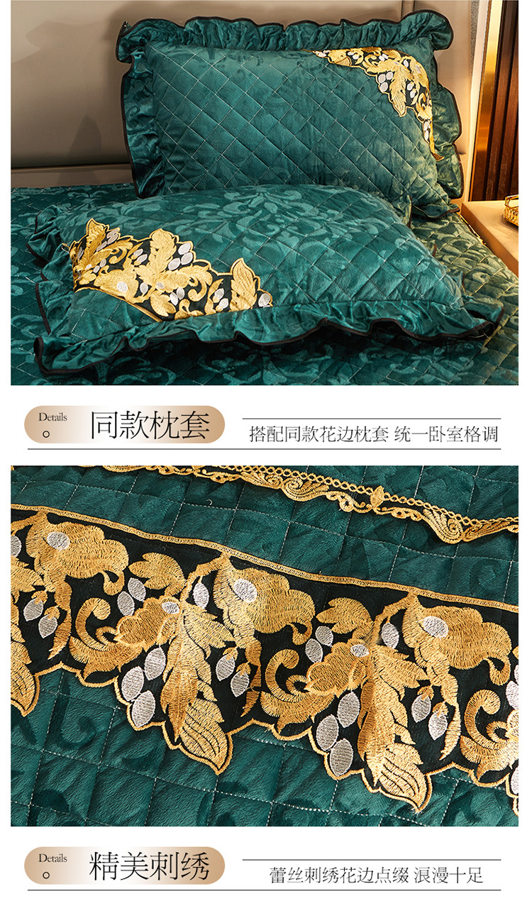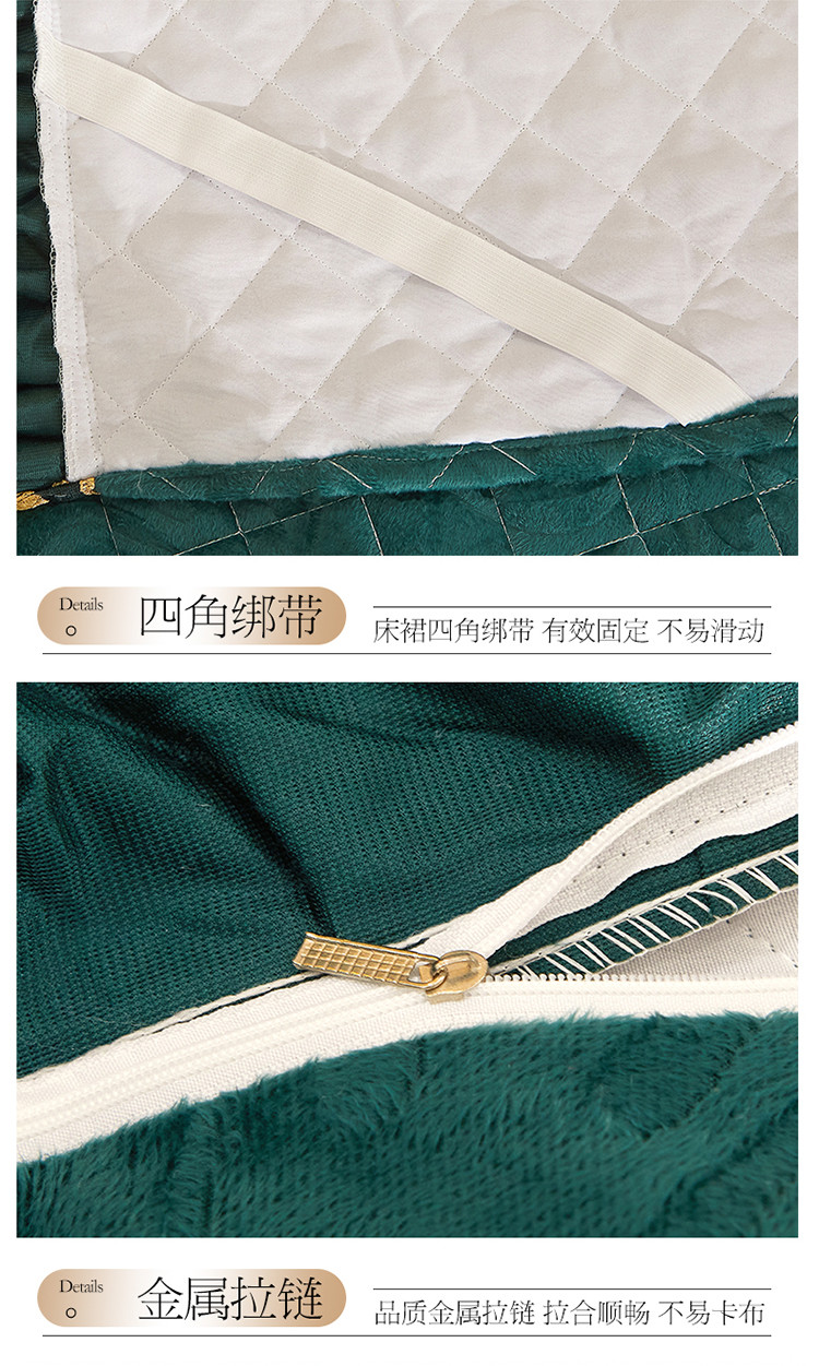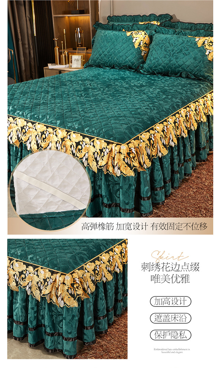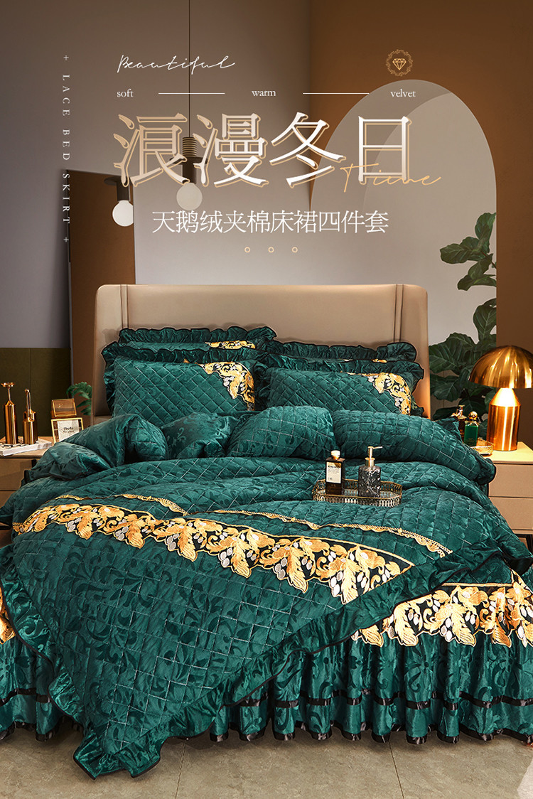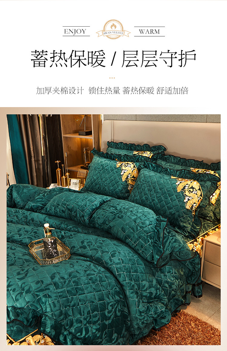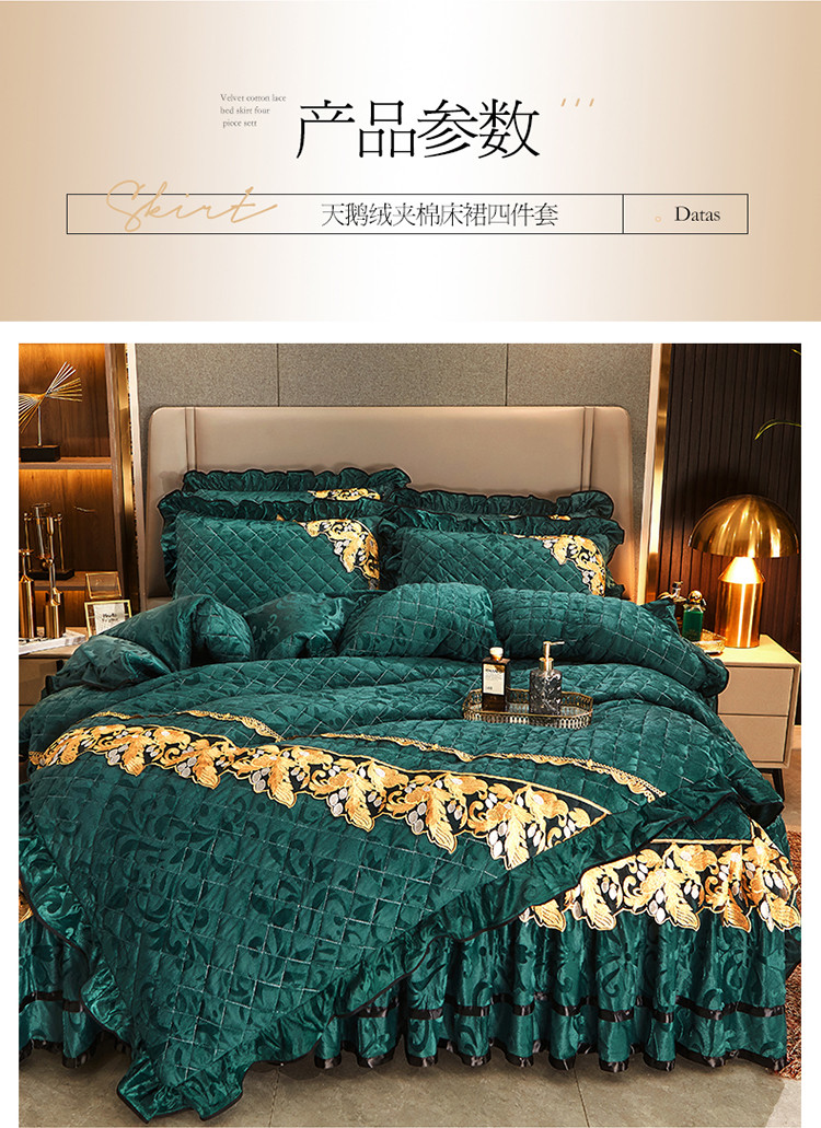 商品名称:网红馆2025新款天鹅绒夹棉床裙四件套 浅忆拾光-墨绿