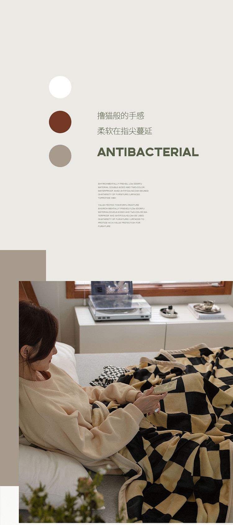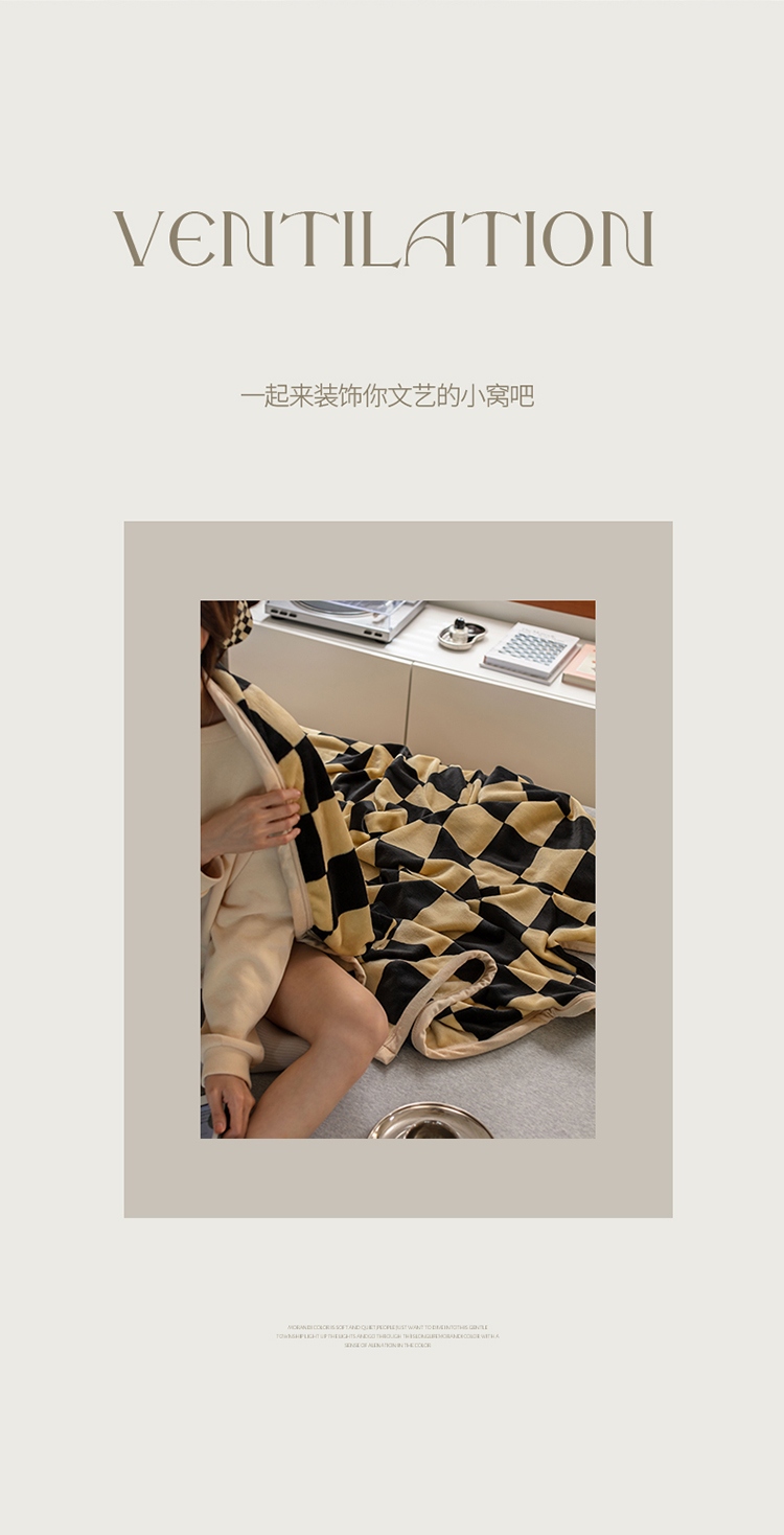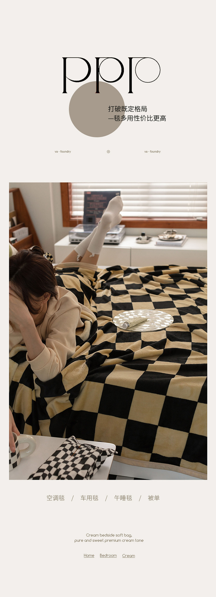 商品名称:寐眠2021新款法莱绒棋牌格毛毯 棋盘格黑茶
