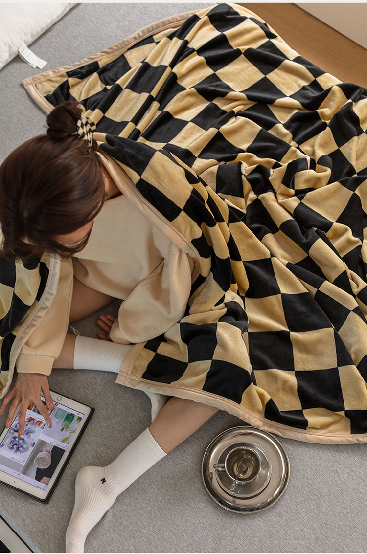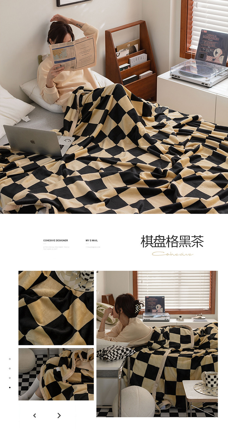 寐眠2021新款法莱绒棋牌格毛毯 棋盘格黑茶