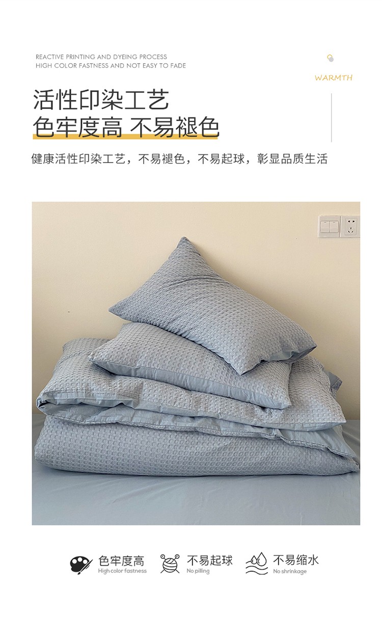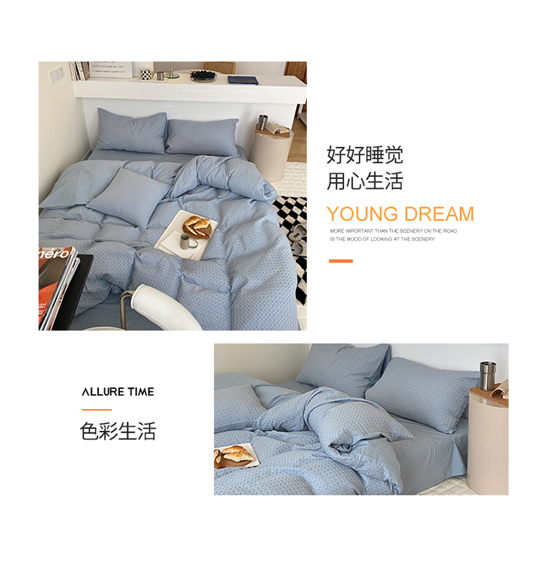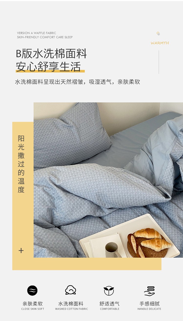 当前位置: 91家纺网 > 商品网购 > 床品套件 > 四件套 > 水洗棉四件套 > 梦享生活 2021新款华夫格水洗棉四件套 天蓝