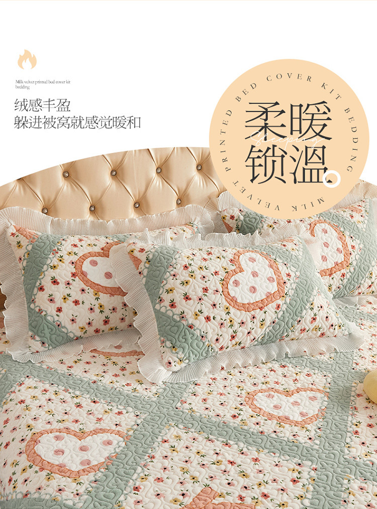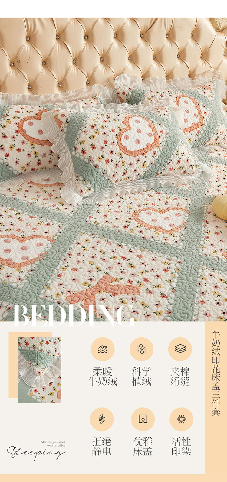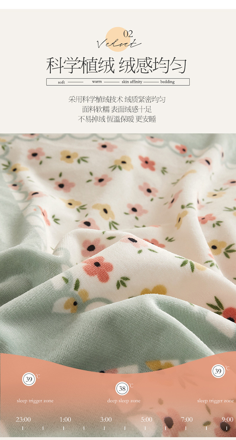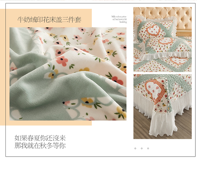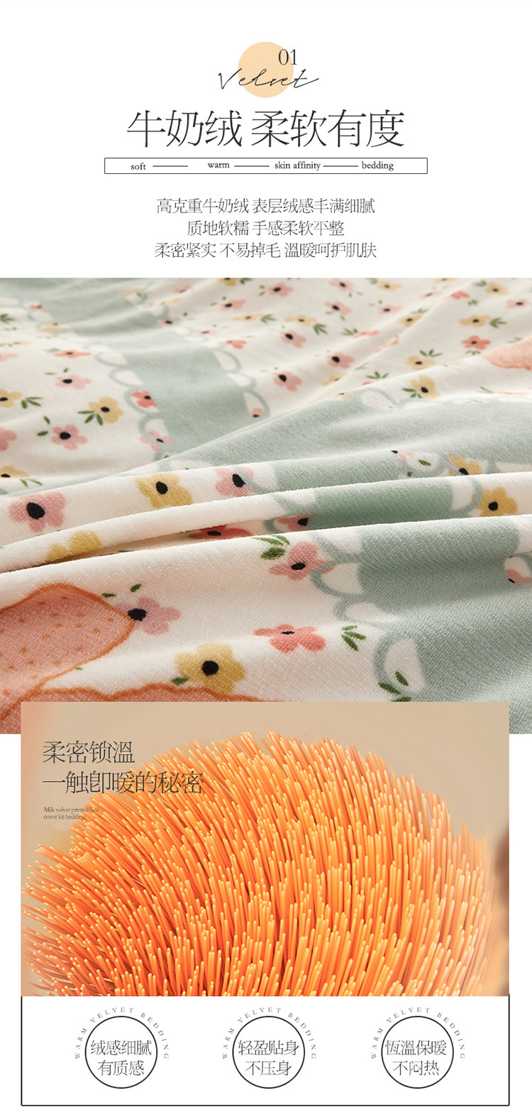 宜凡 2021新款牛奶绒小清新三件套花田喜事
