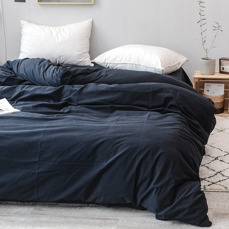 柠萌家居 2025新款全棉色织水洗棉床品单被套 藏青色